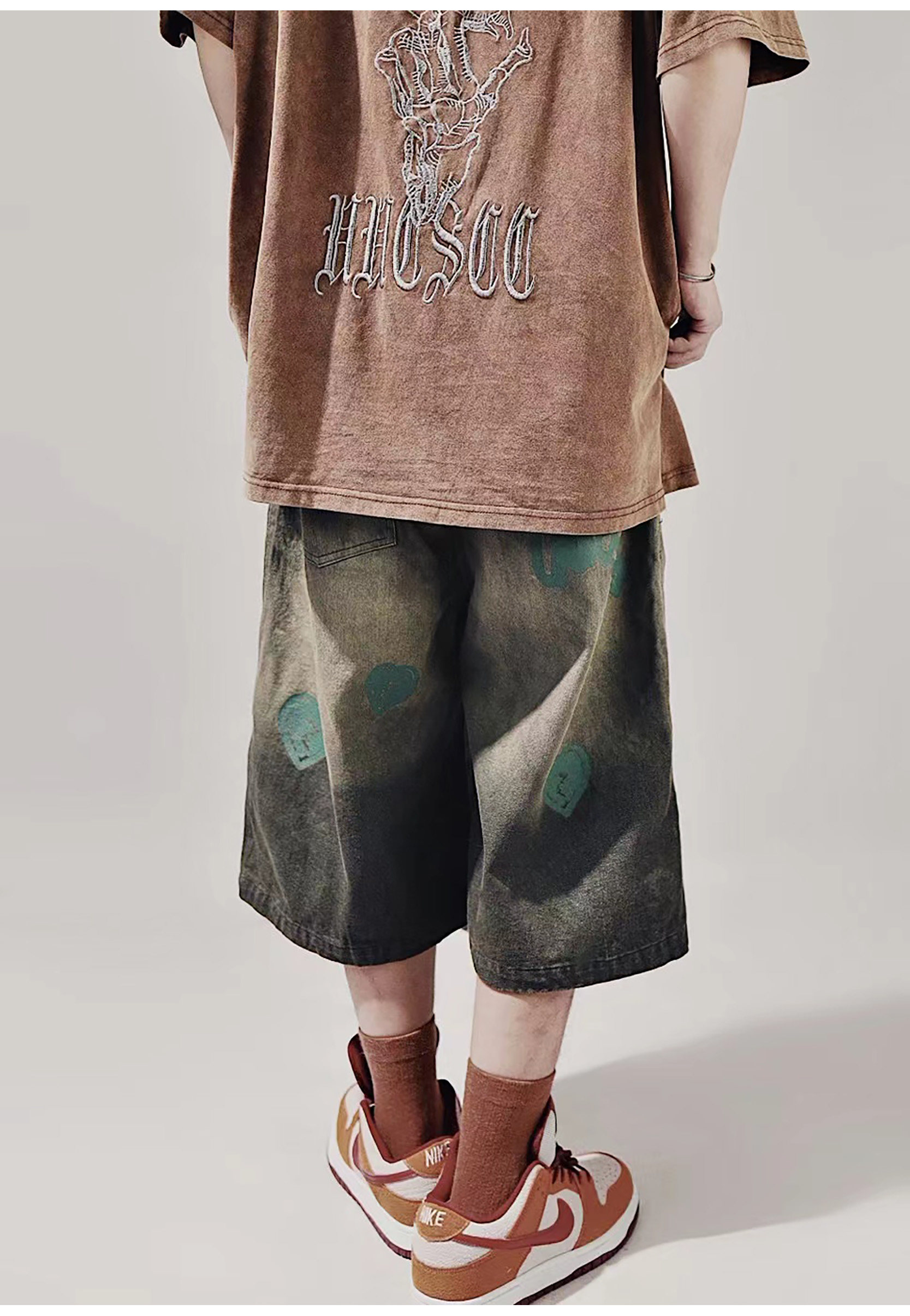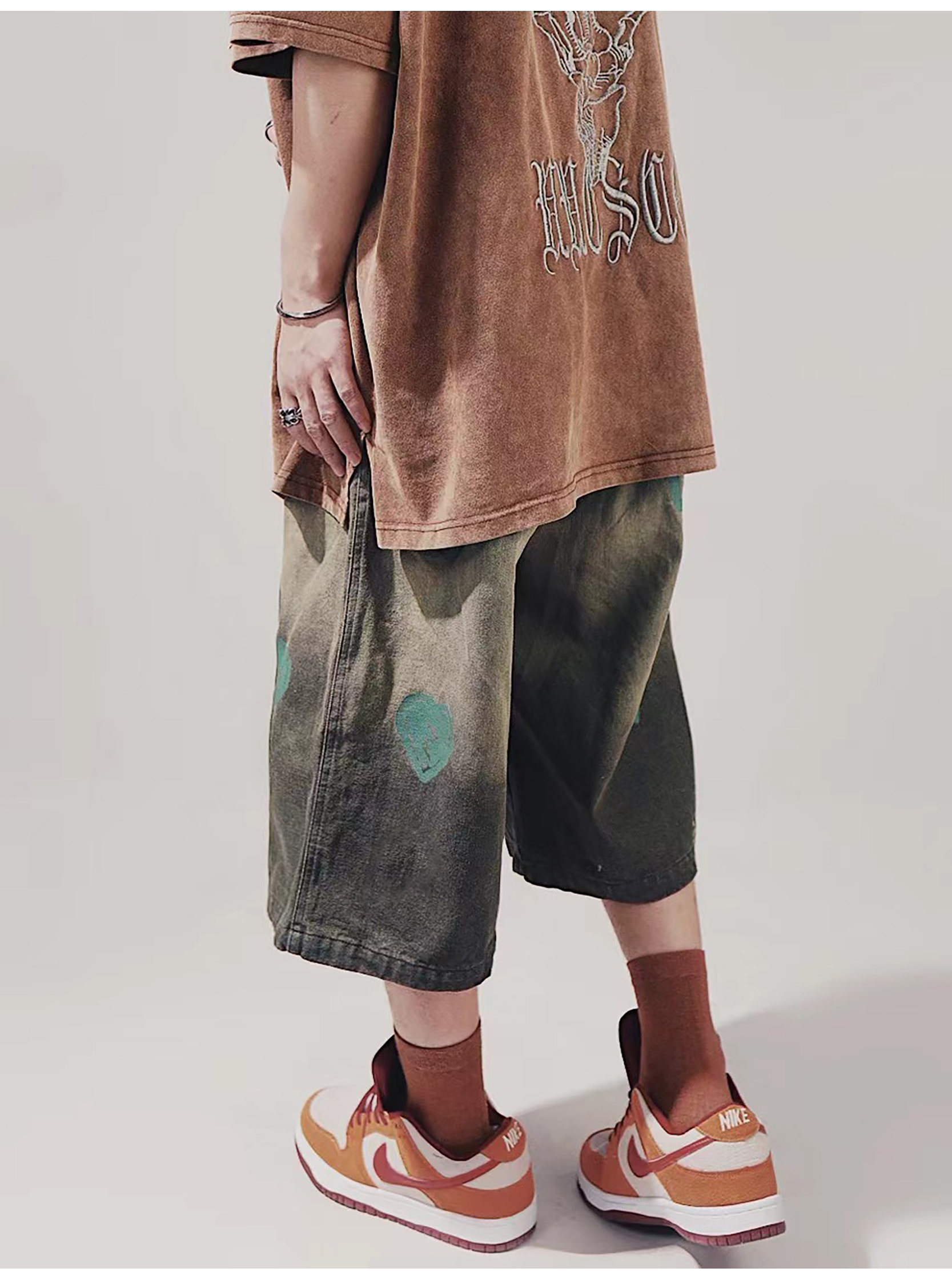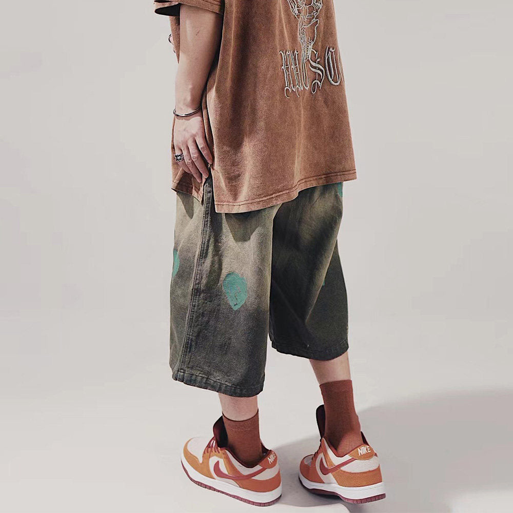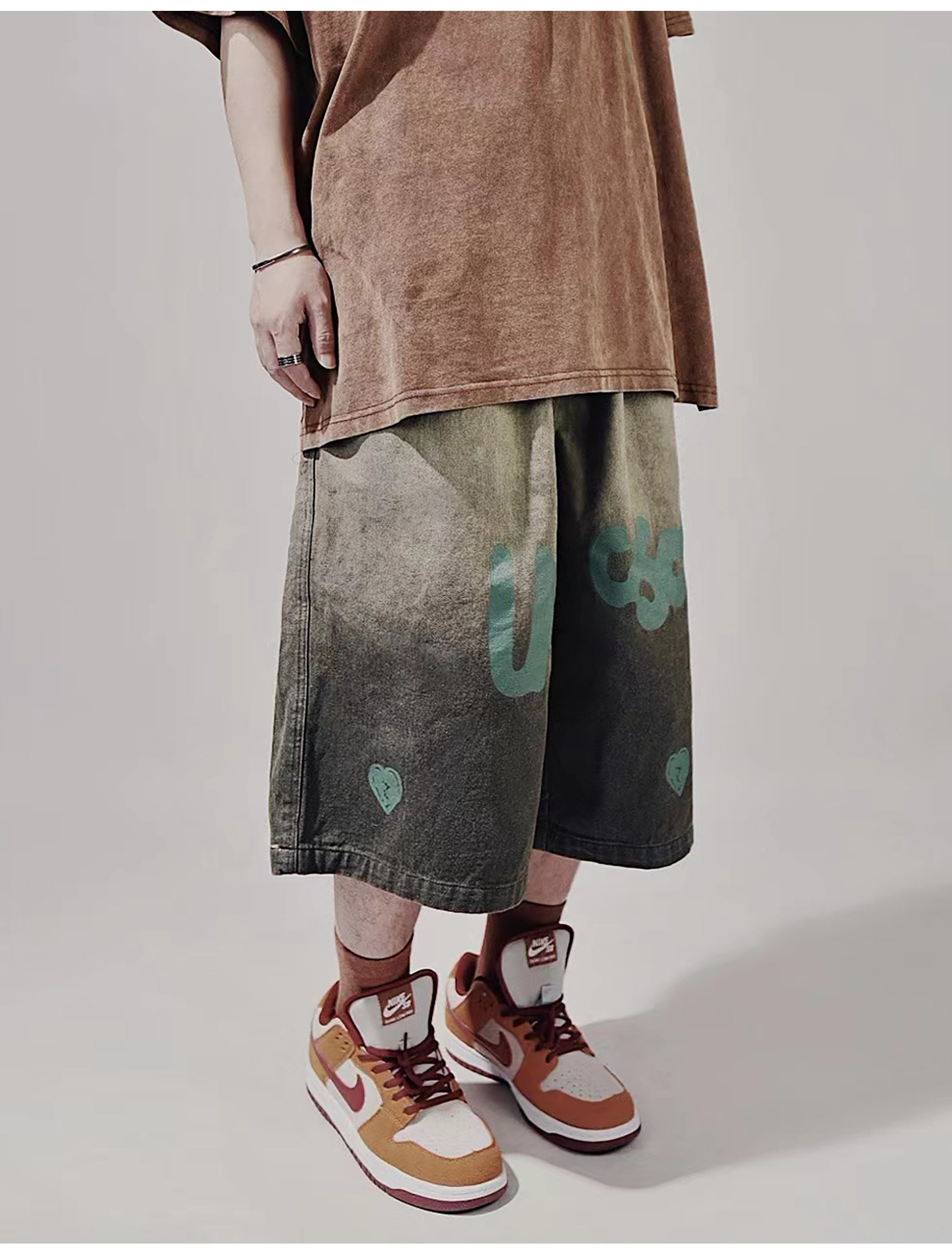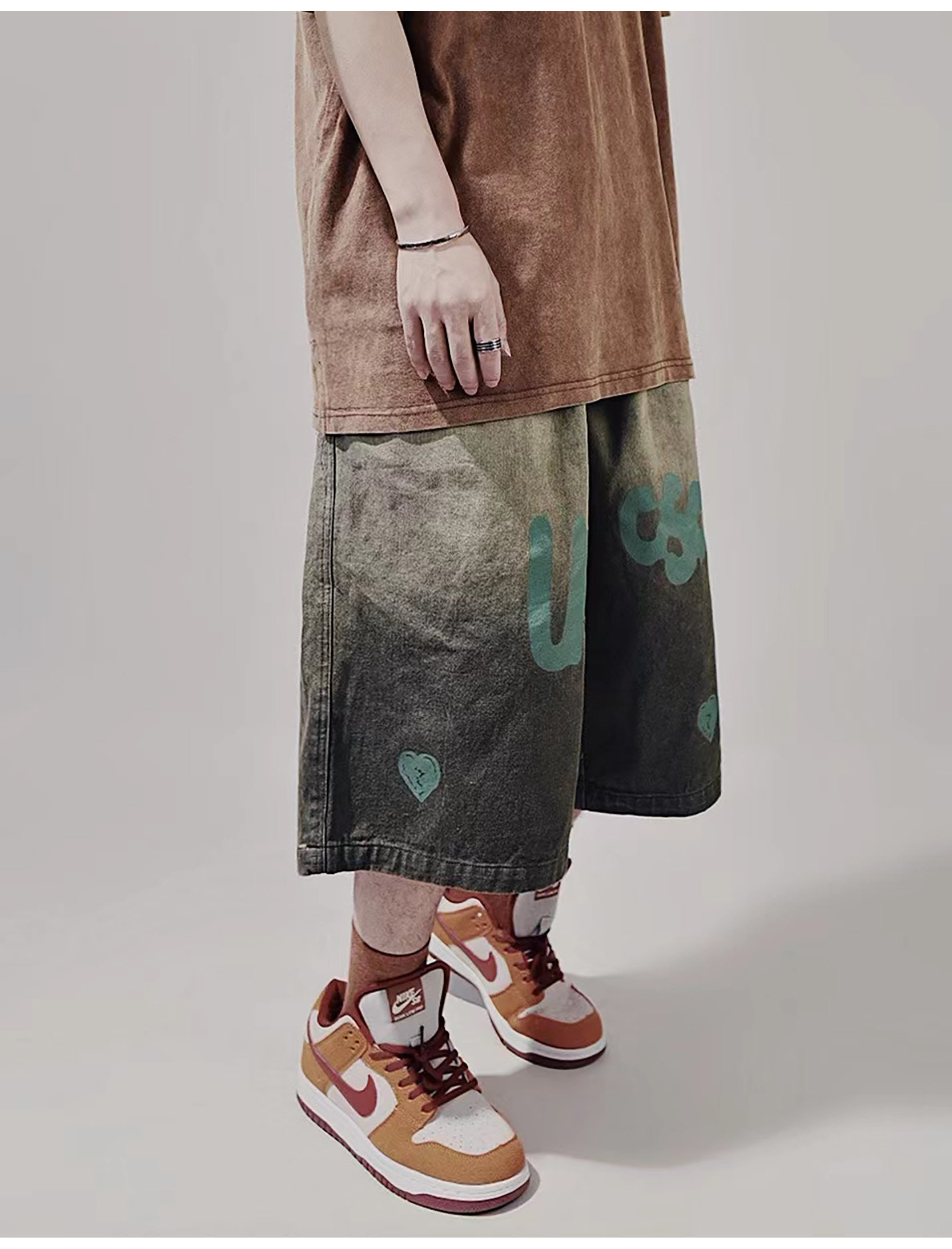 Heart Design Wide Leg Half Denim Jeans WN23997