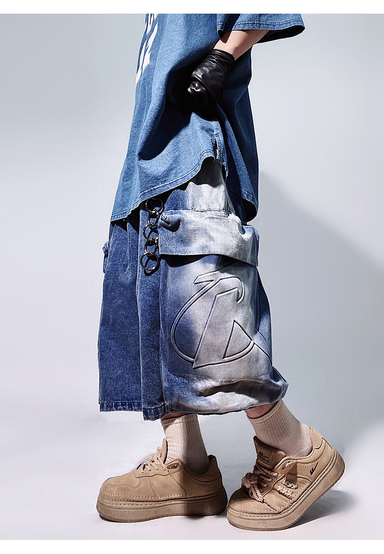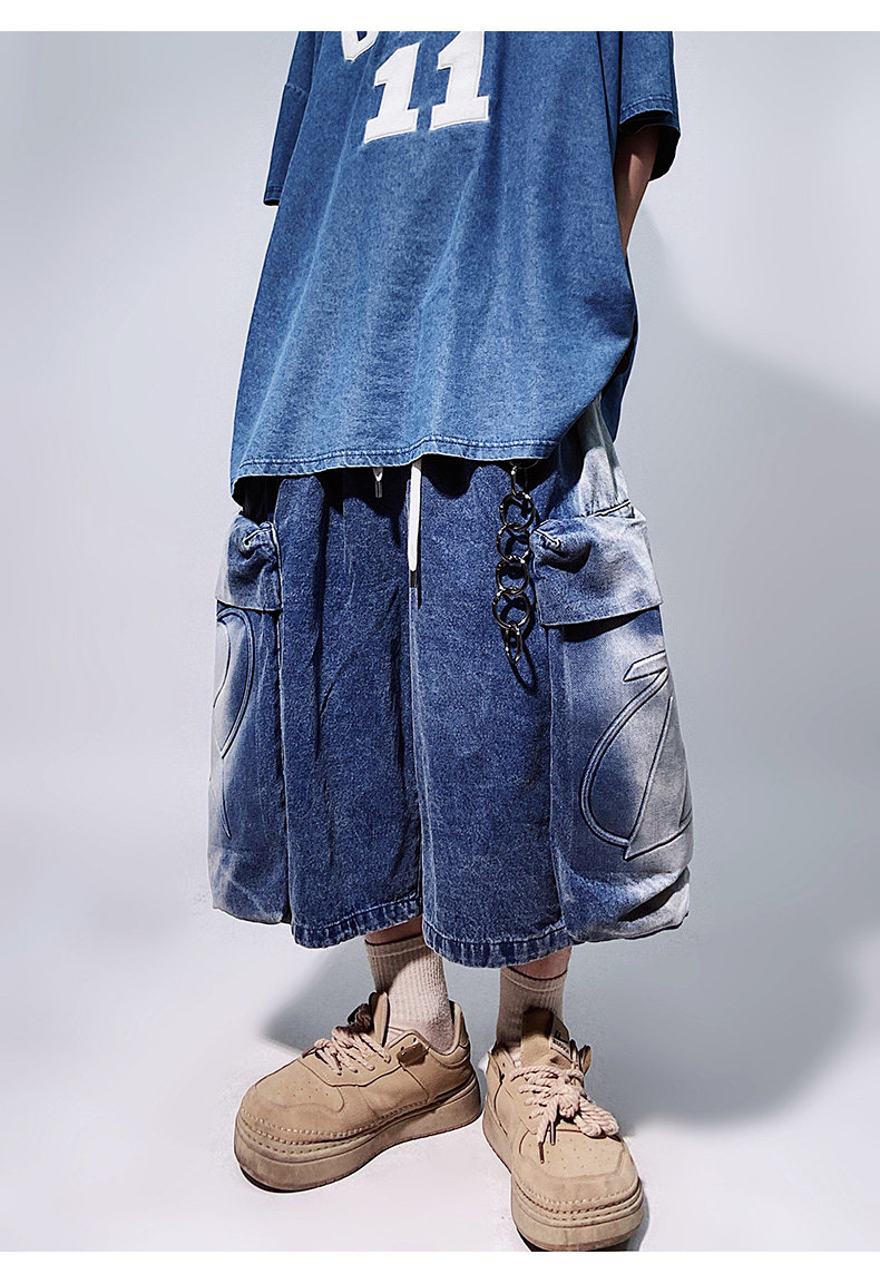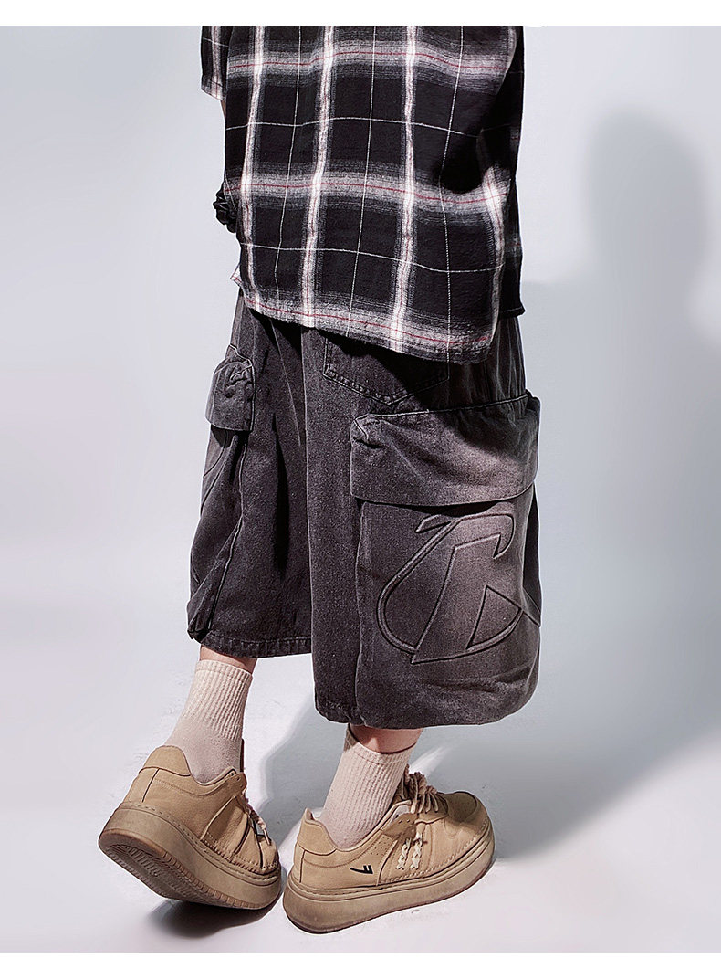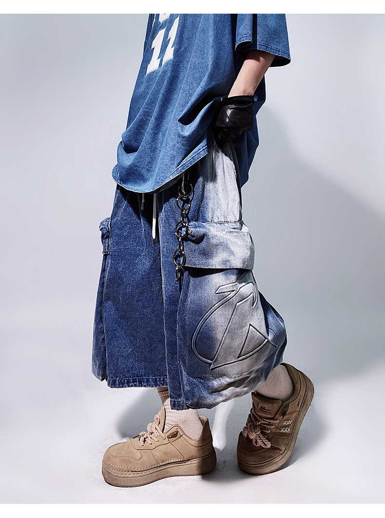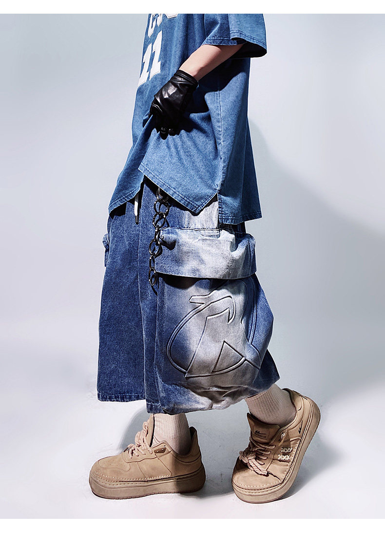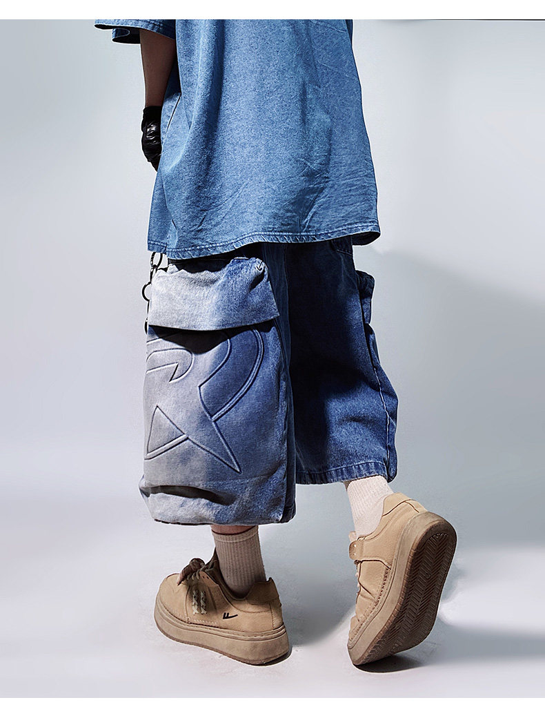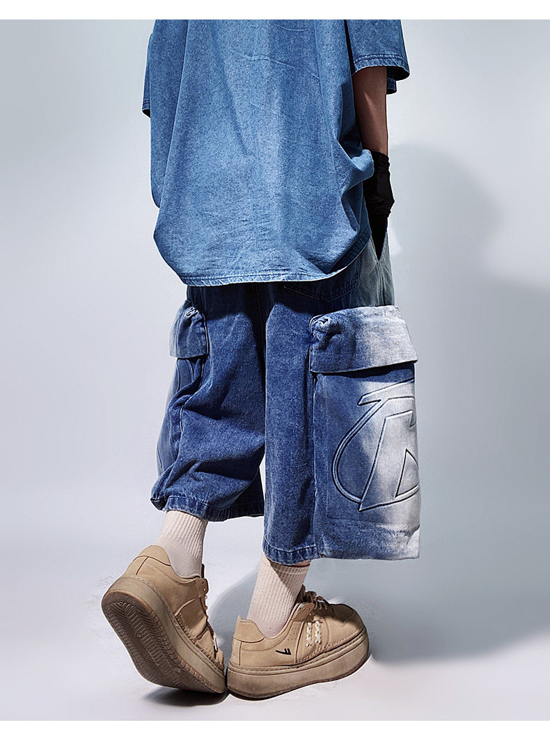 Denim Multi Pocket Wide Leg Cropped Denim Jeans WN24004
