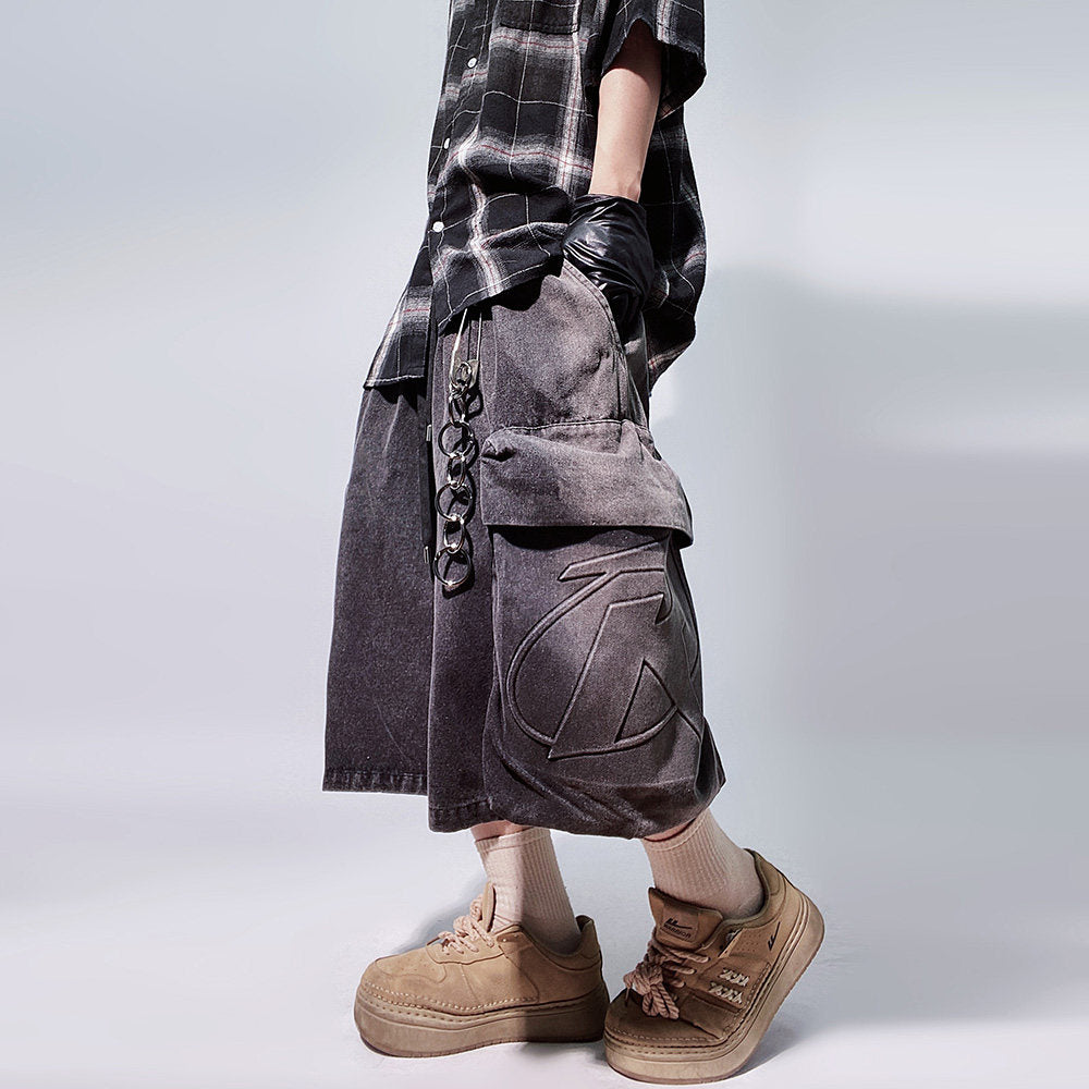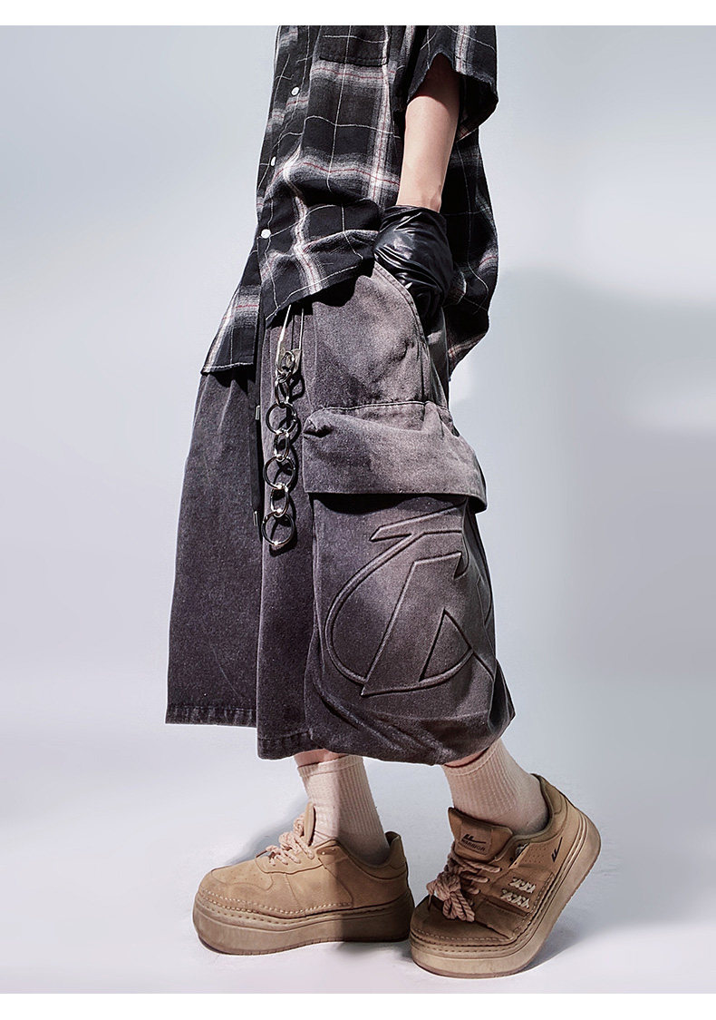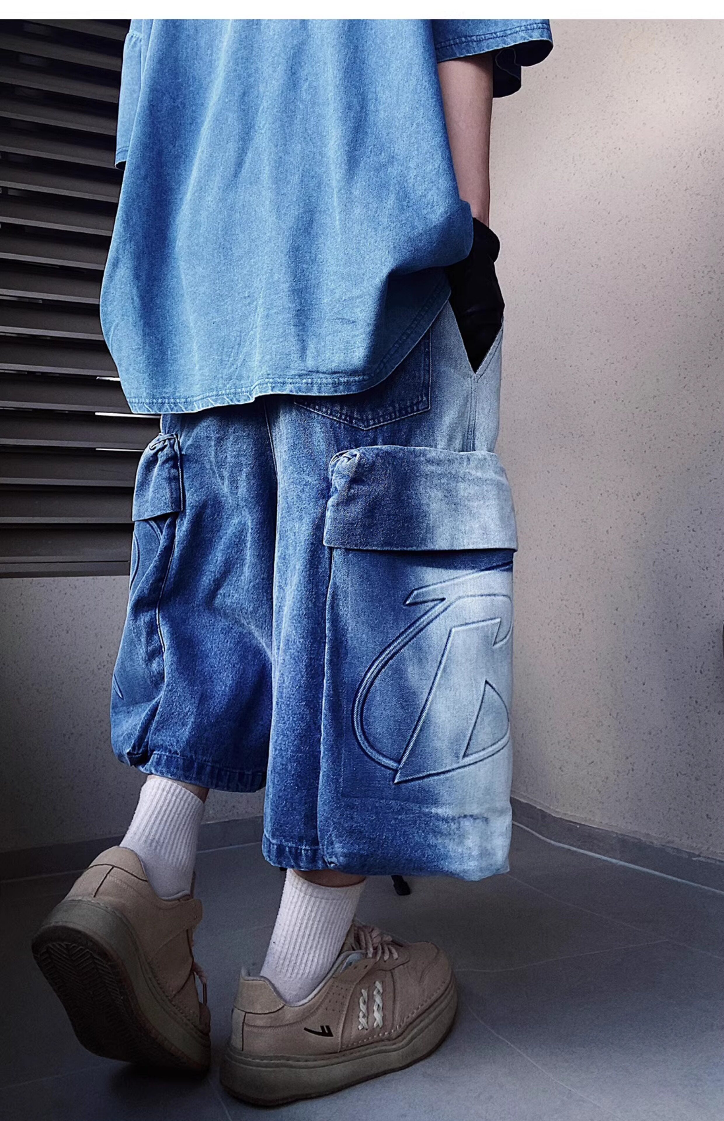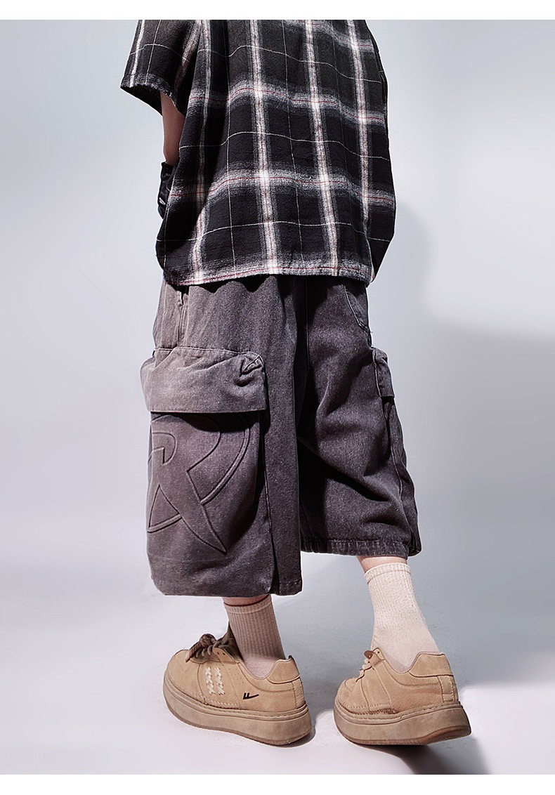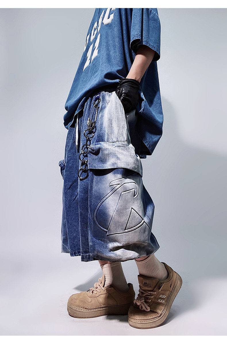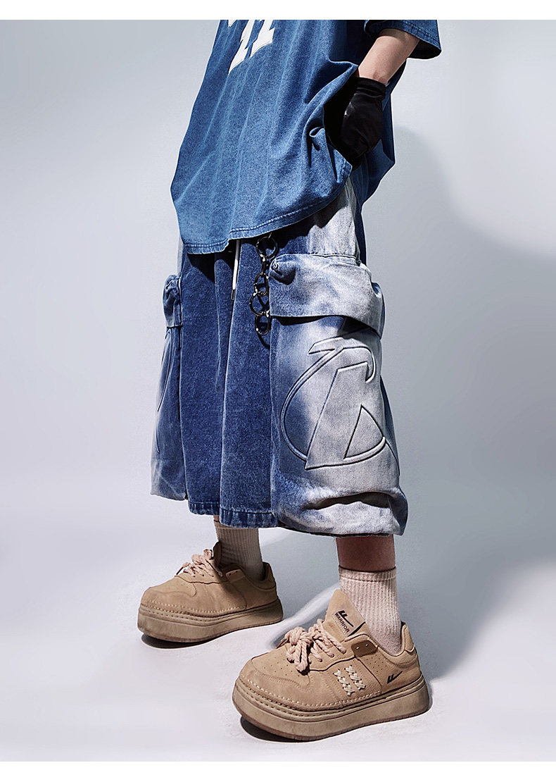 Denim Multi Pocket Wide Leg Cropped Denim Jeans WN24004