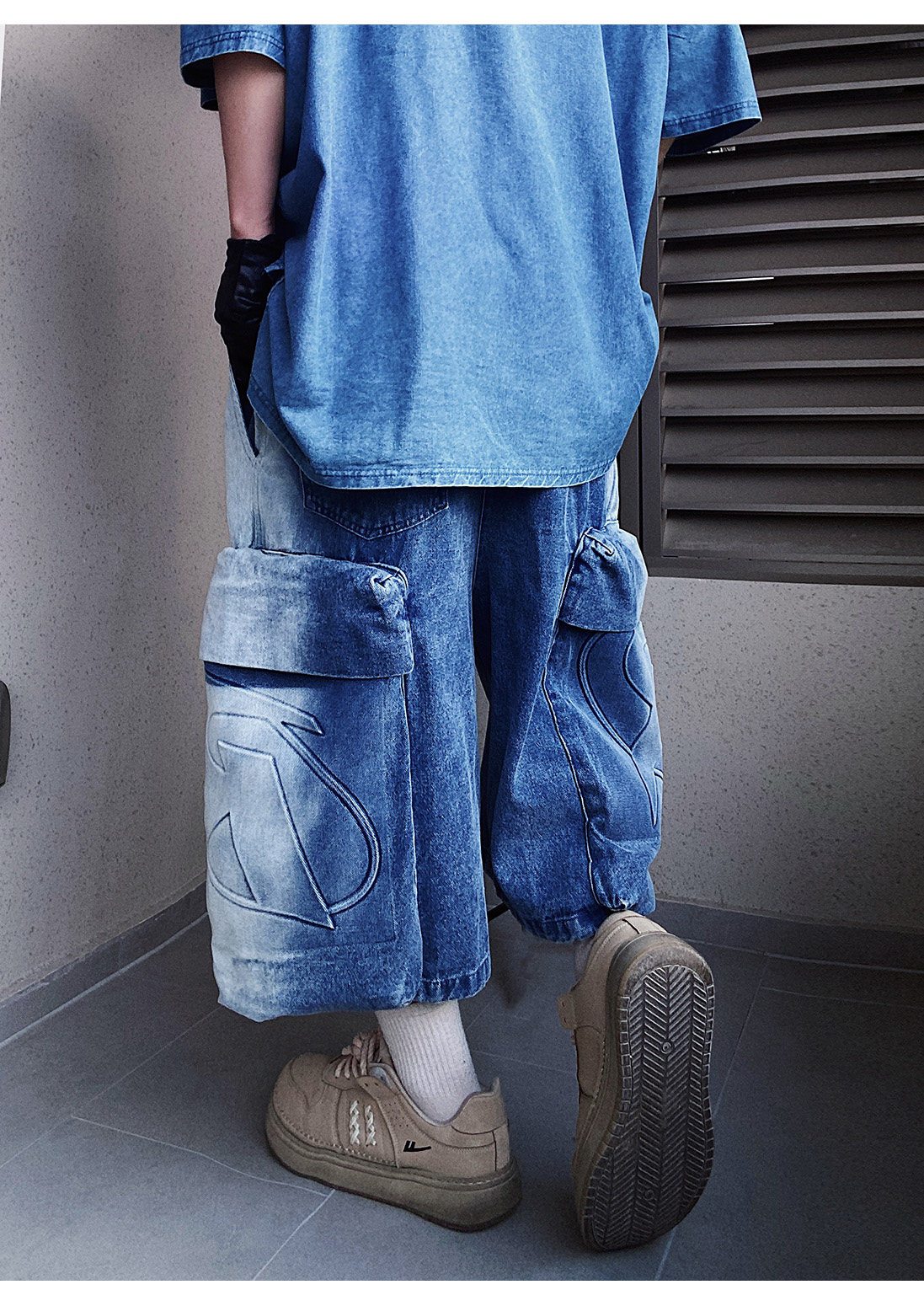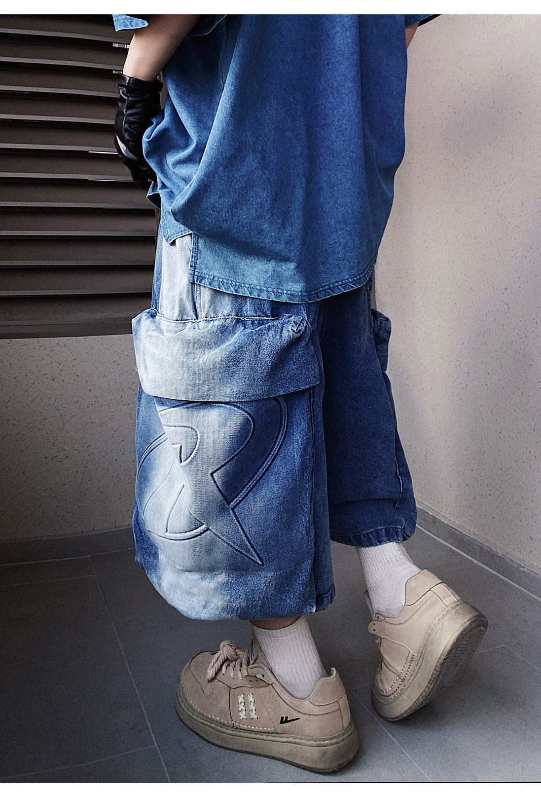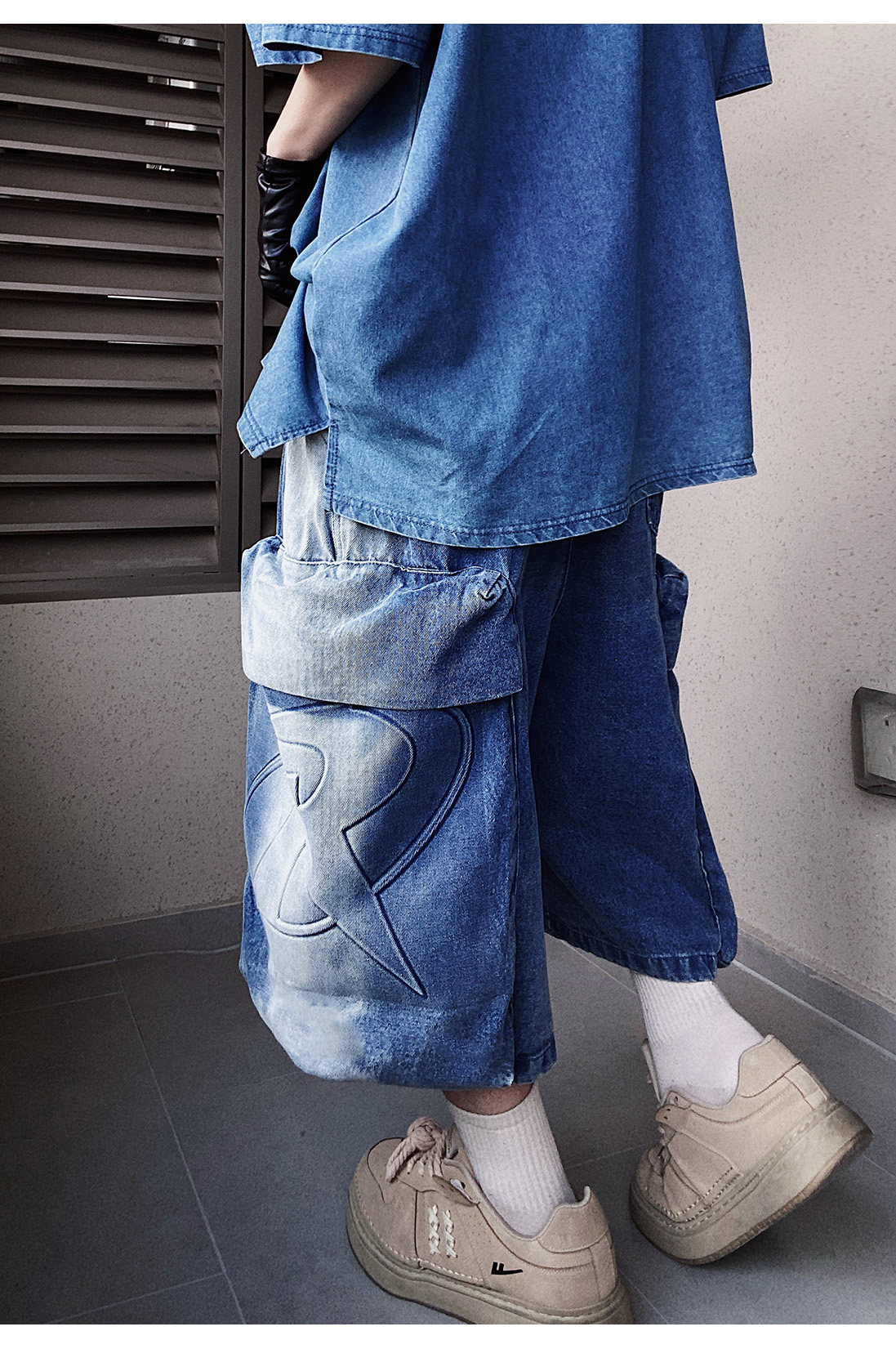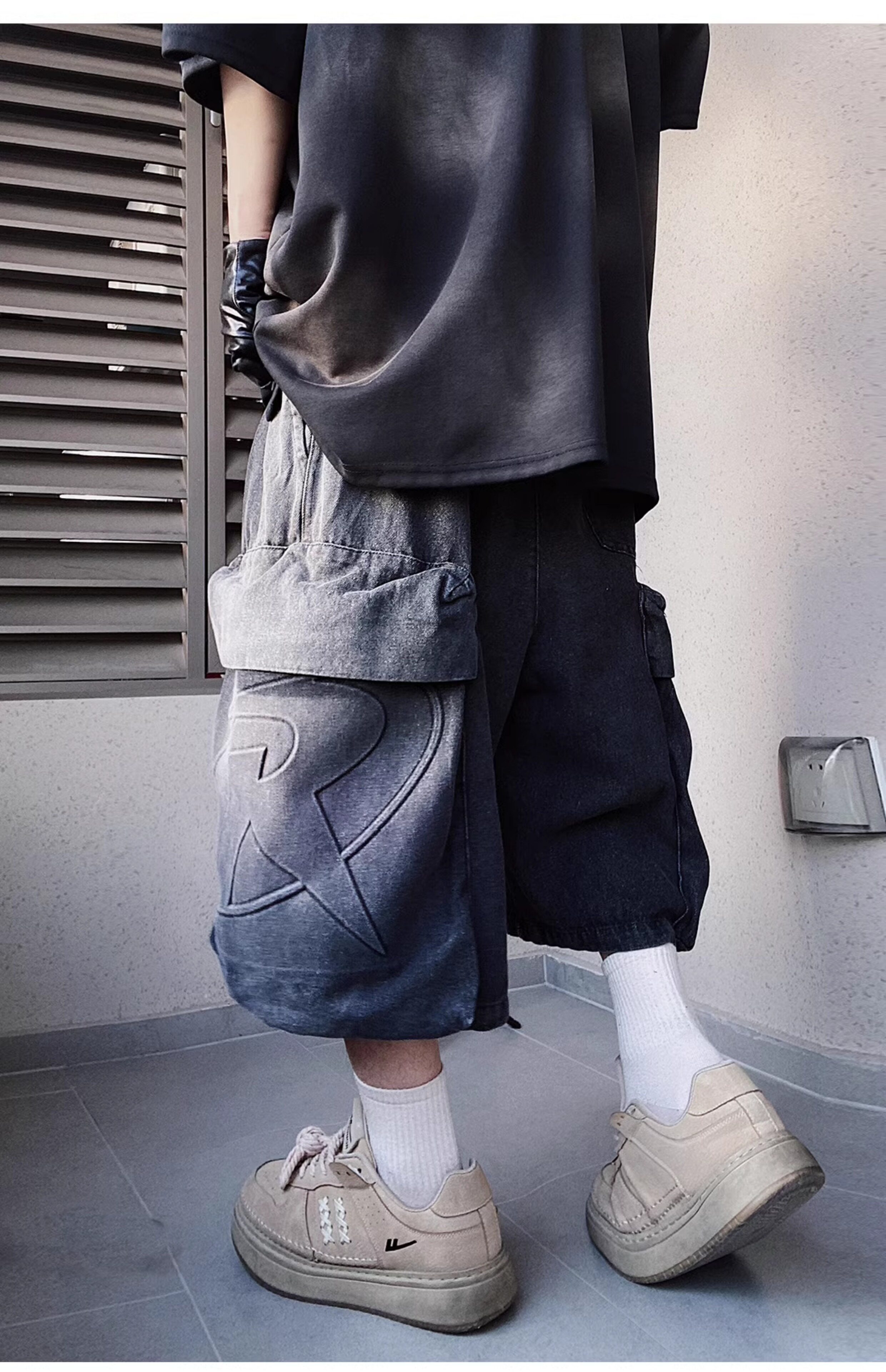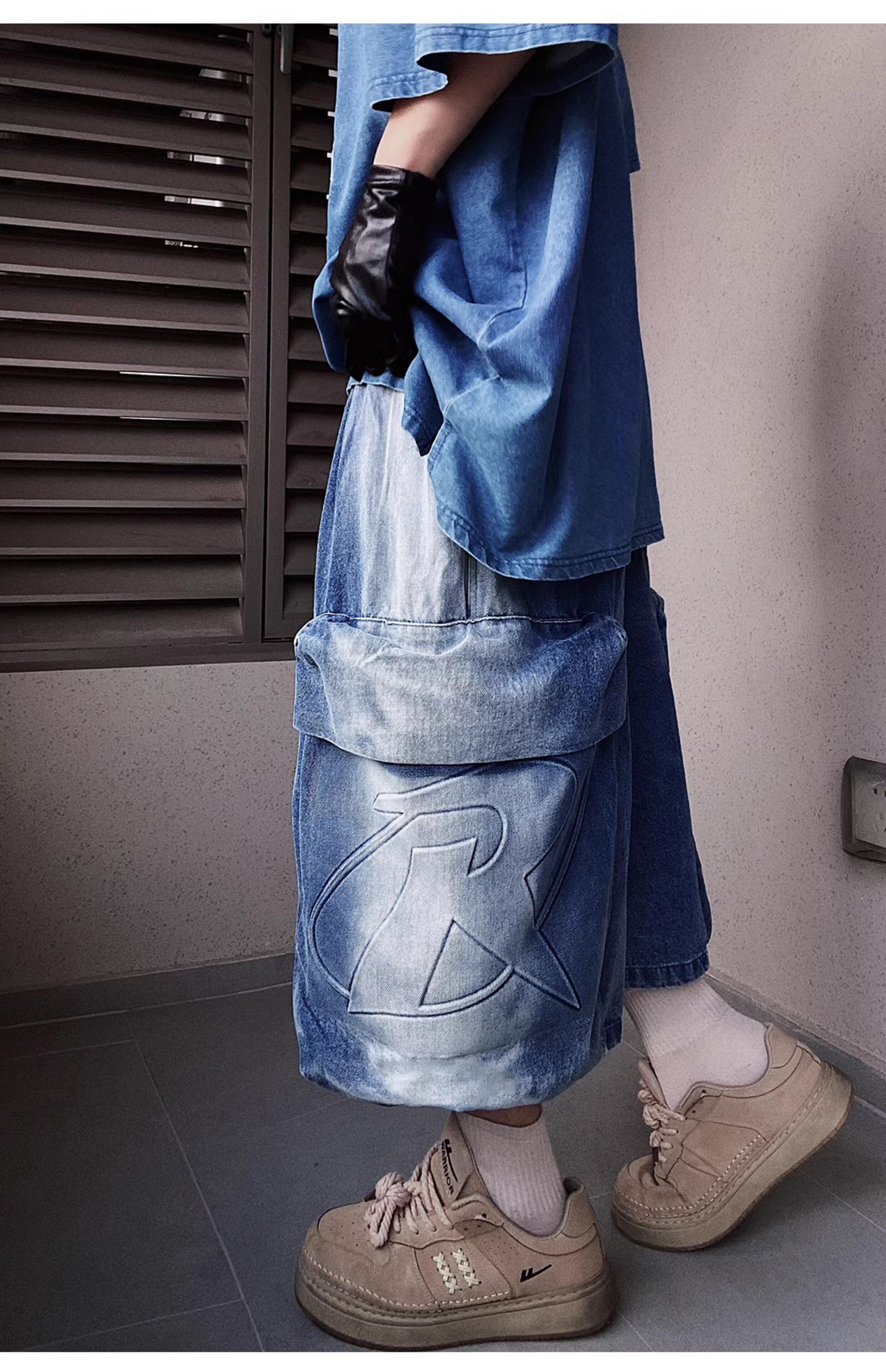 Denim Multi Pocket Wide Leg Cropped Denim Jeans WN24004