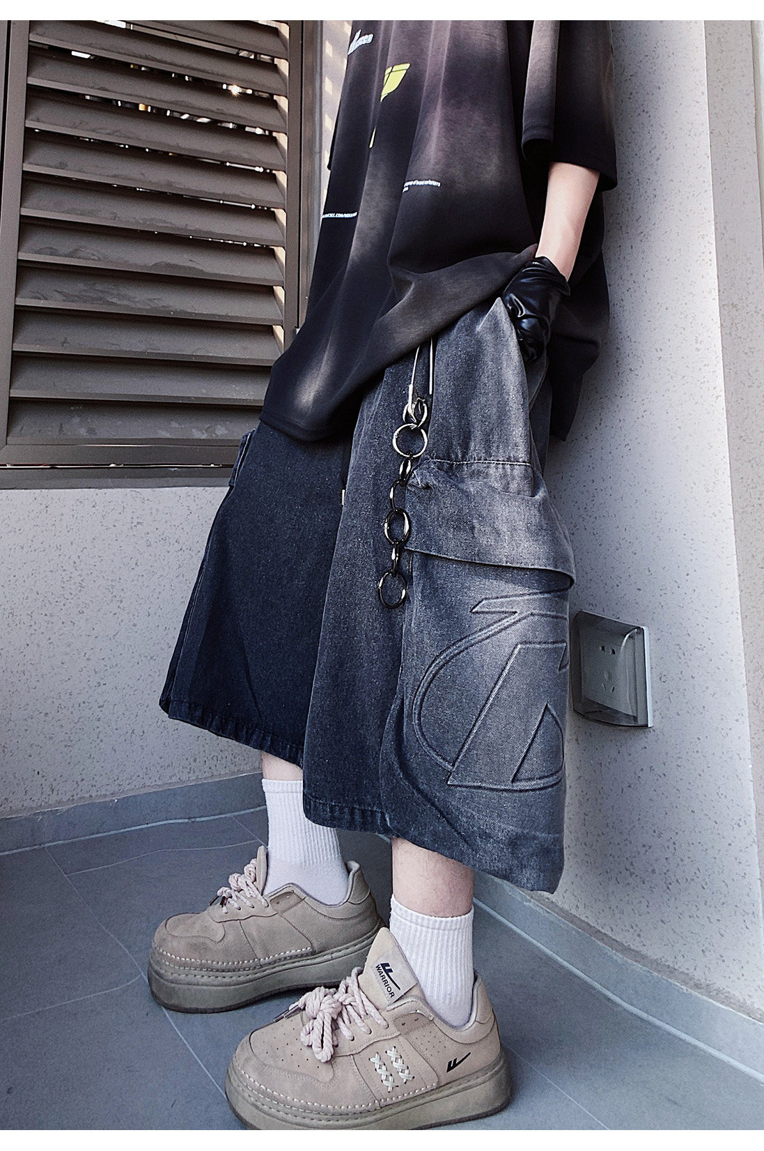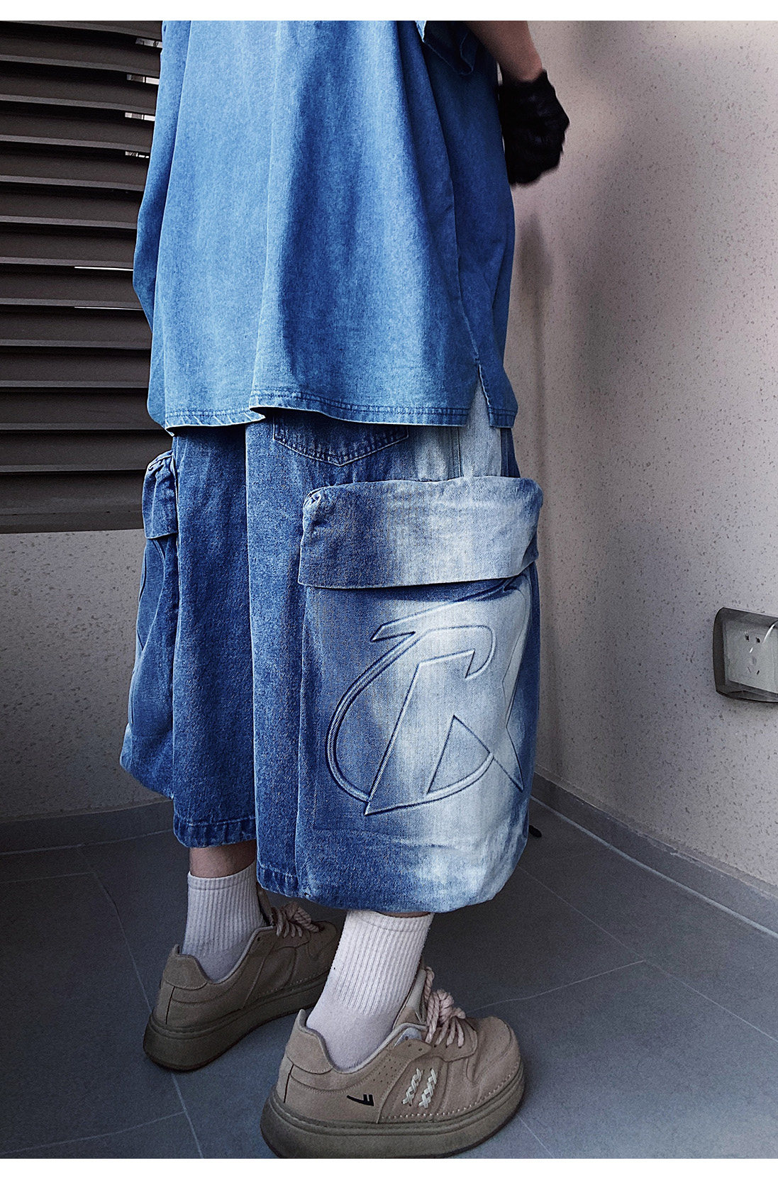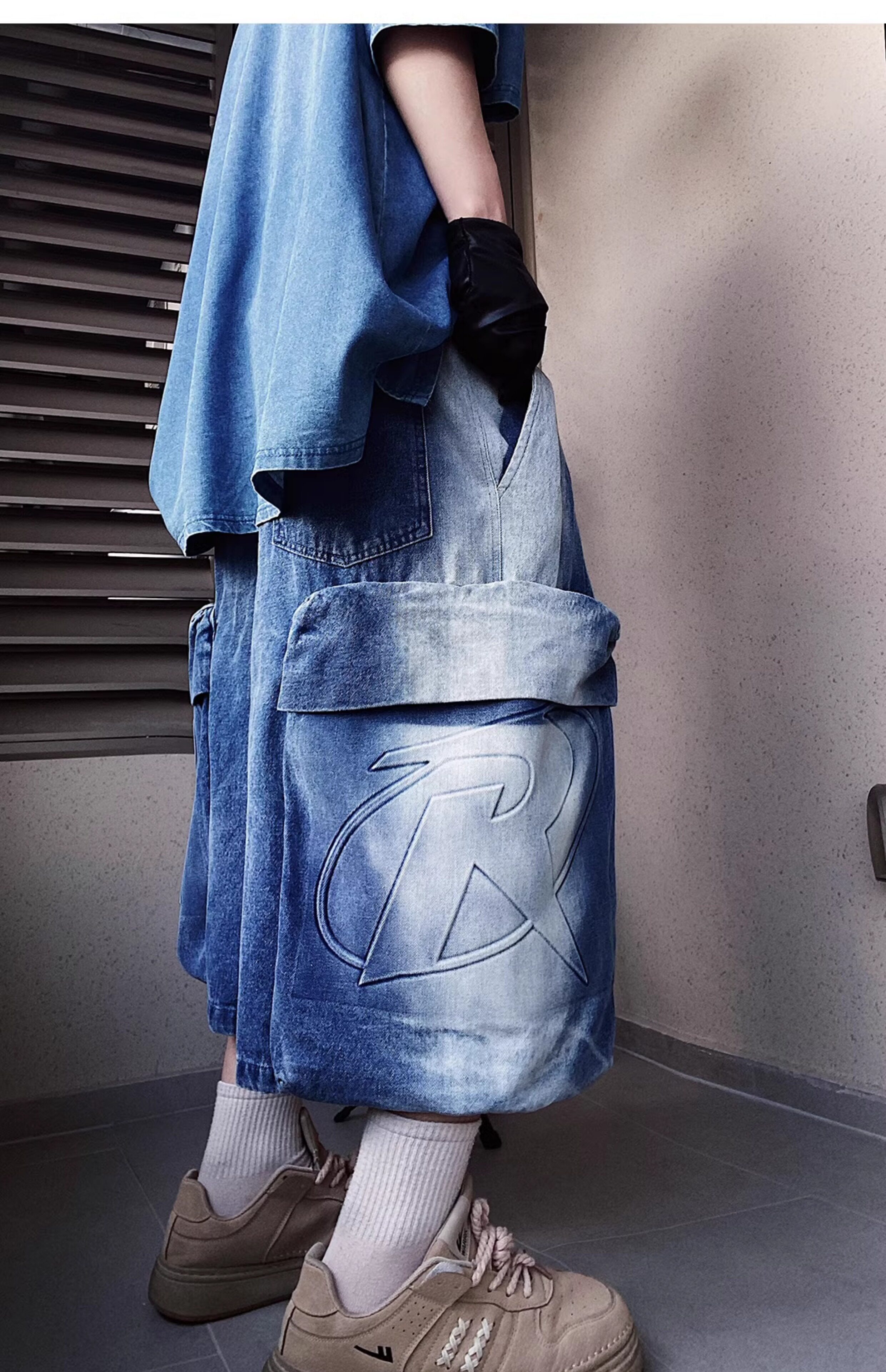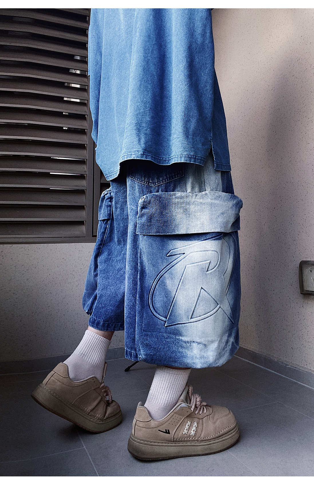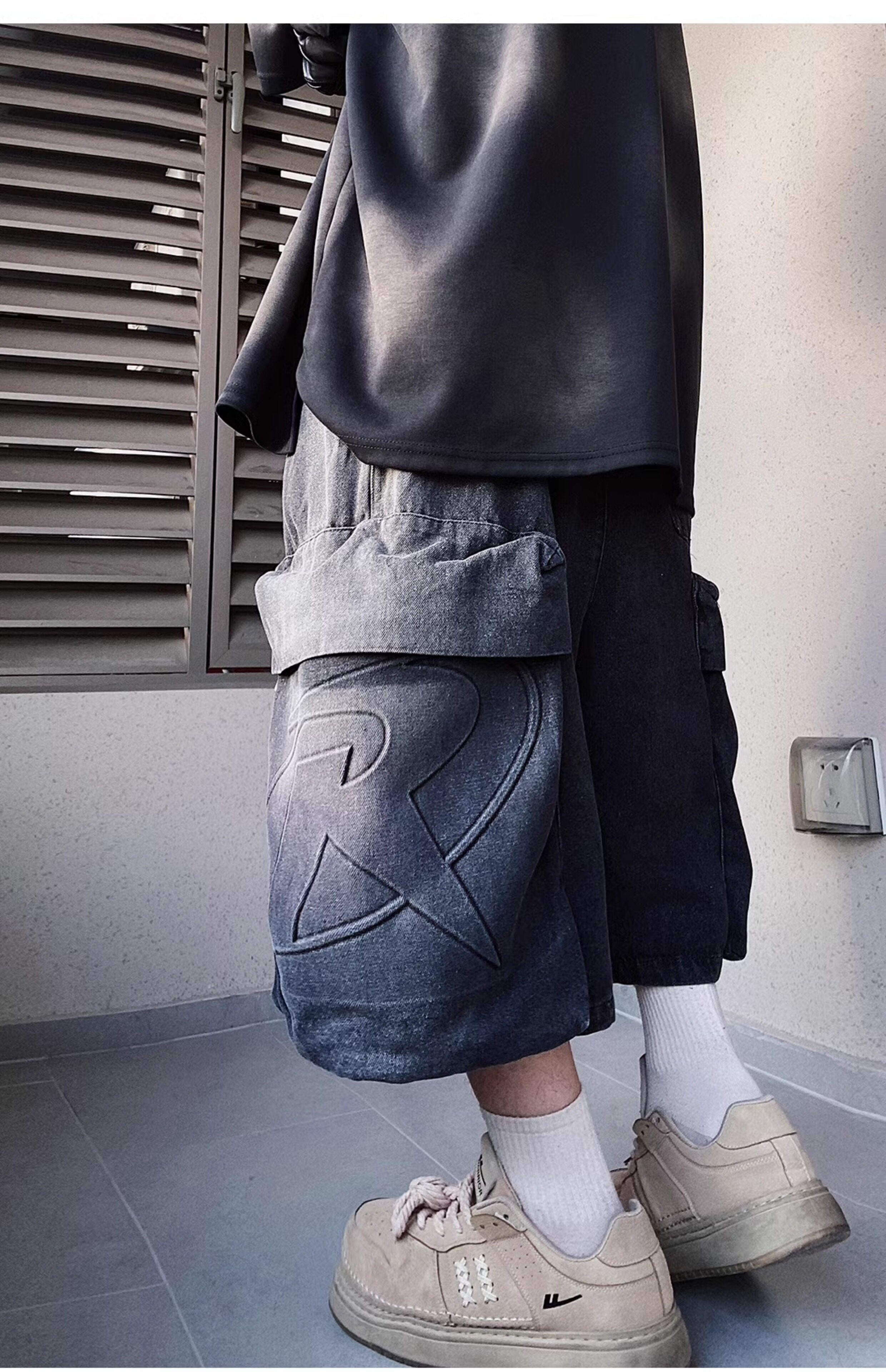 Denim Multi Pocket Wide Leg Cropped Denim Jeans WN24004