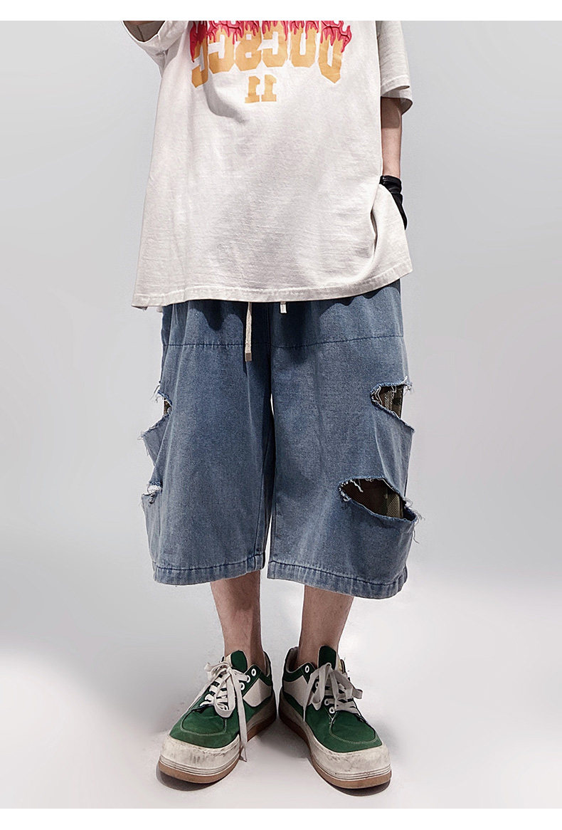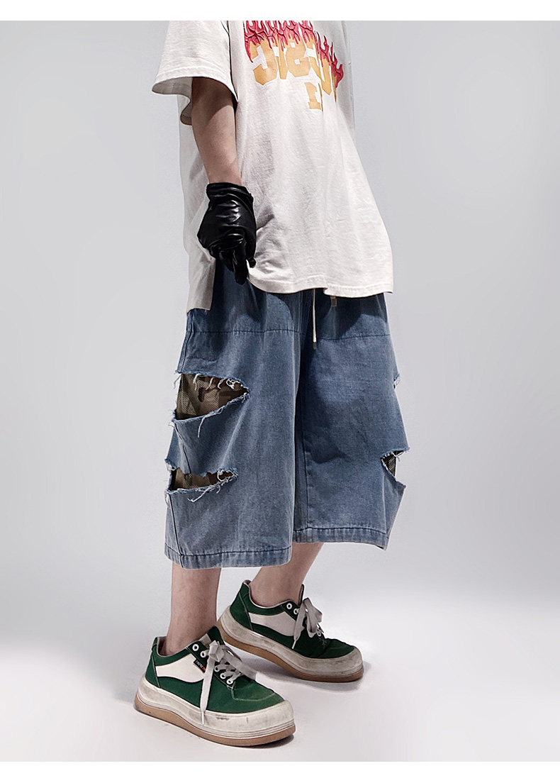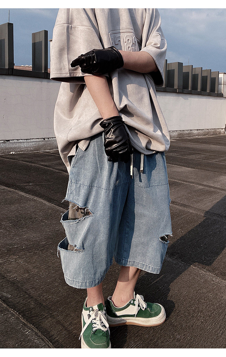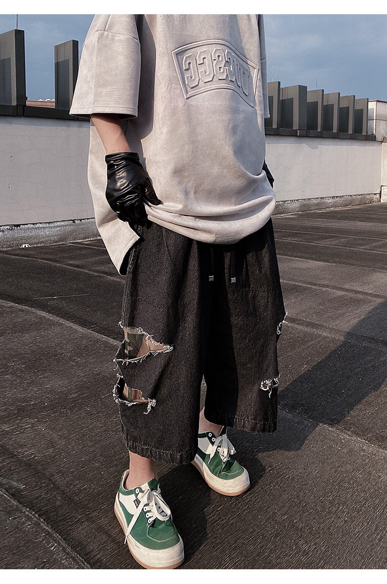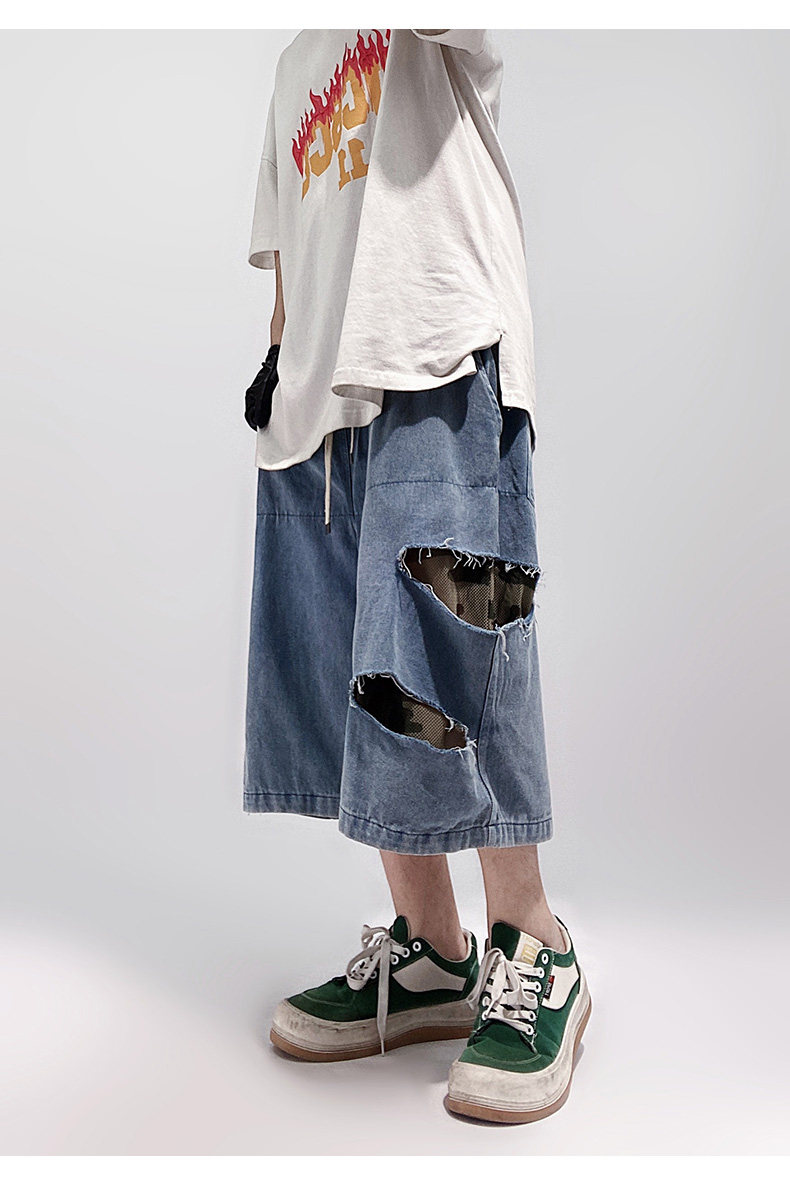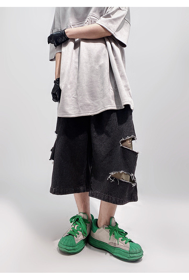 Damage Wide Leg Denim Half Jeans WN24013