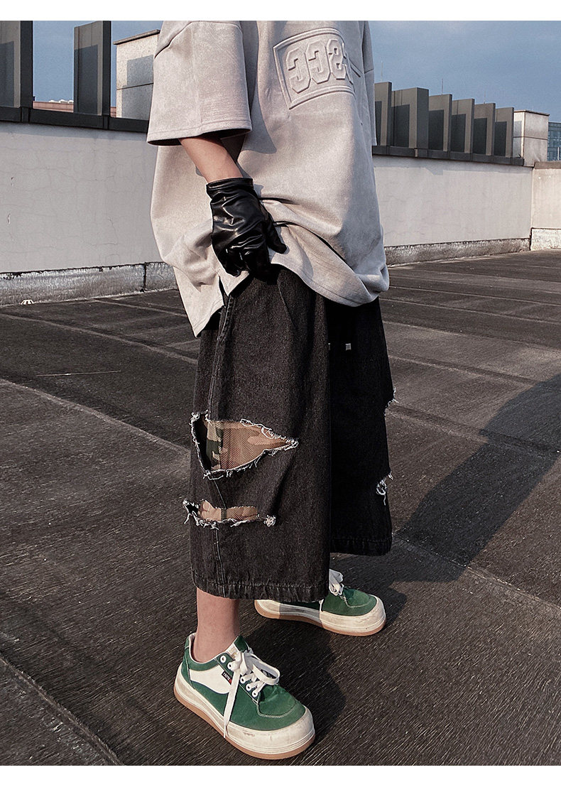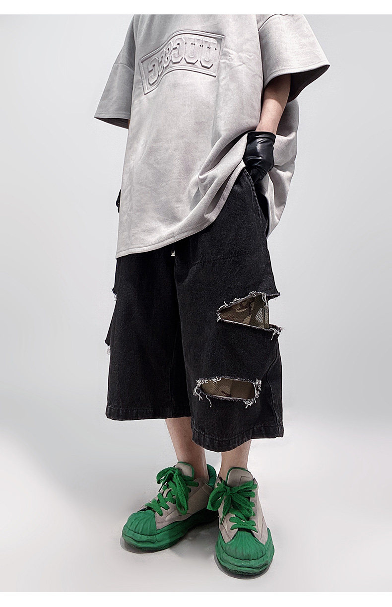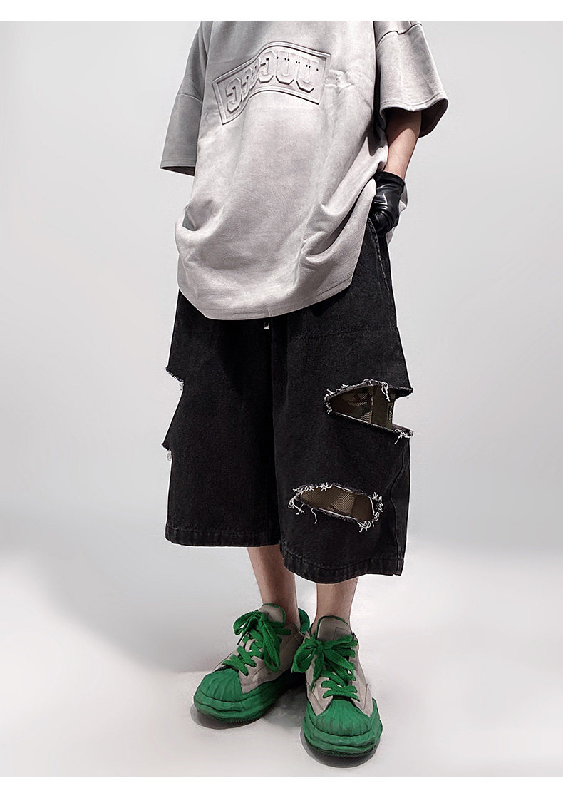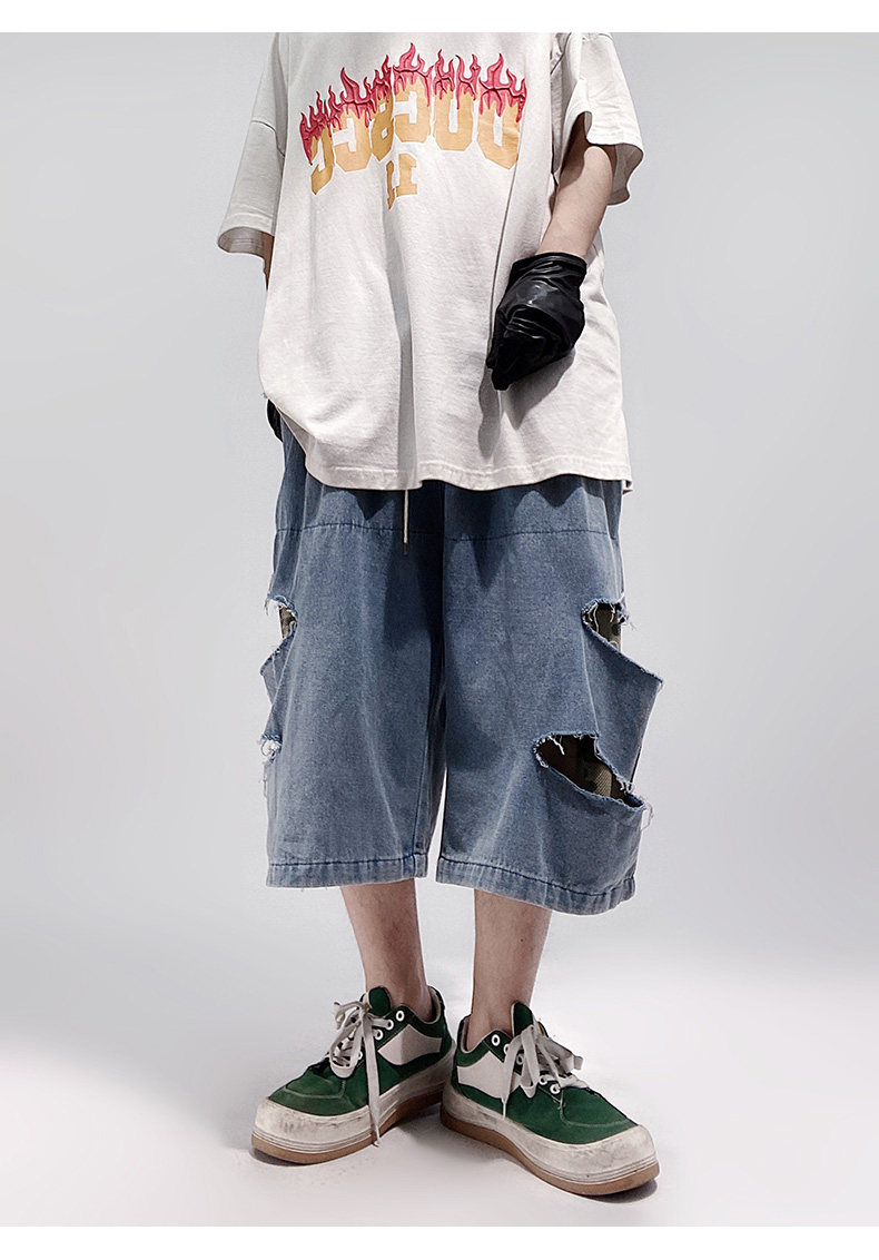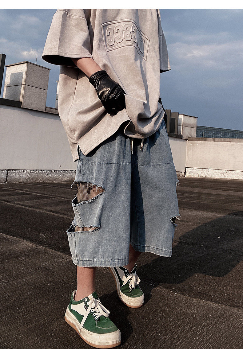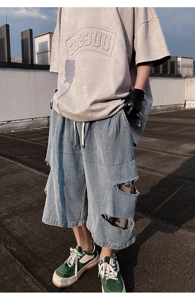 Damage Wide Leg Denim Half Jeans WN24013