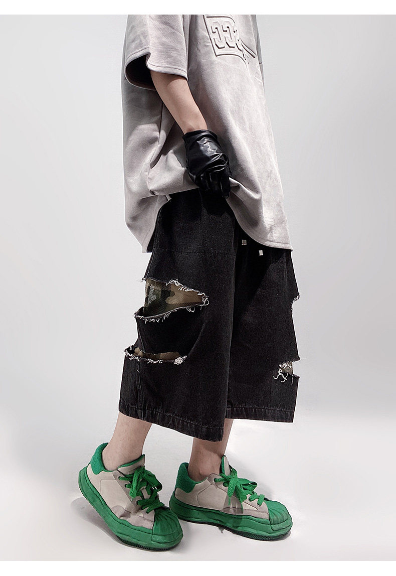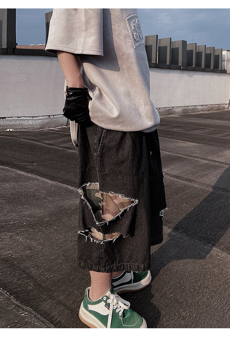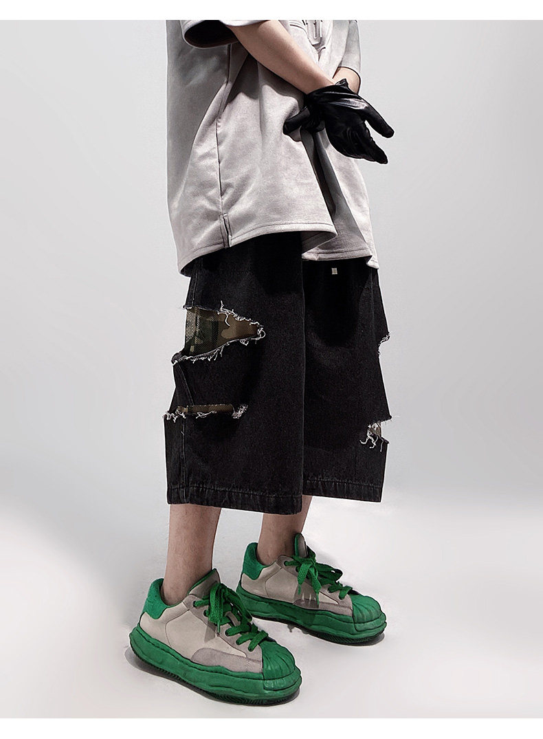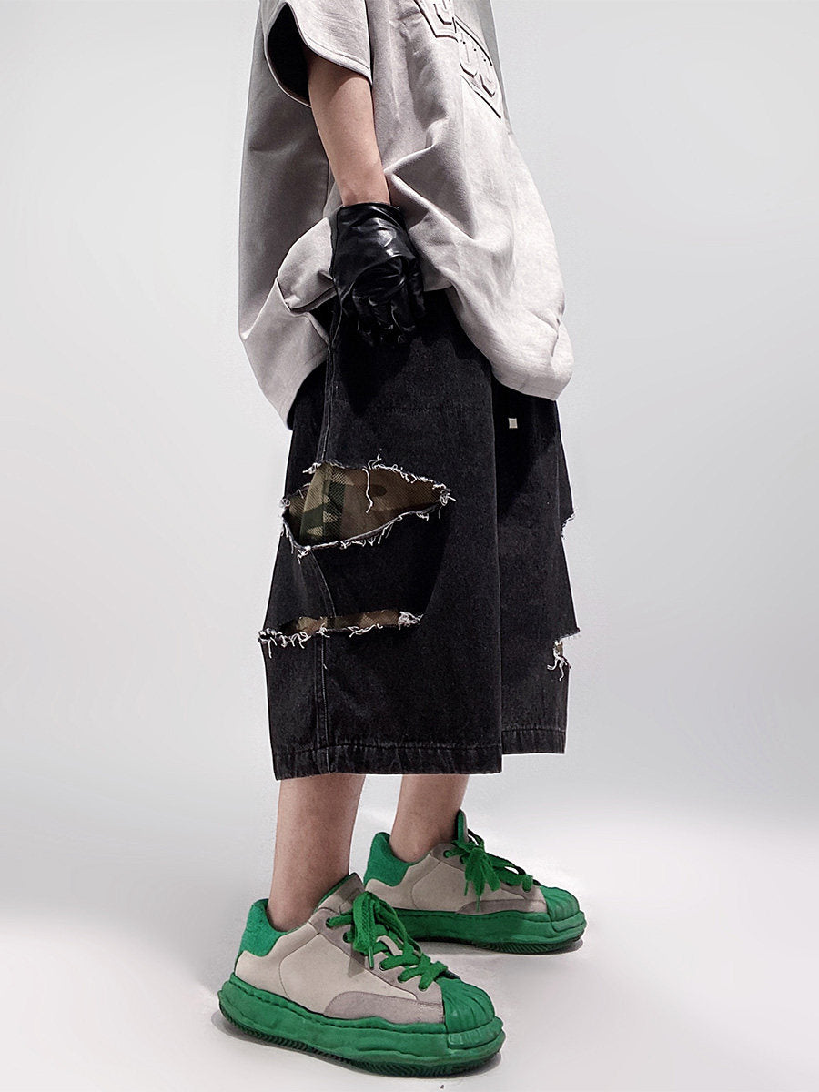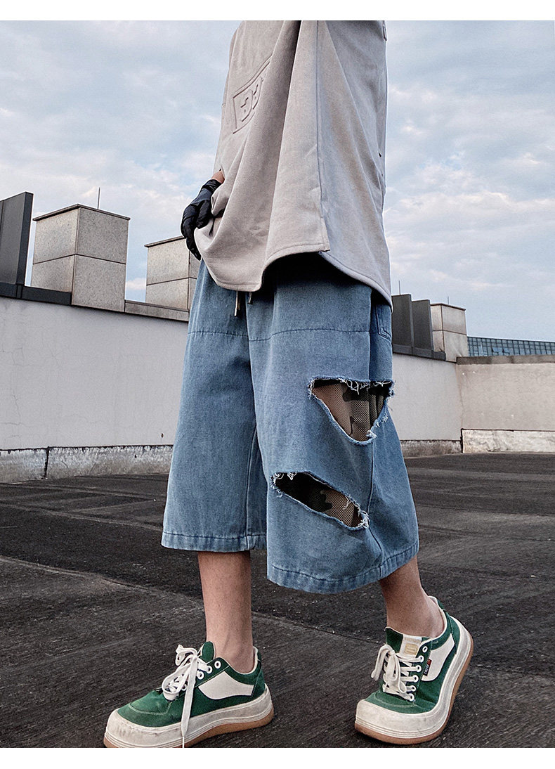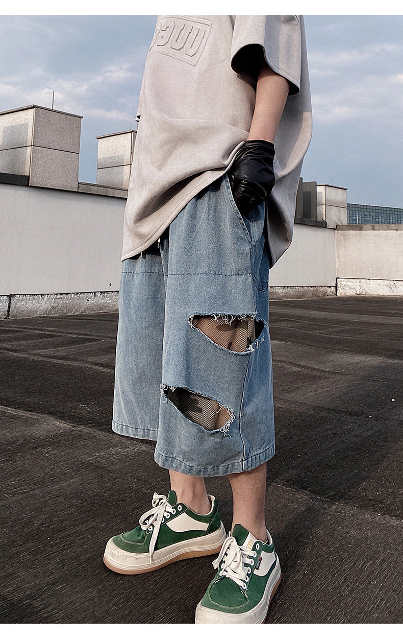 Damage Wide Leg Denim Half Jeans WN24013