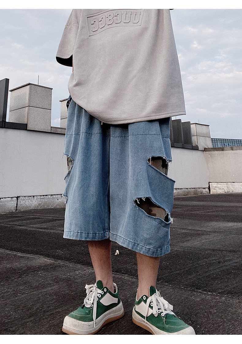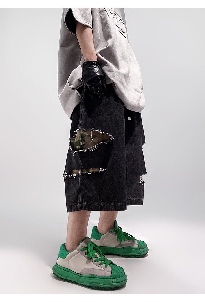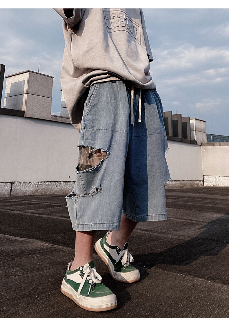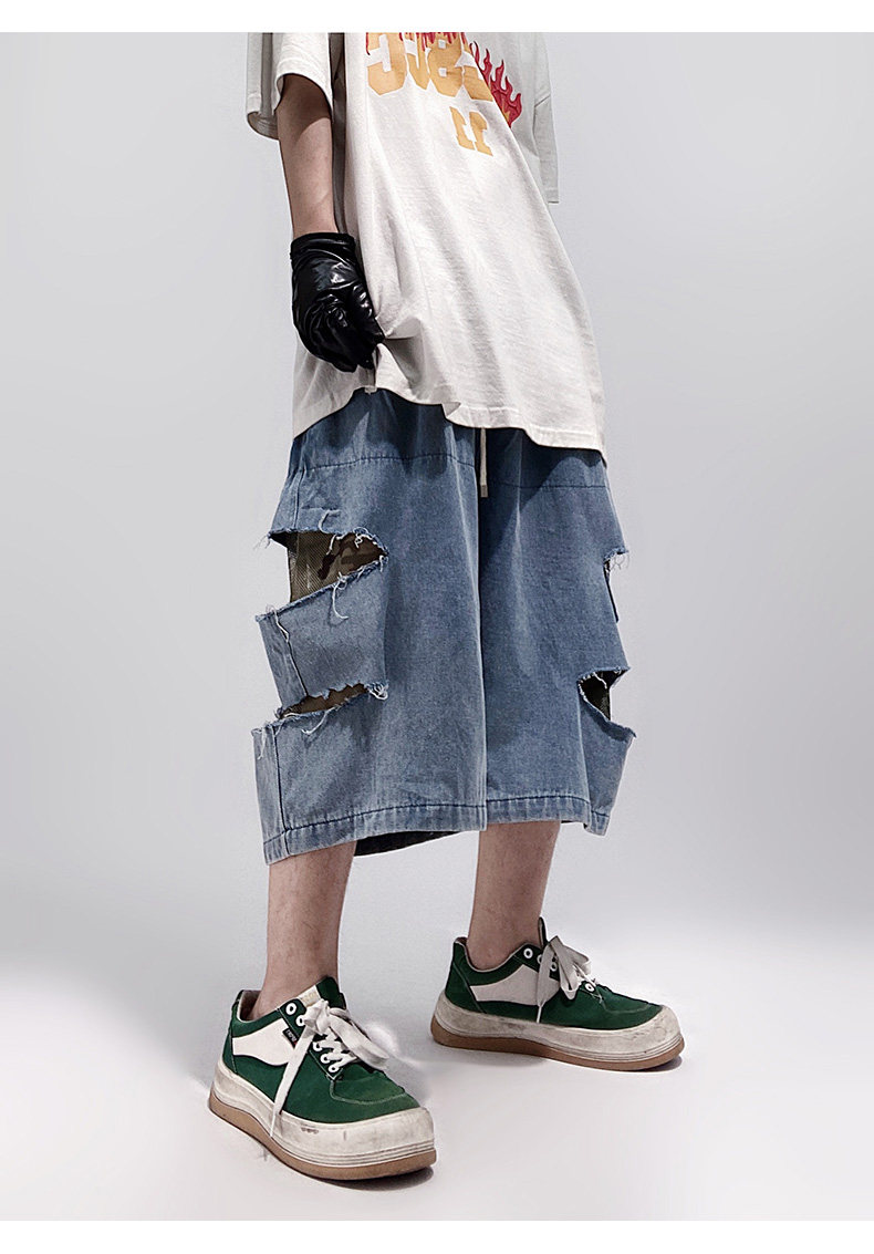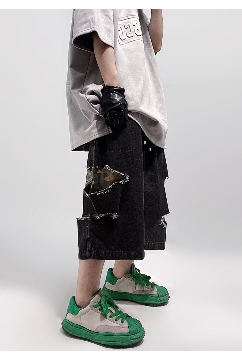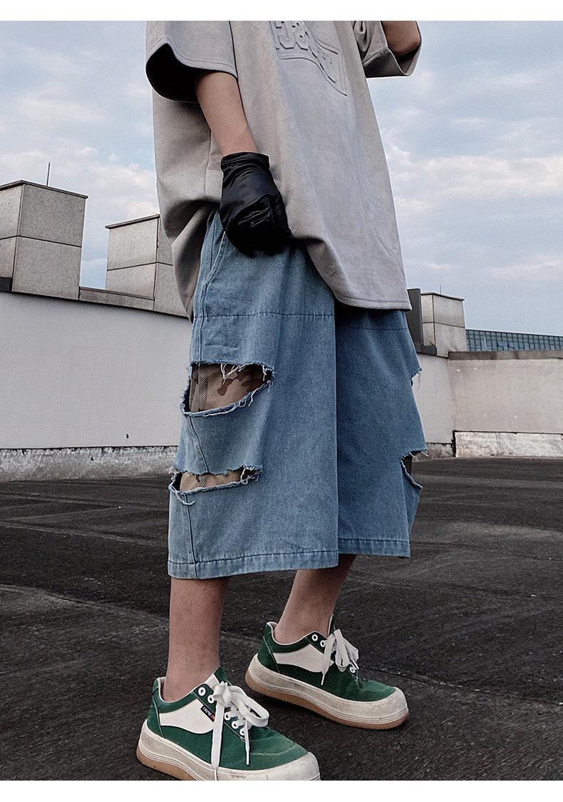 Damage Wide Leg Denim Half Jeans WN24013
