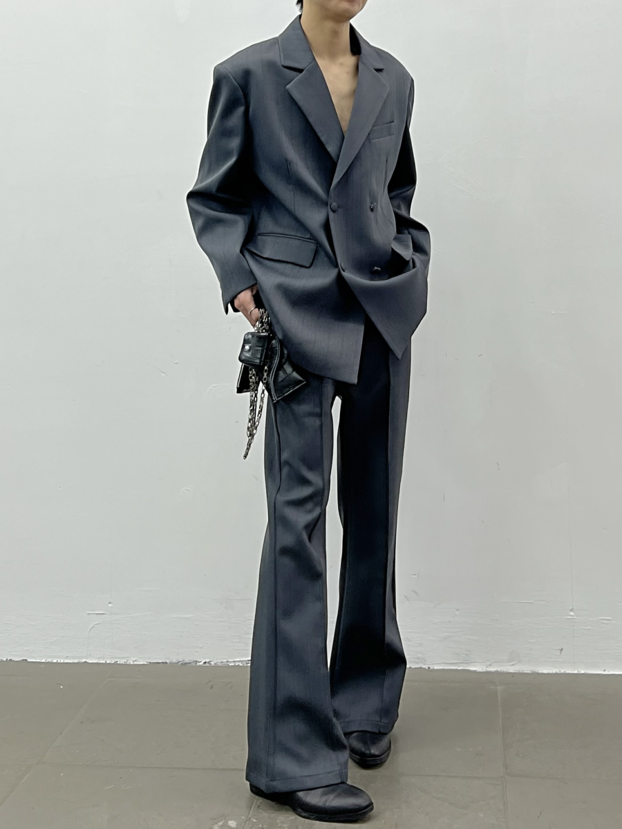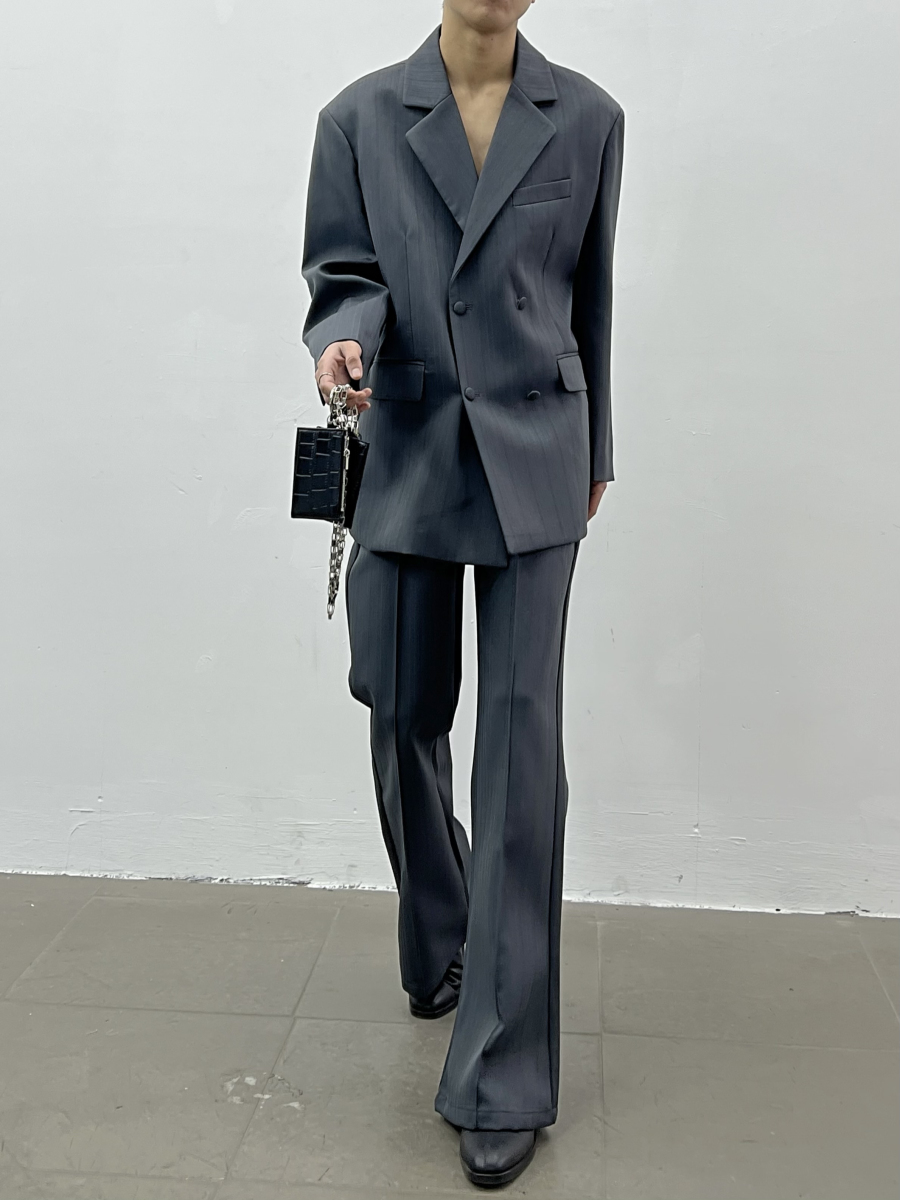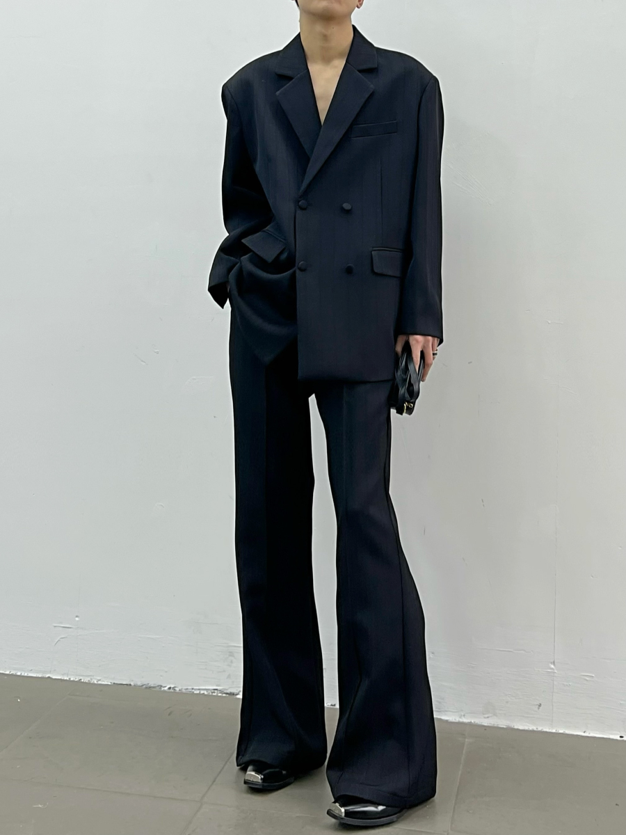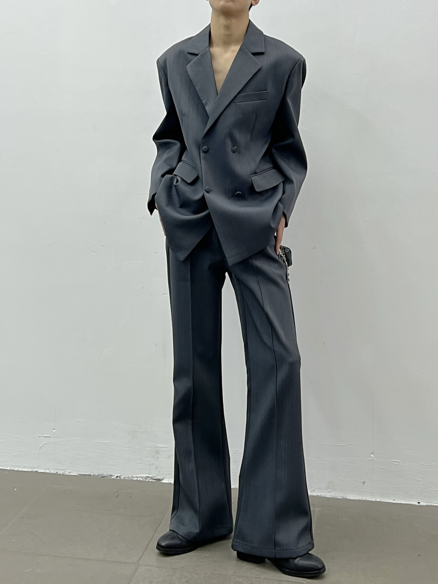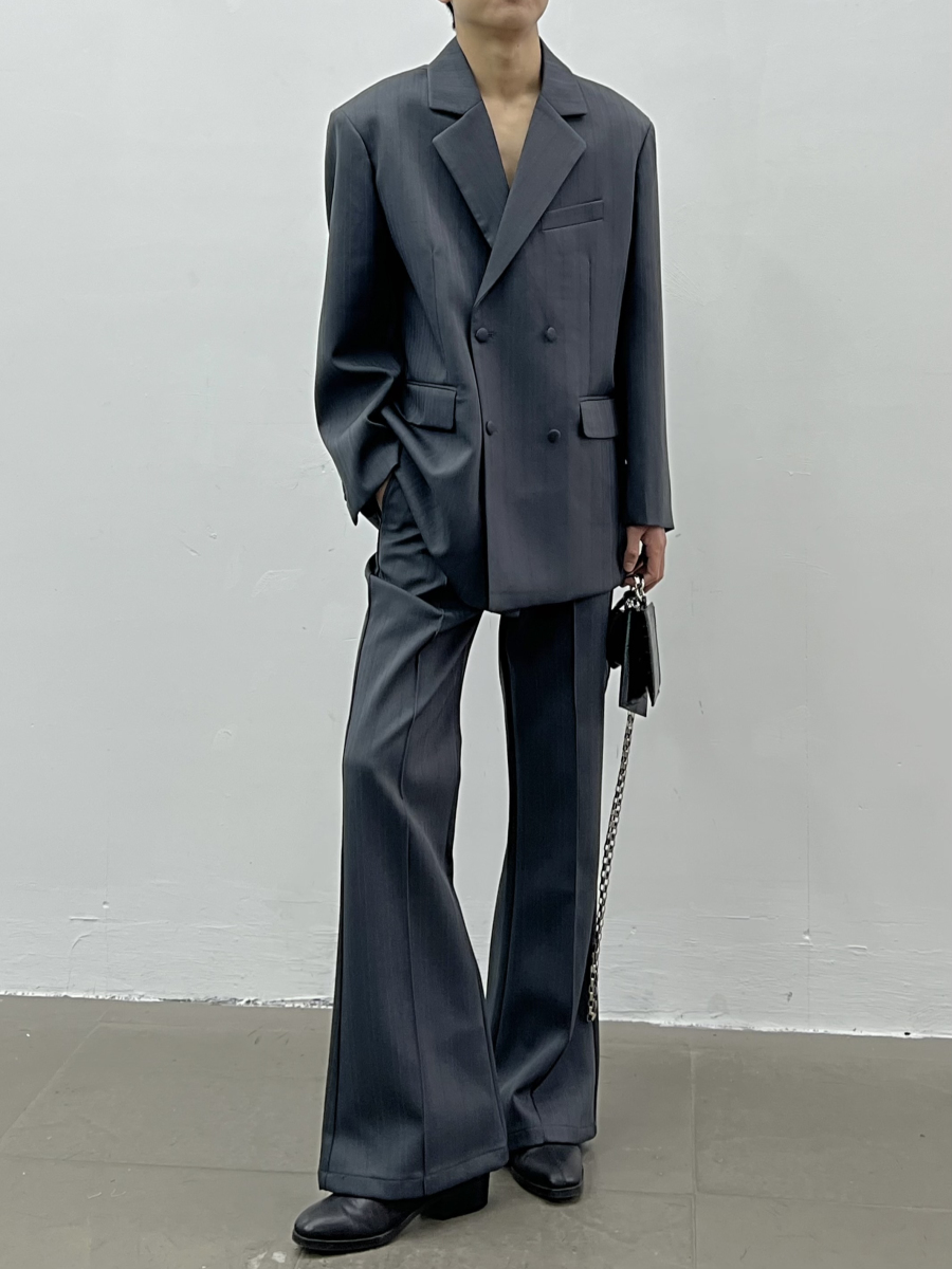 Stripe Double Breast Tailored Jacket & Flare Trousers Setup WN5004