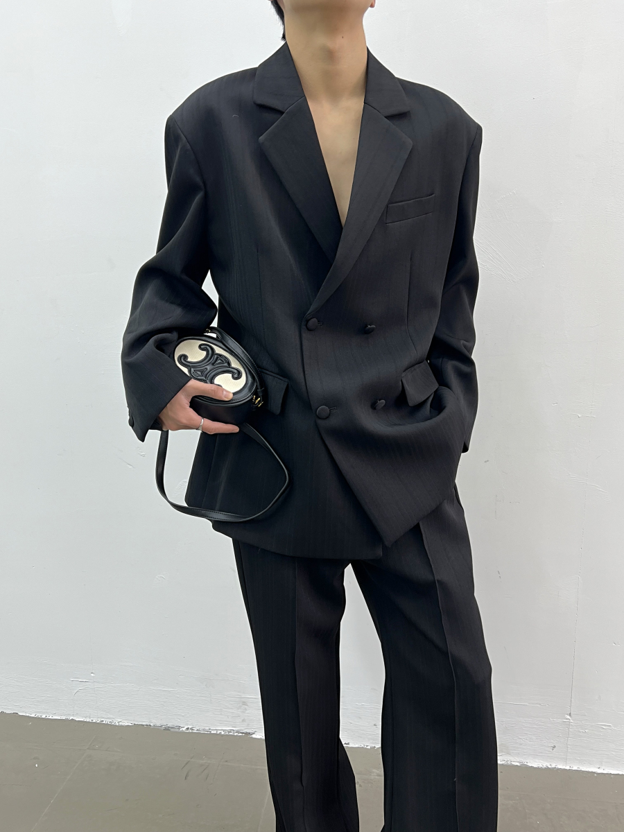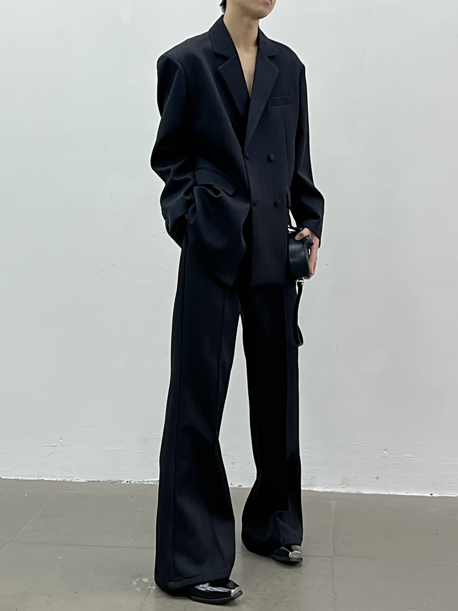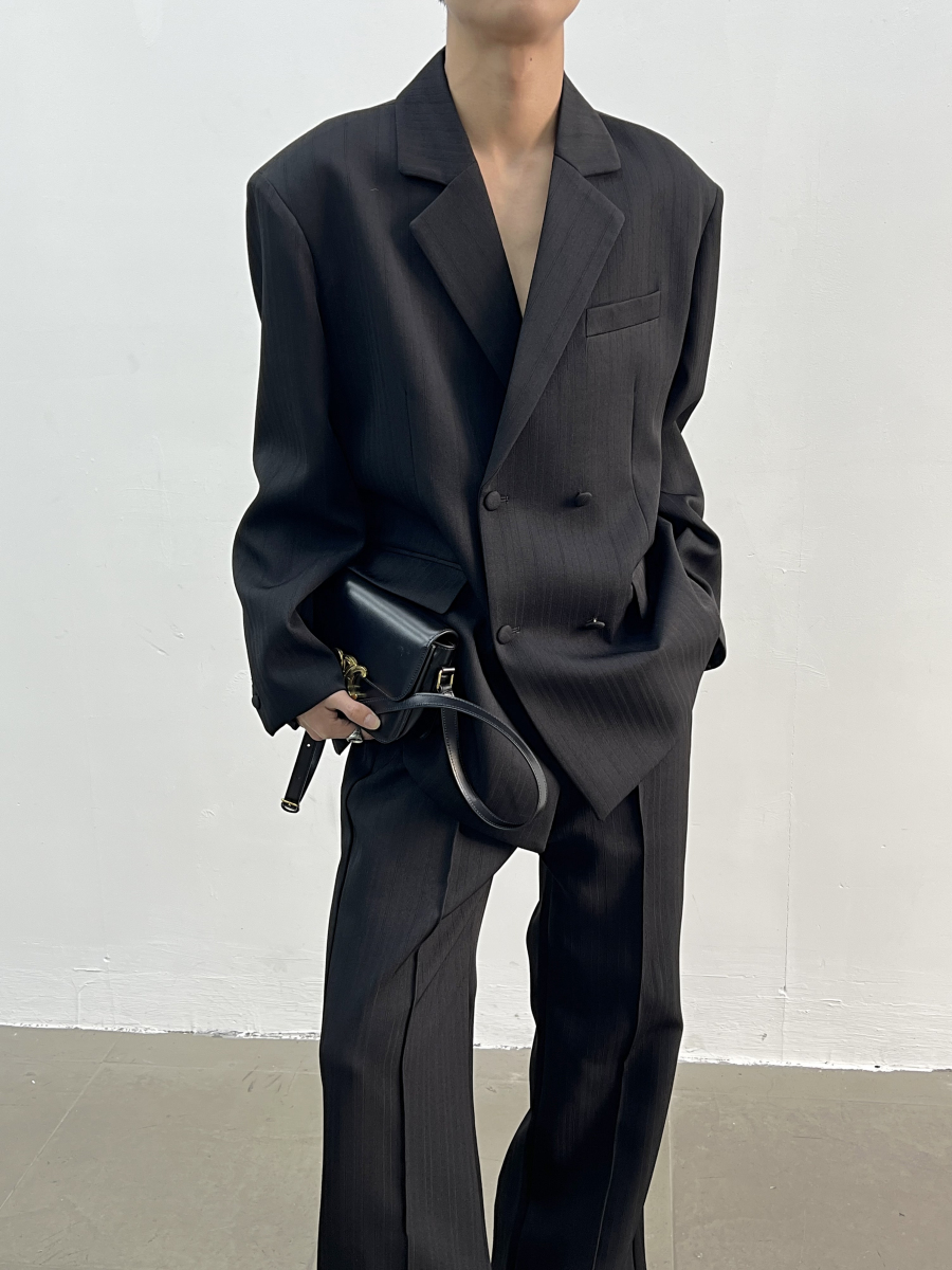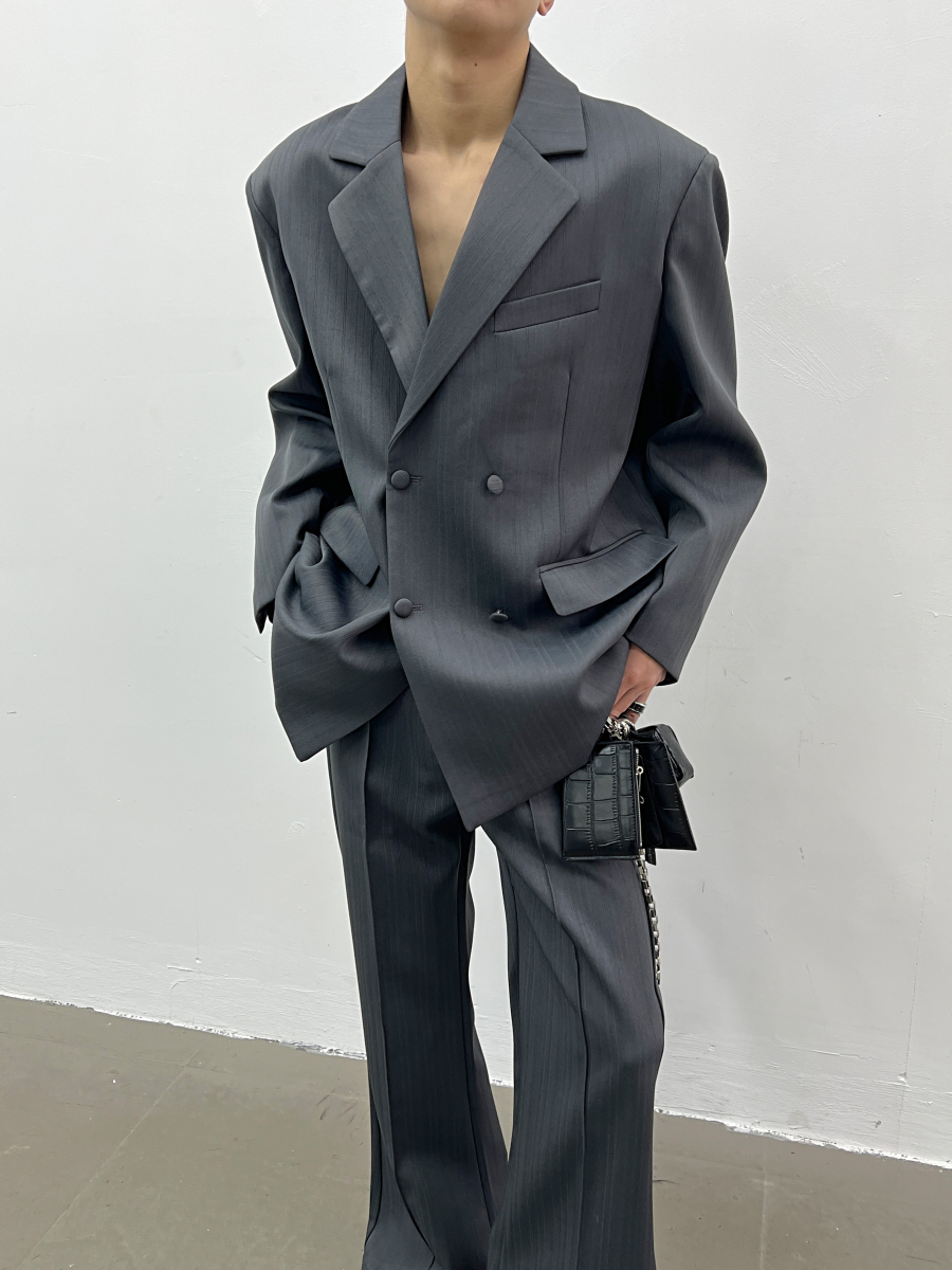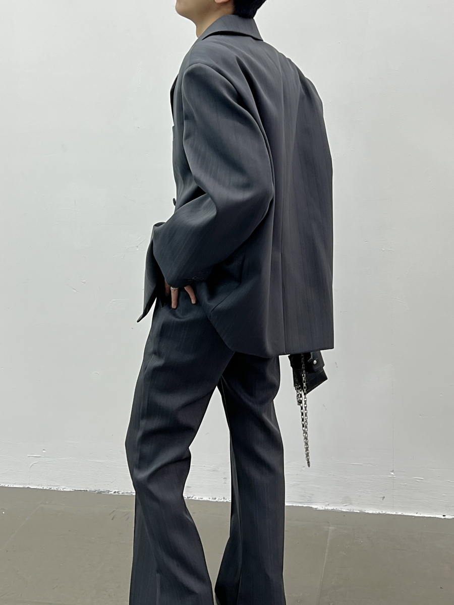 Stripe Double Breast Tailored Jacket & Flare Trousers Setup WN5004