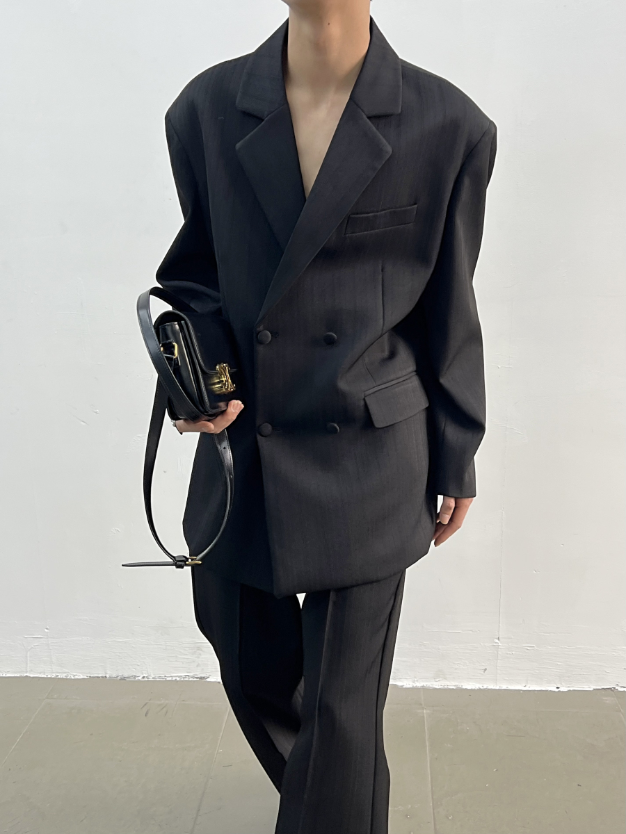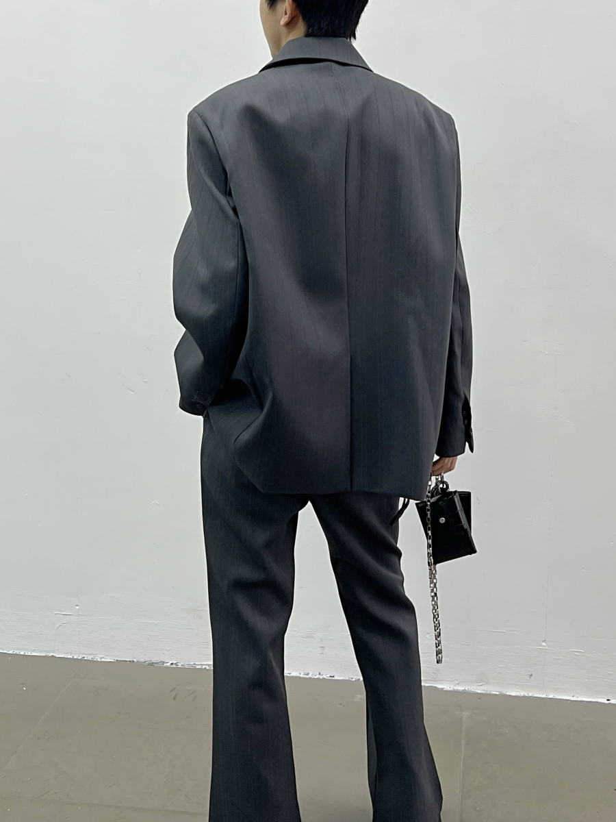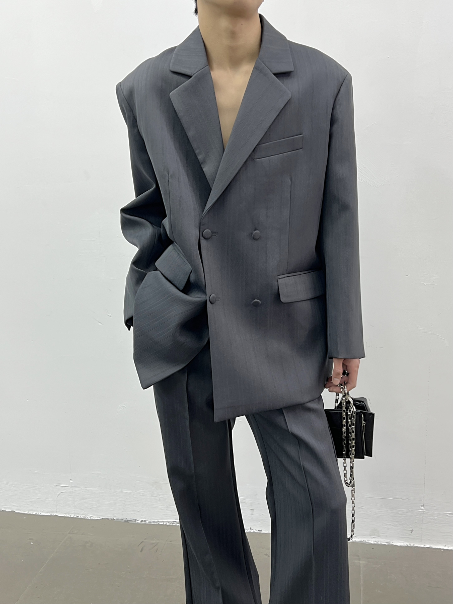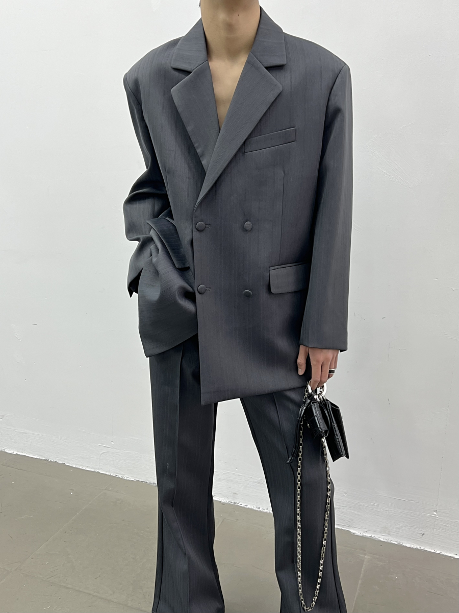 Stripe Double Breast Tailored Jacket & Flare Trousers Setup WN5004