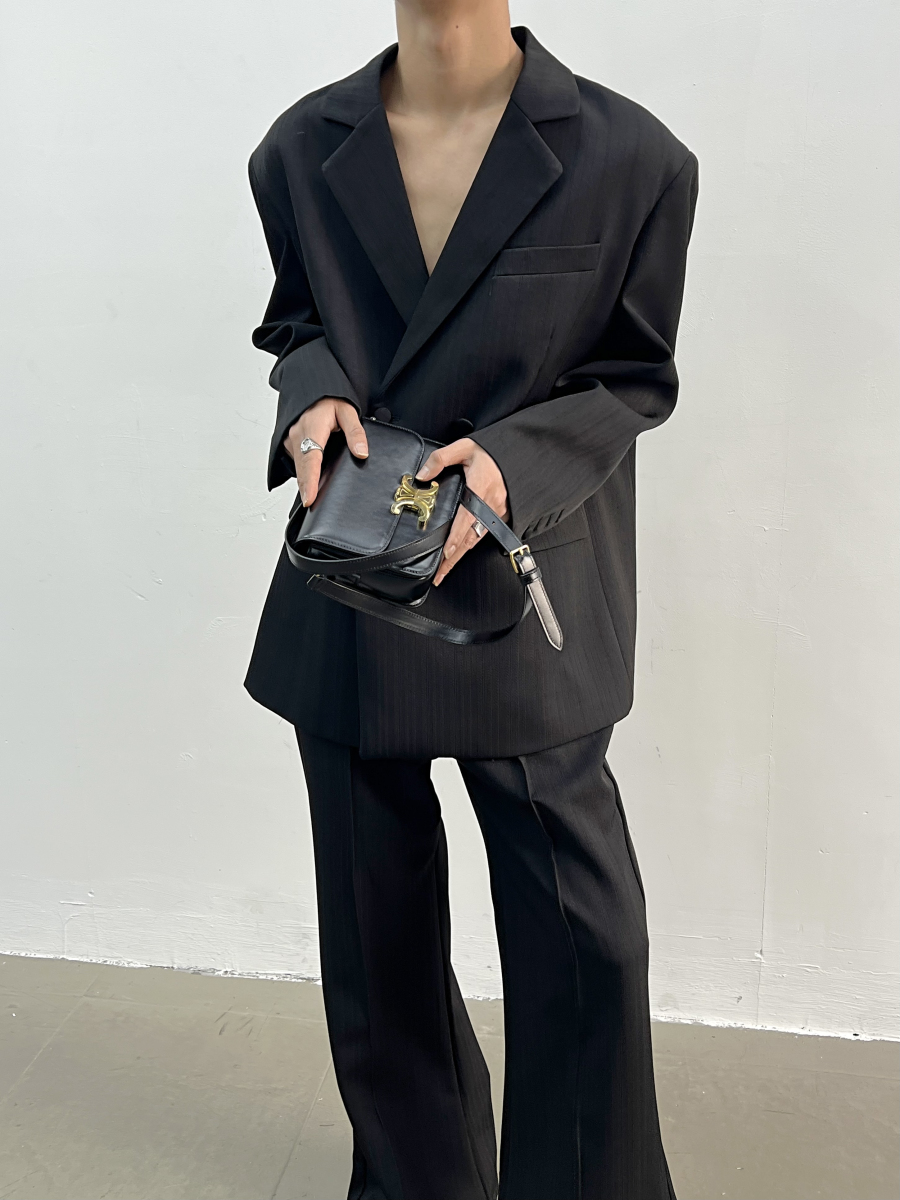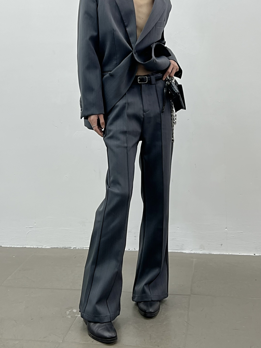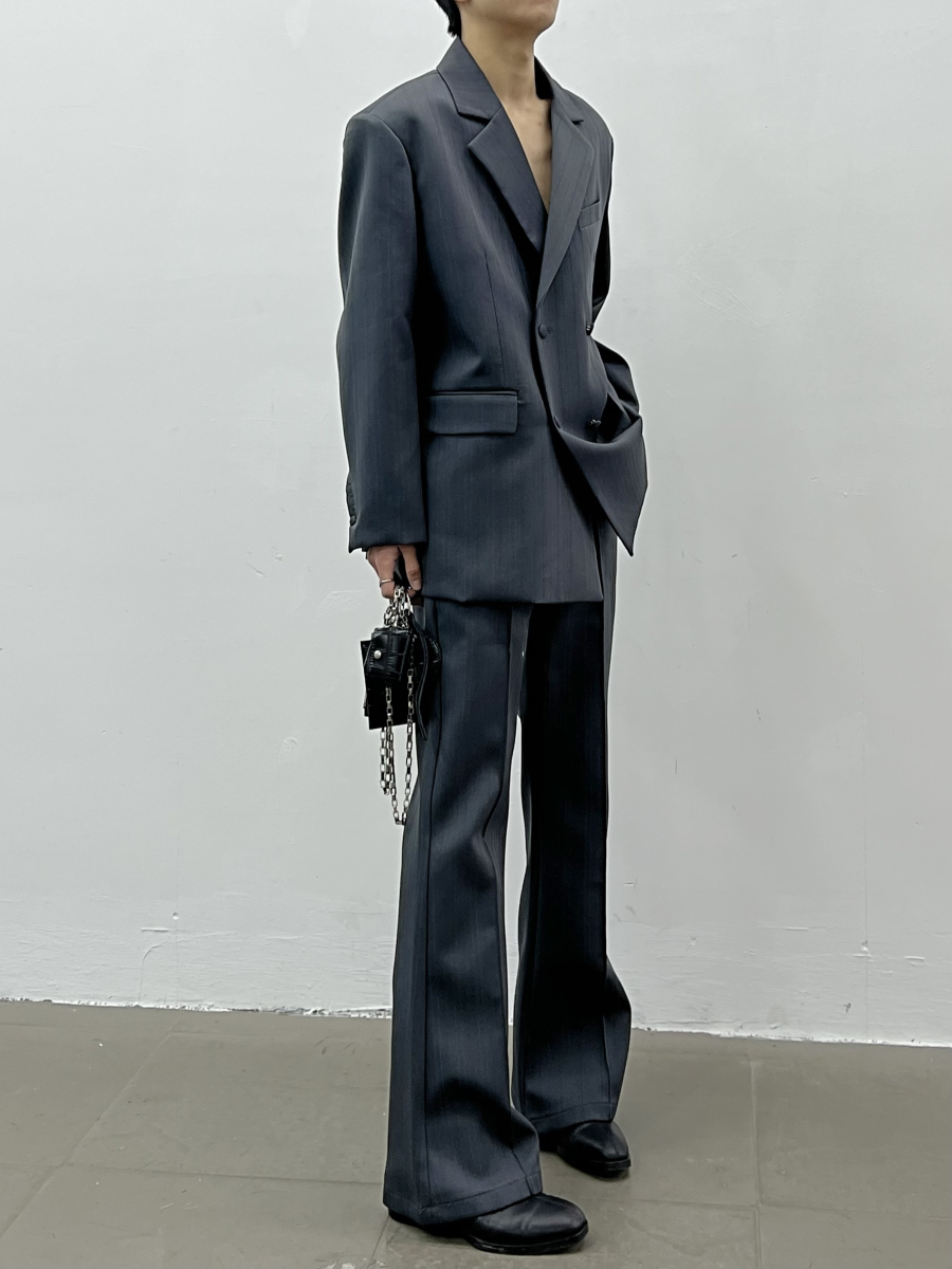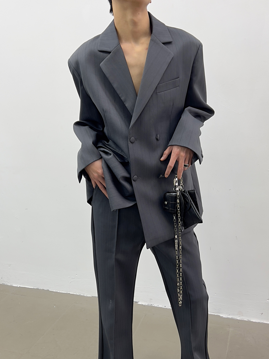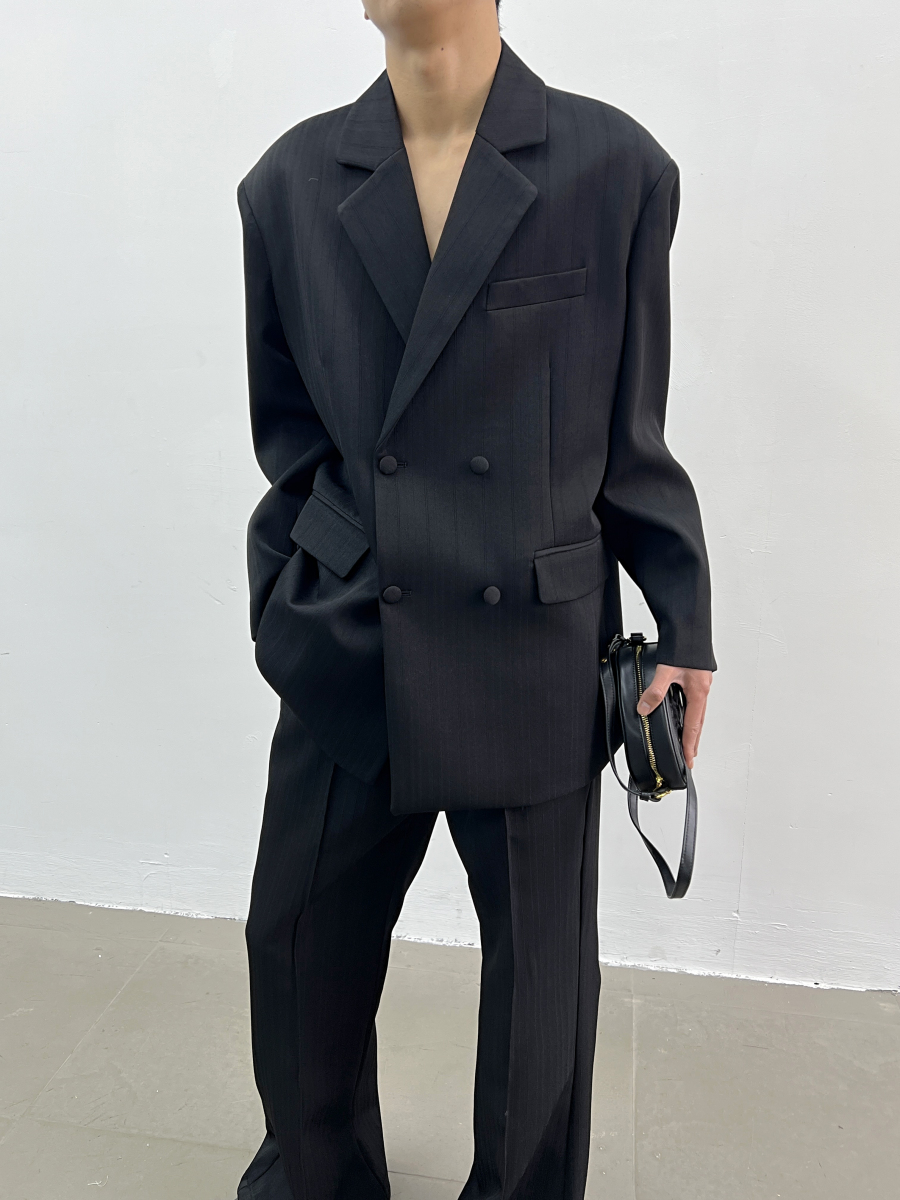 Stripe Double Breast Tailored Jacket & Flare Trousers Setup WN5004
