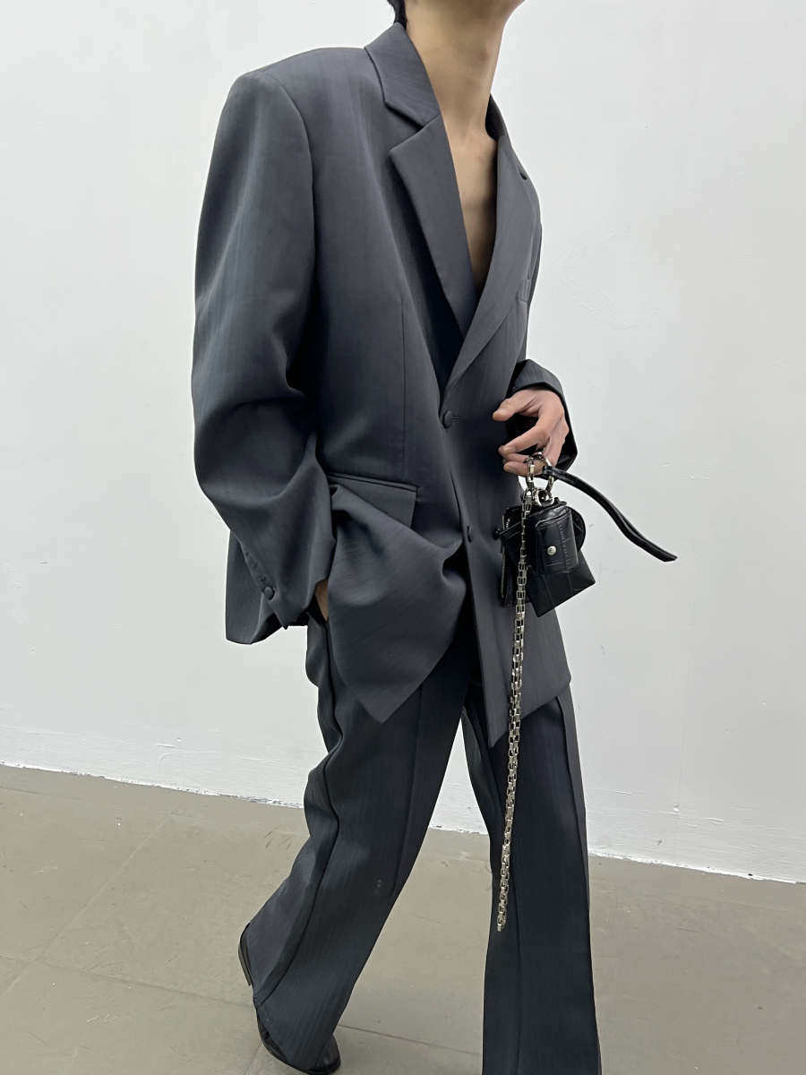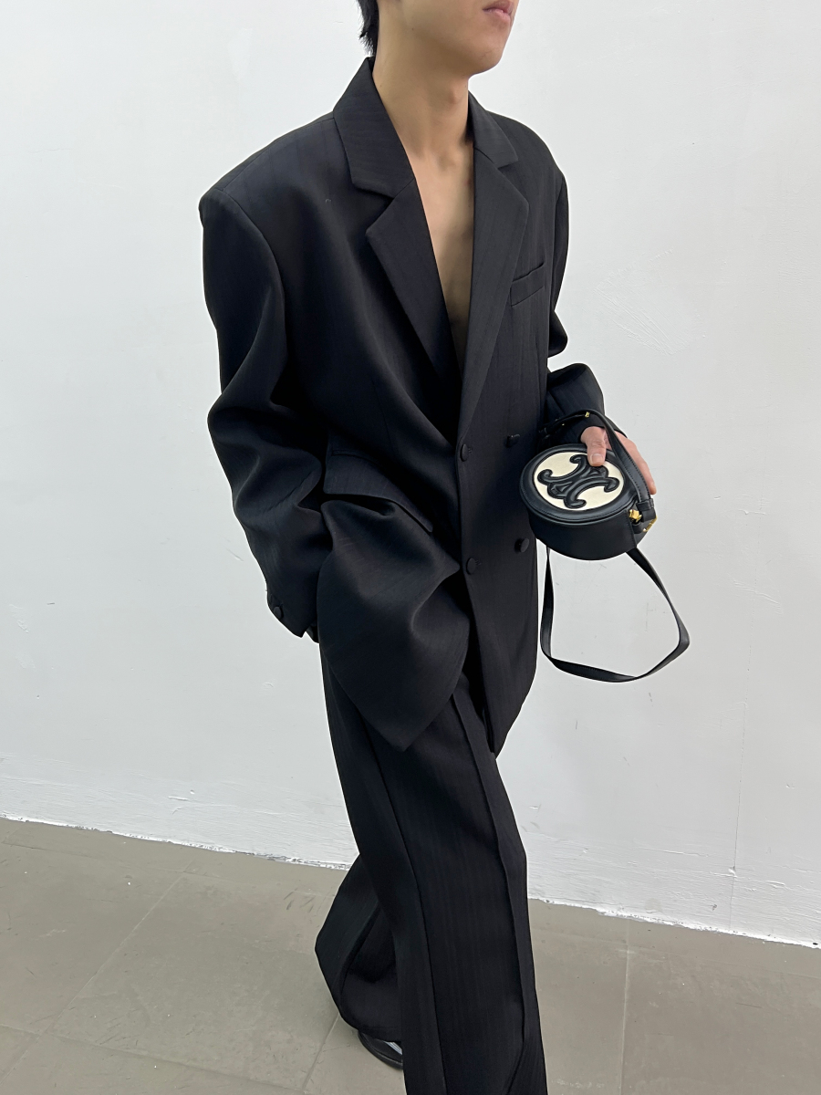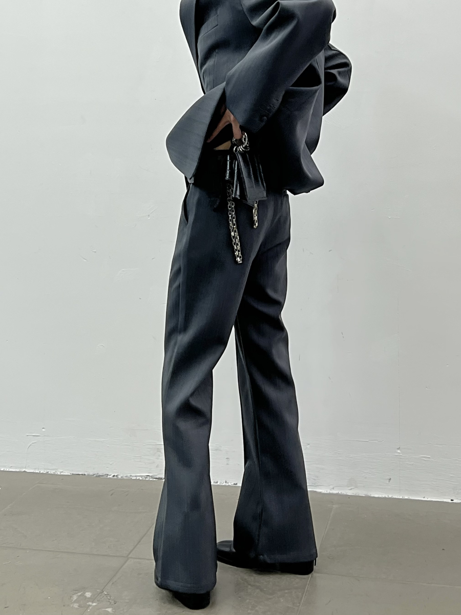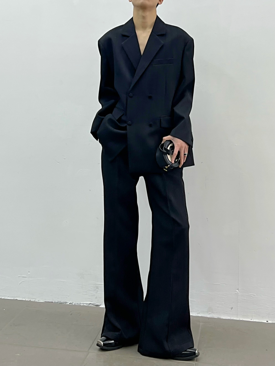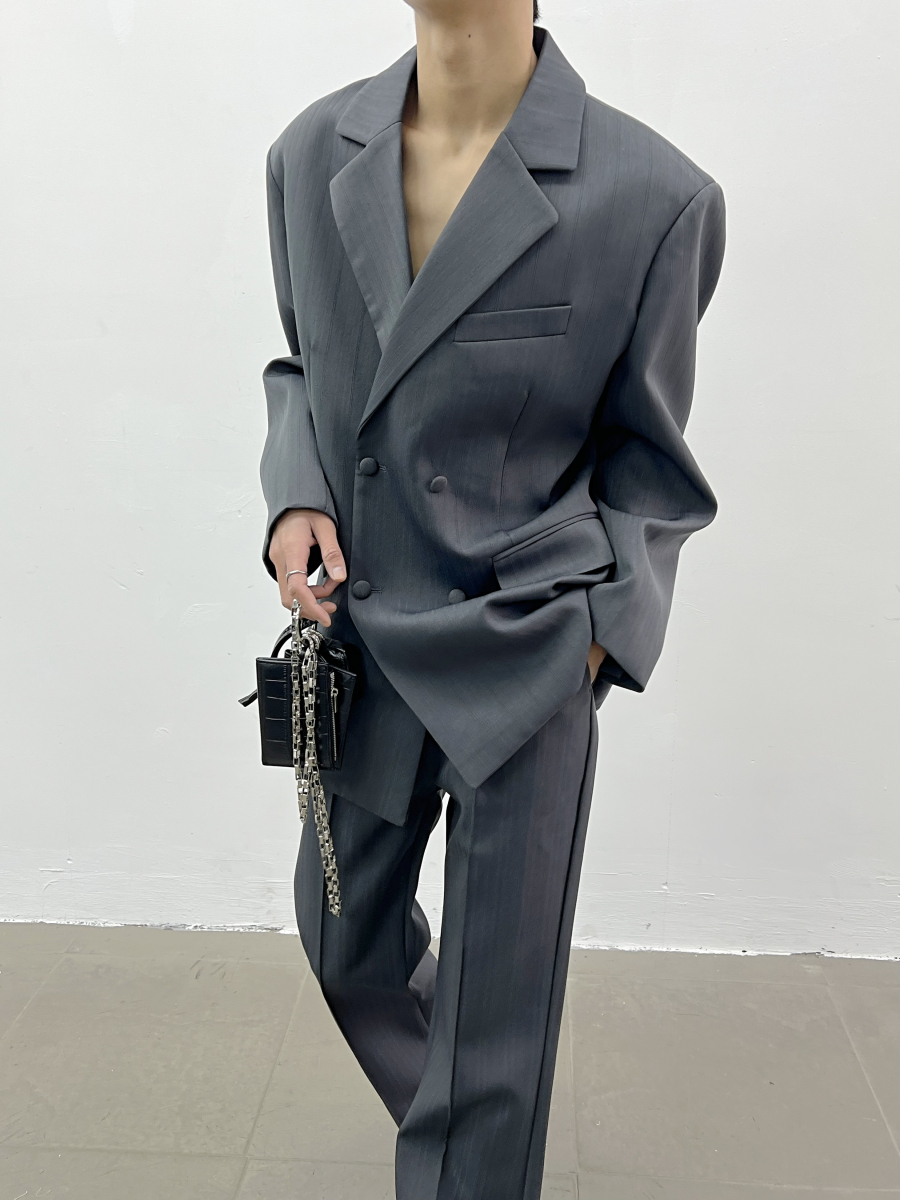 Stripe Double Breast Tailored Jacket & Flare Trousers Setup WN5004