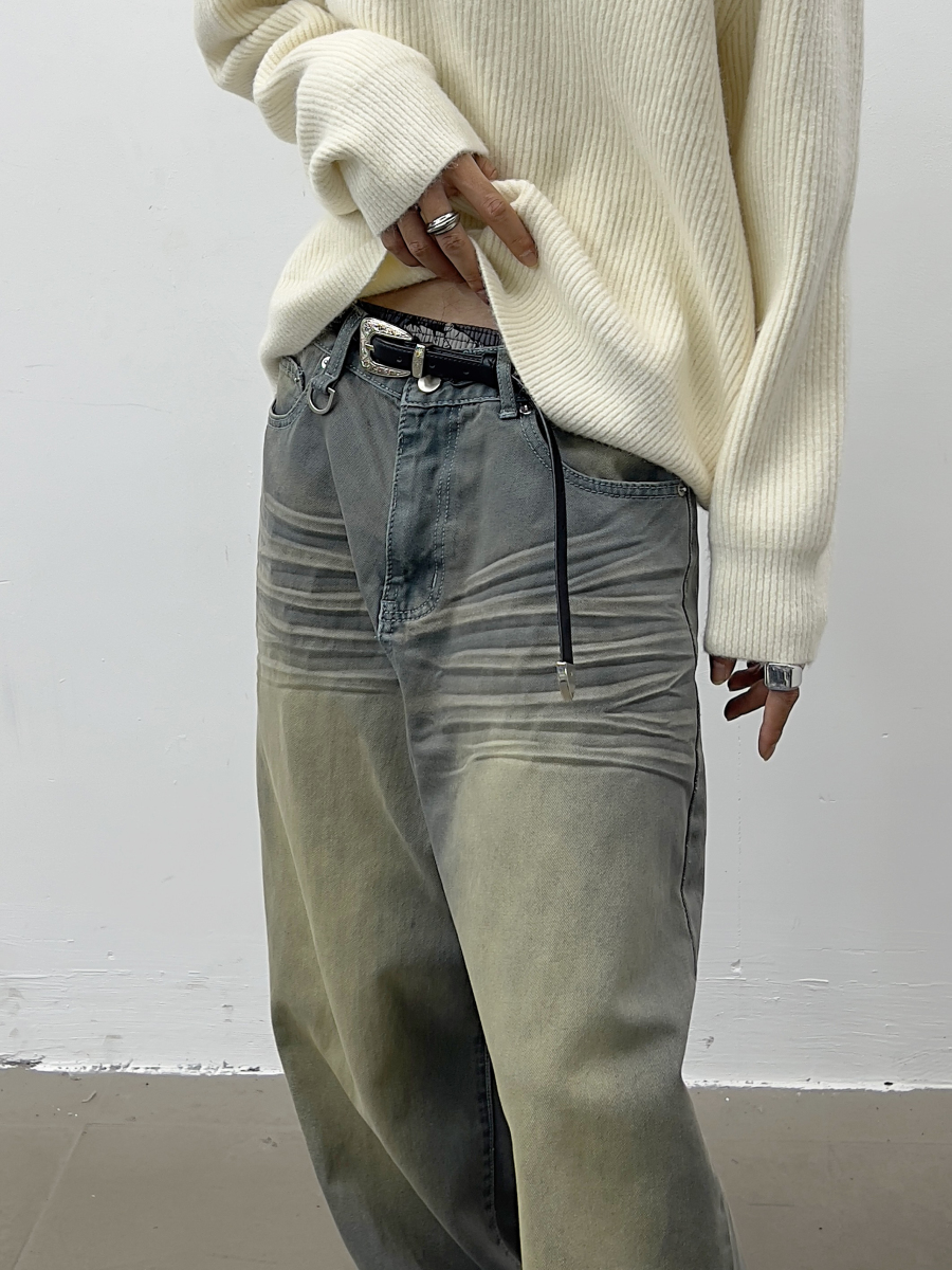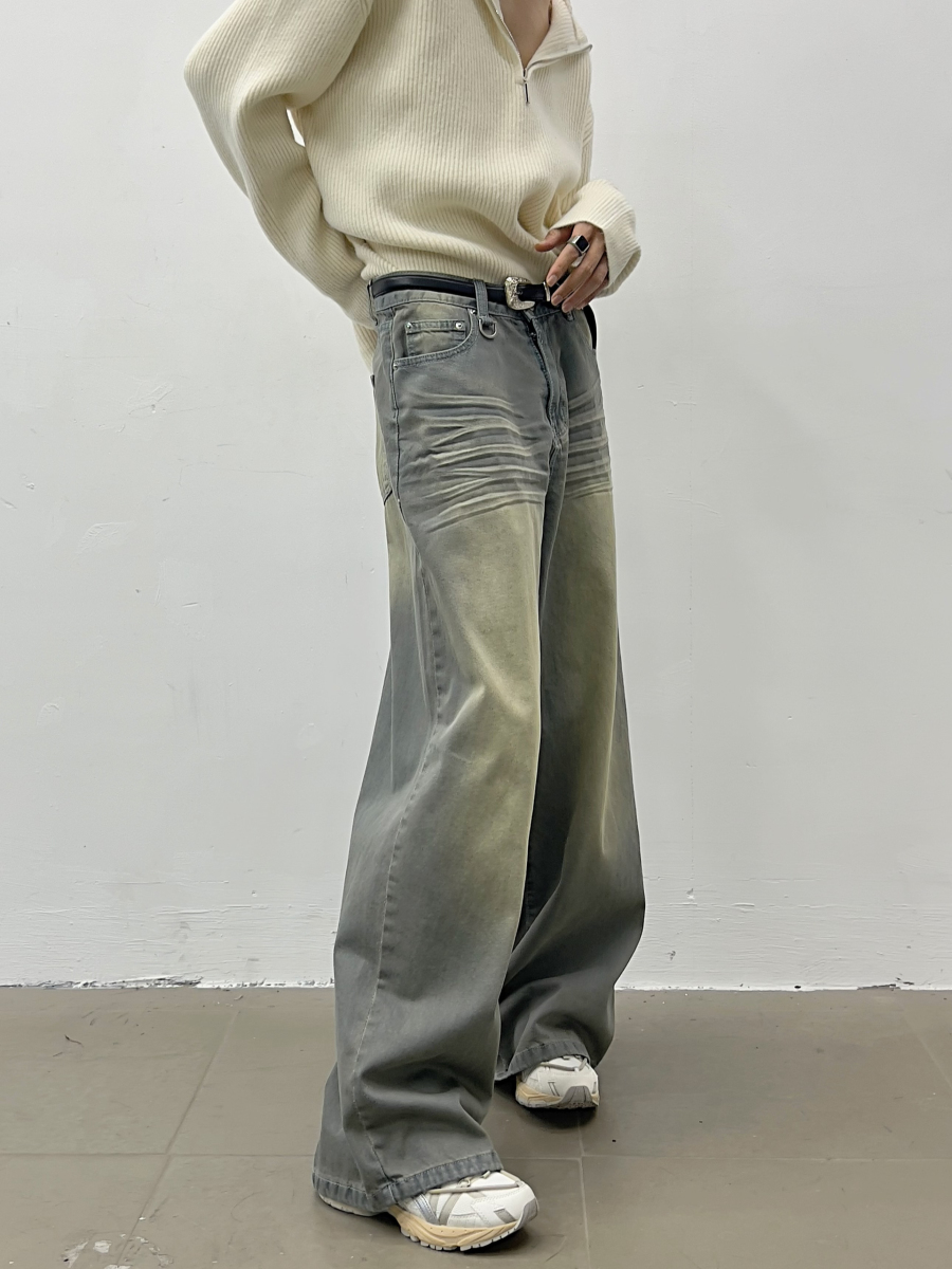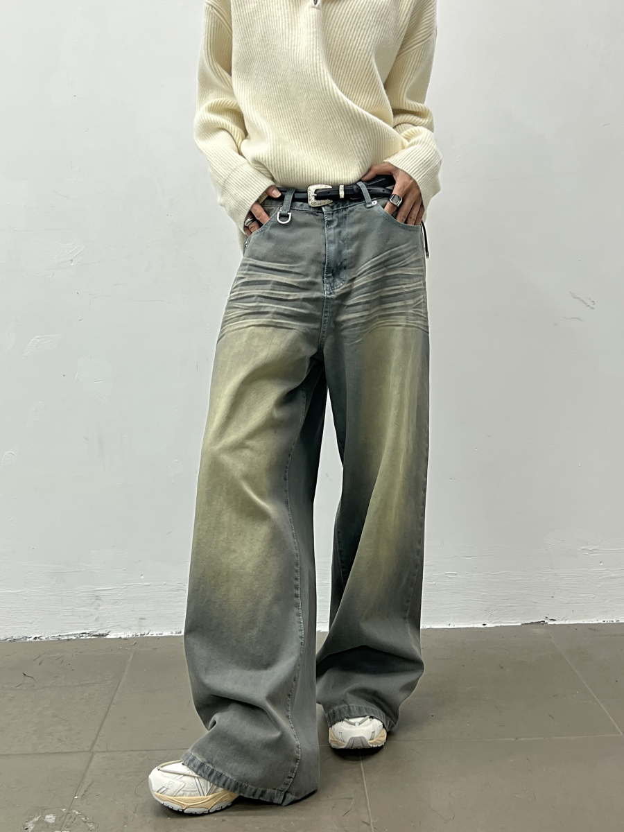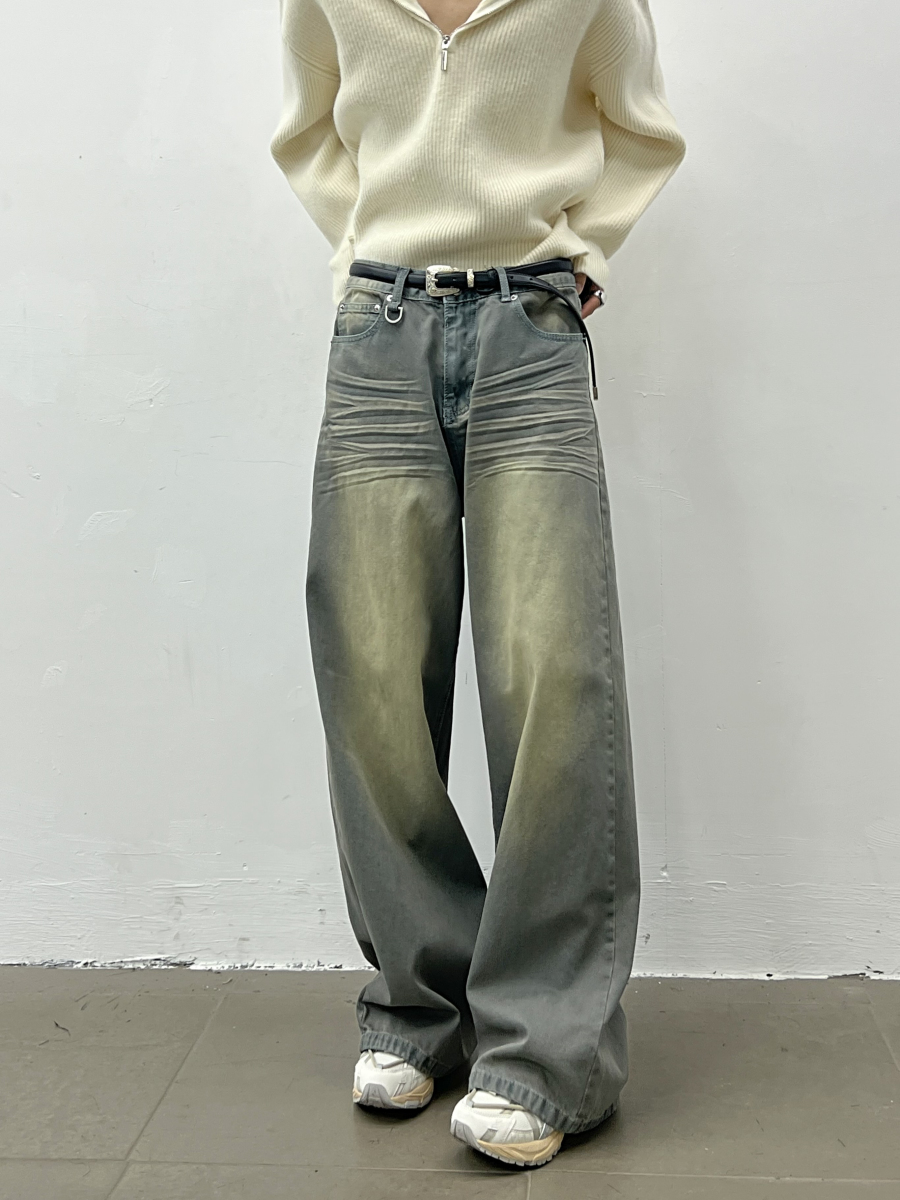 Wash Wide Leg Straight Denim Jeans WN5035