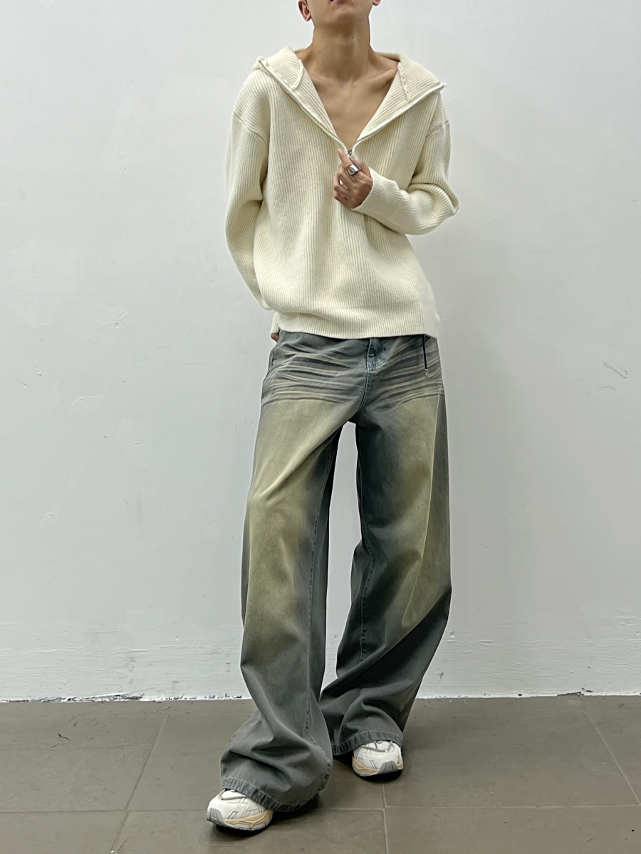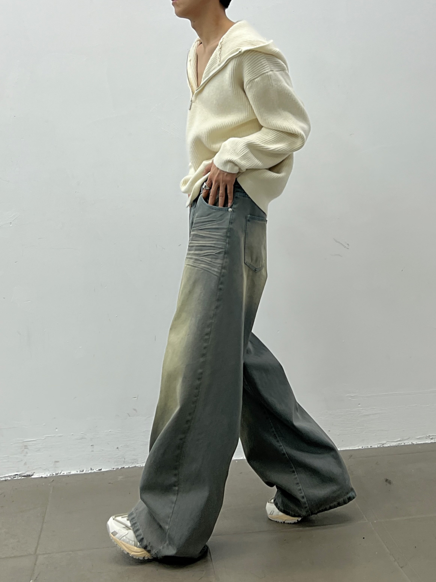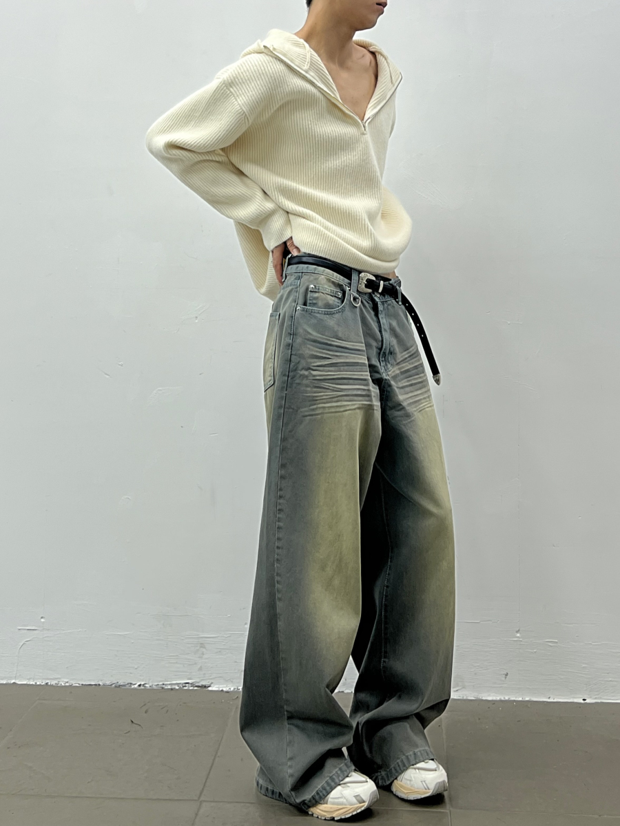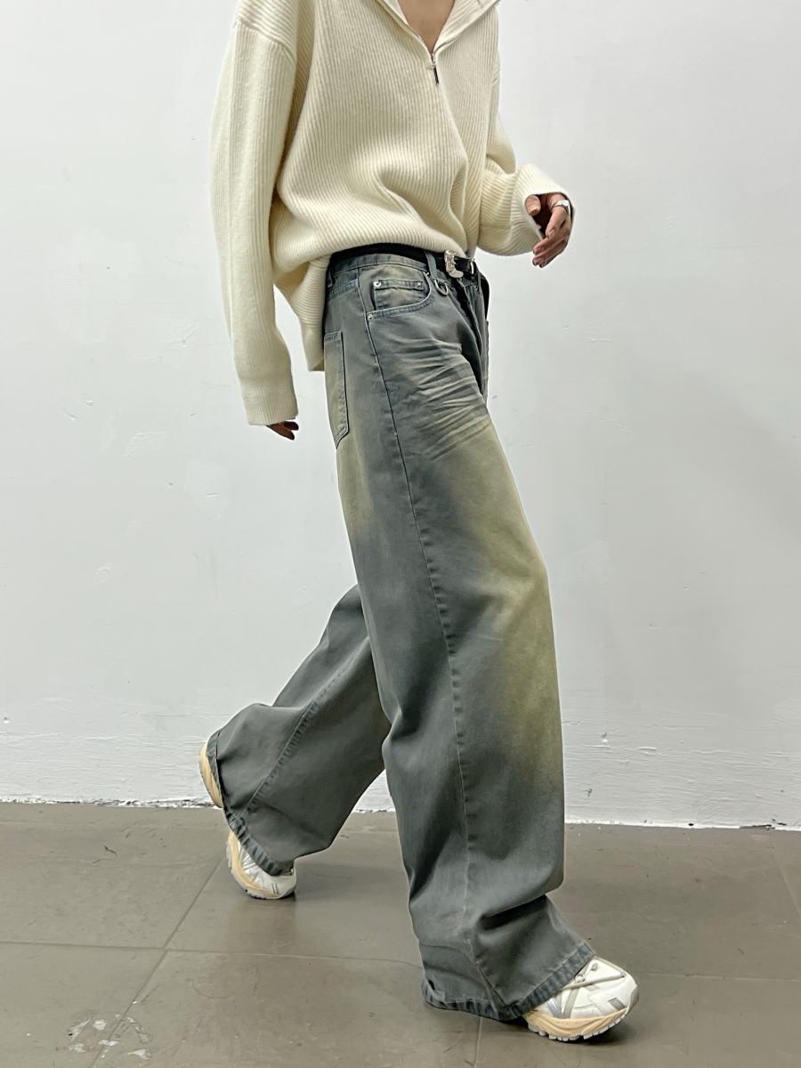 Wash Wide Leg Straight Denim Jeans WN5035