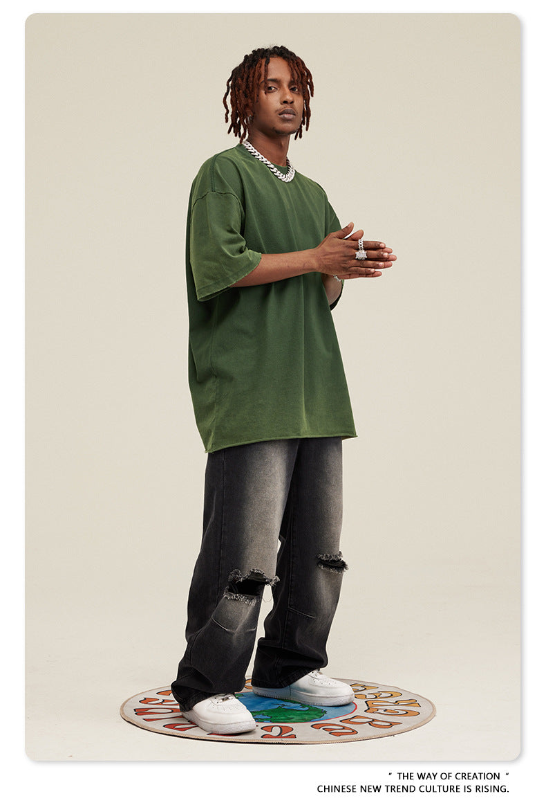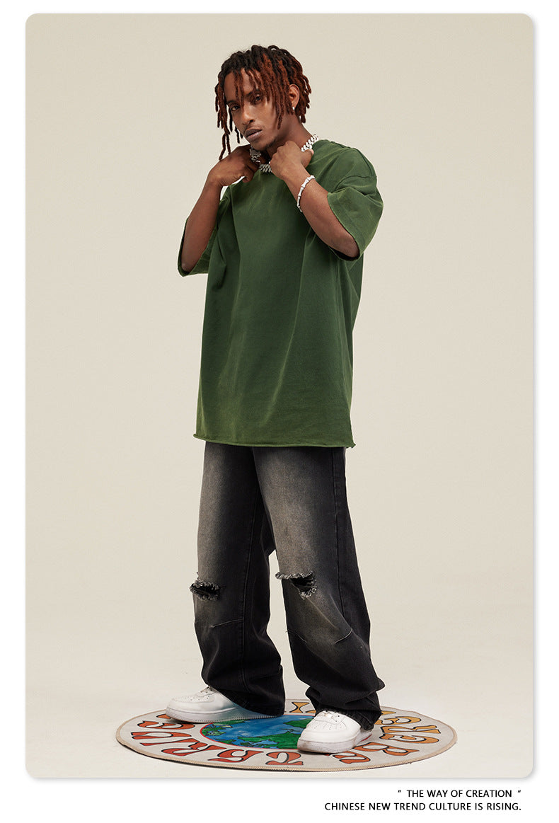 Washed Damage Oversize Short Sleeve T-Shirt WN6068
