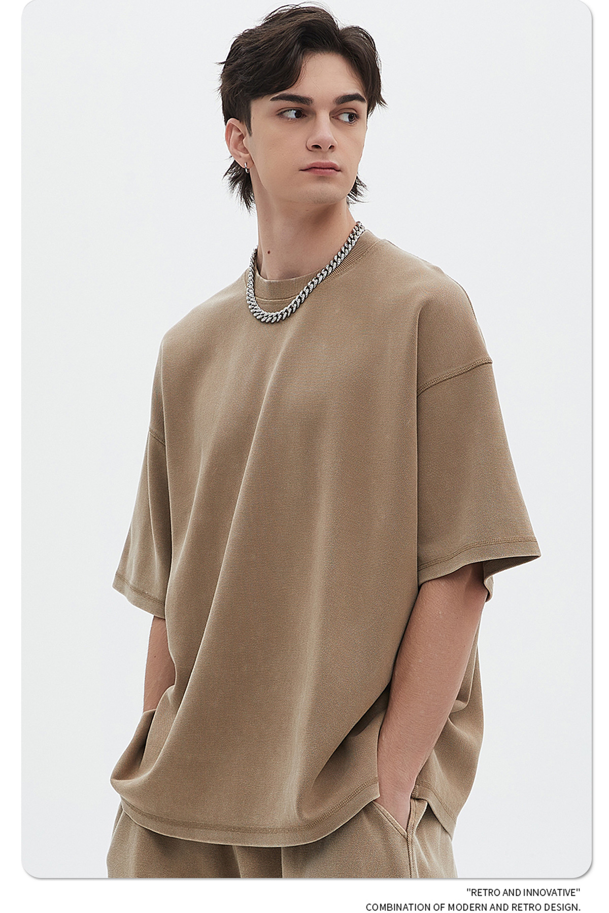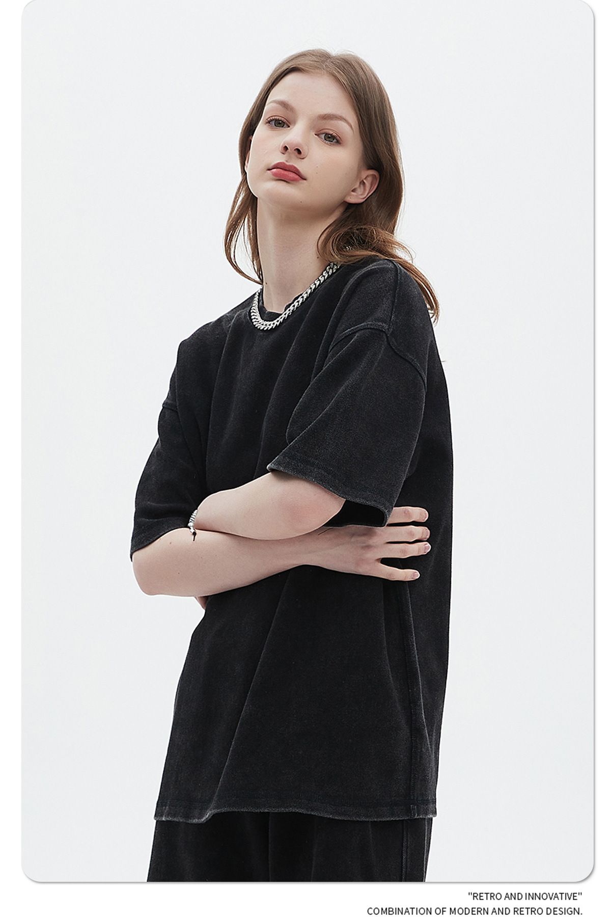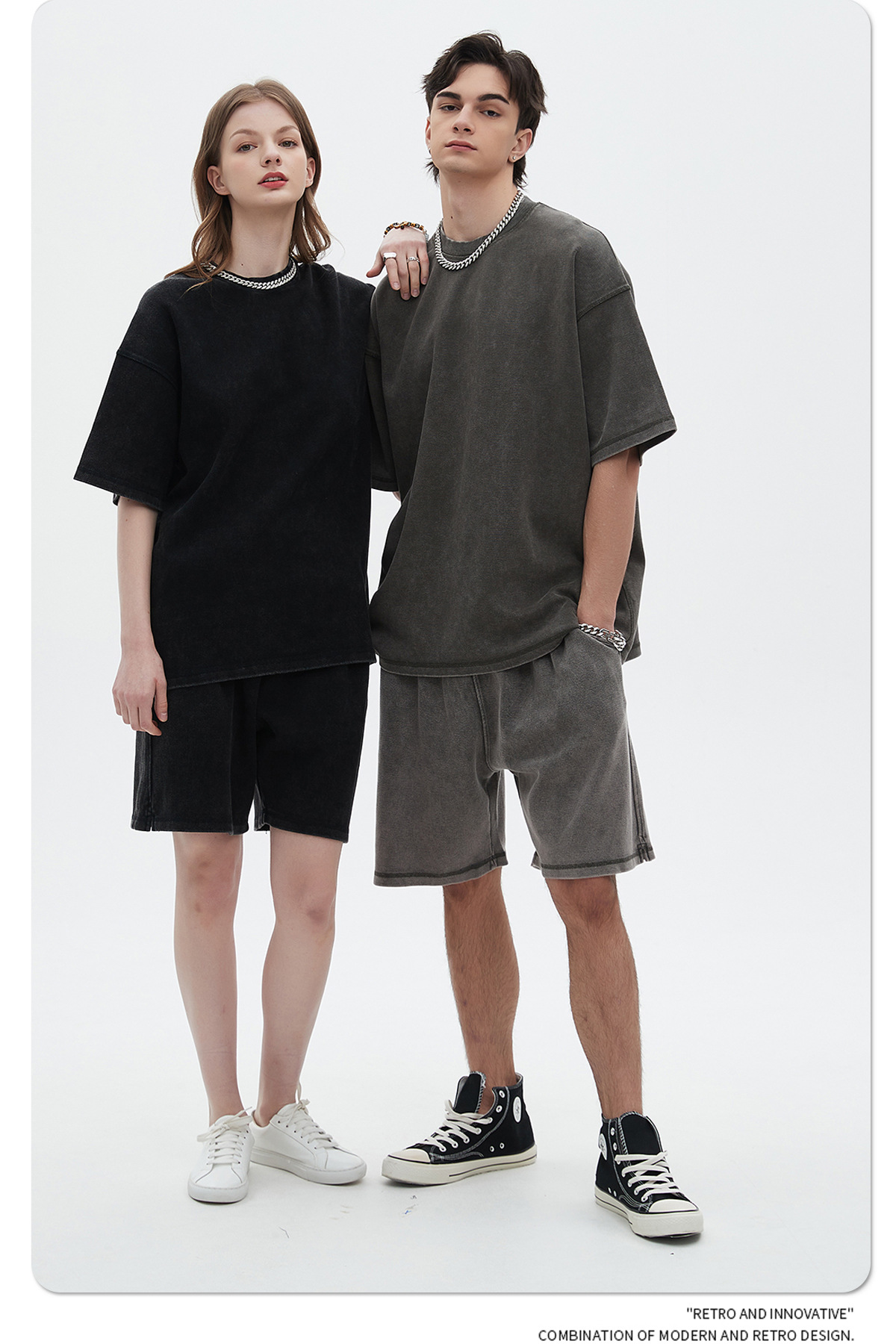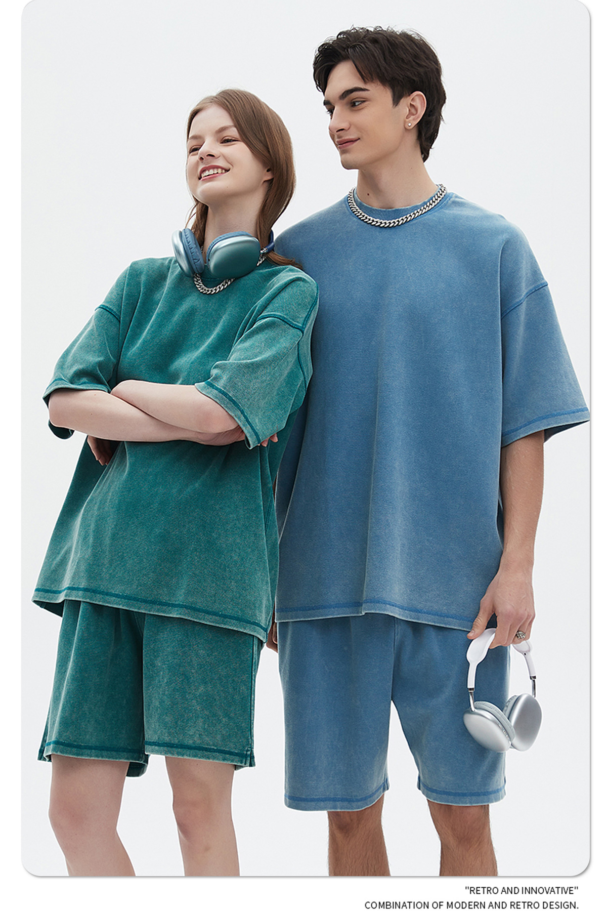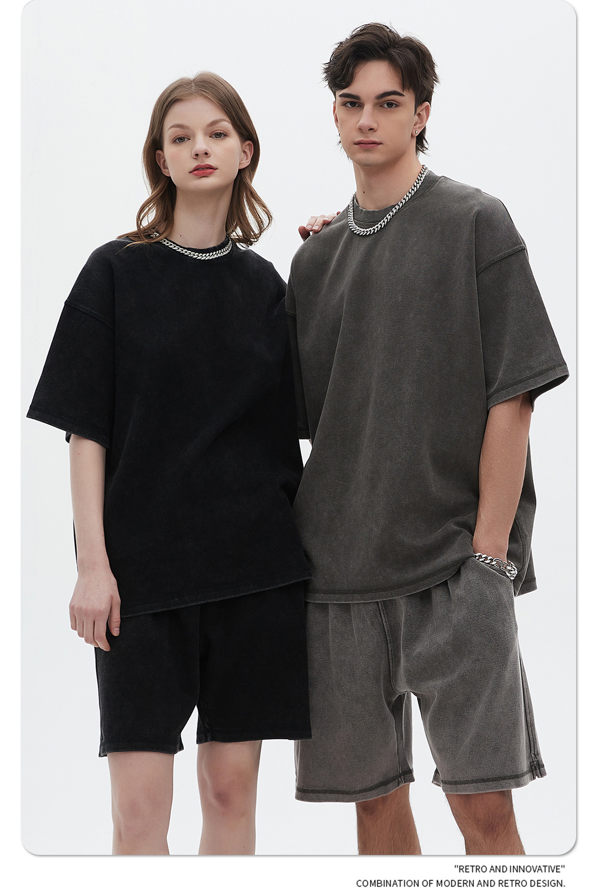Oversize Washed Short-sleeve T-shirt & Washed Short Sweatpants Setup WN6612