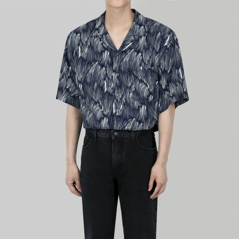 Oversize Floral Full Print Open Collar Shirt WN6794