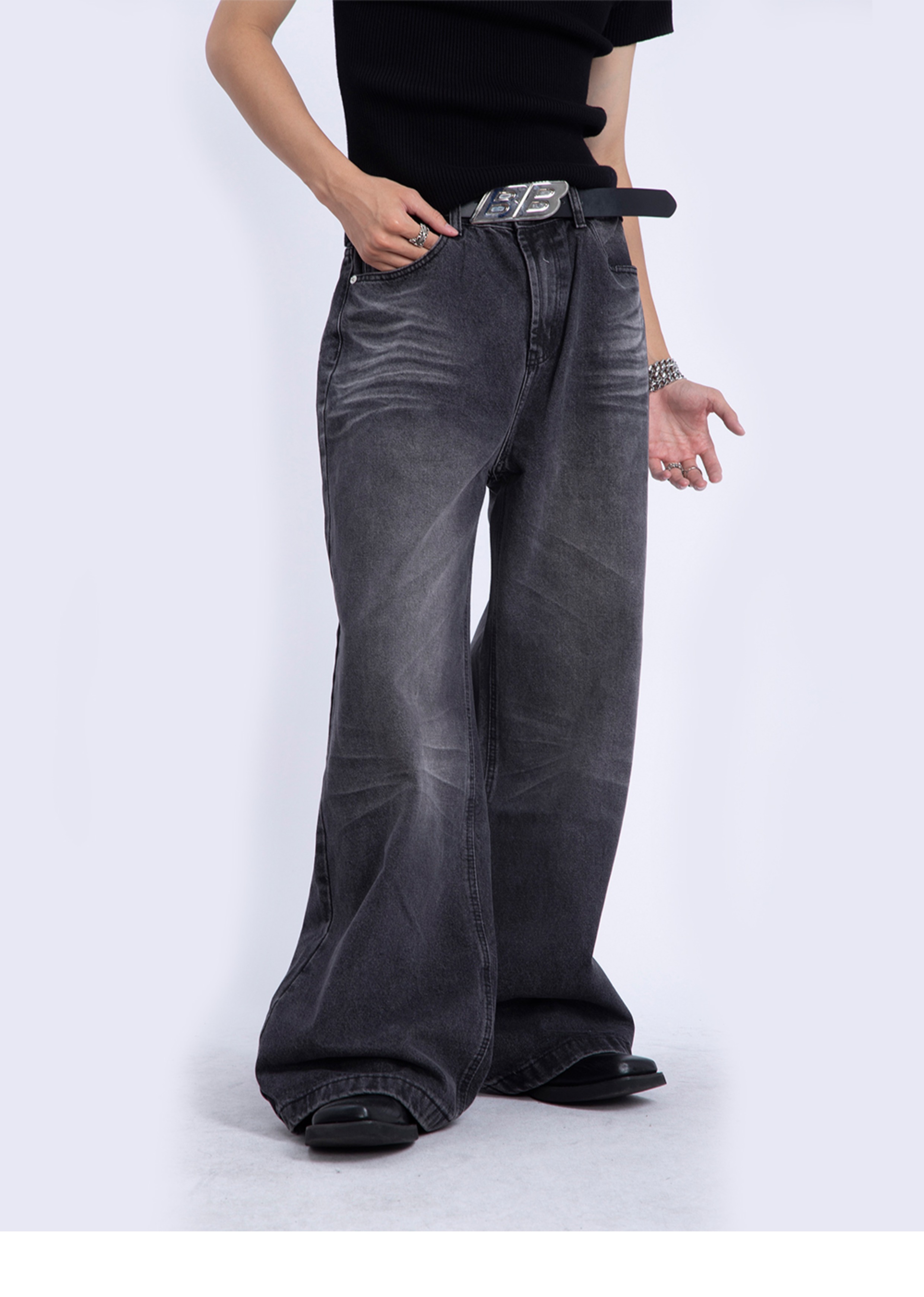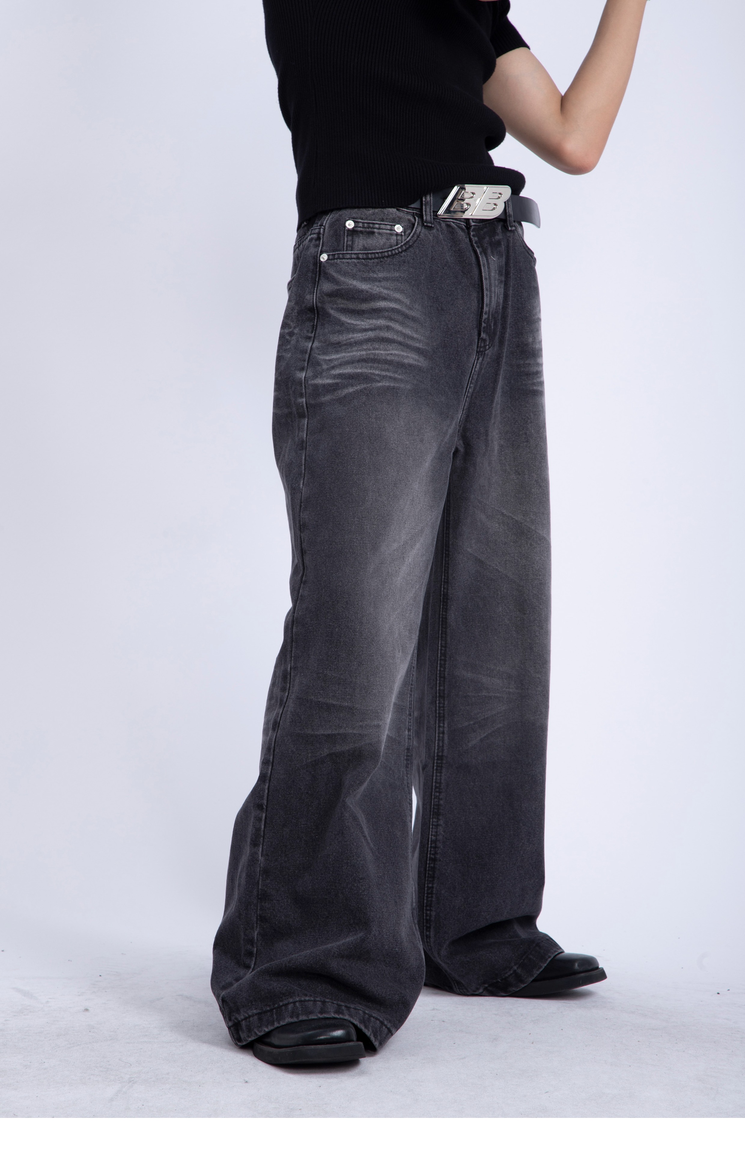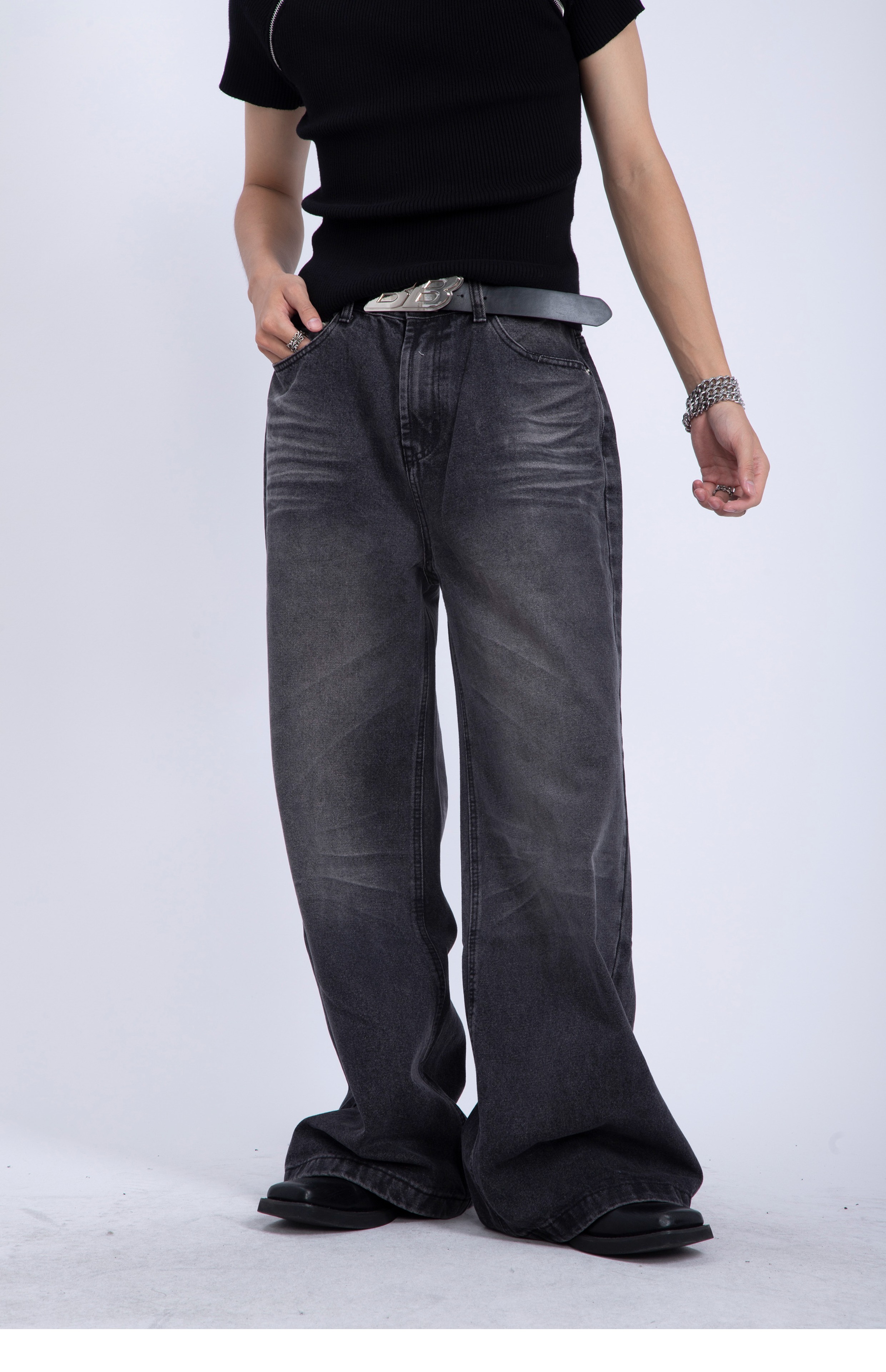 Washed Wide-Leg Straight Denim Jeans WN7277