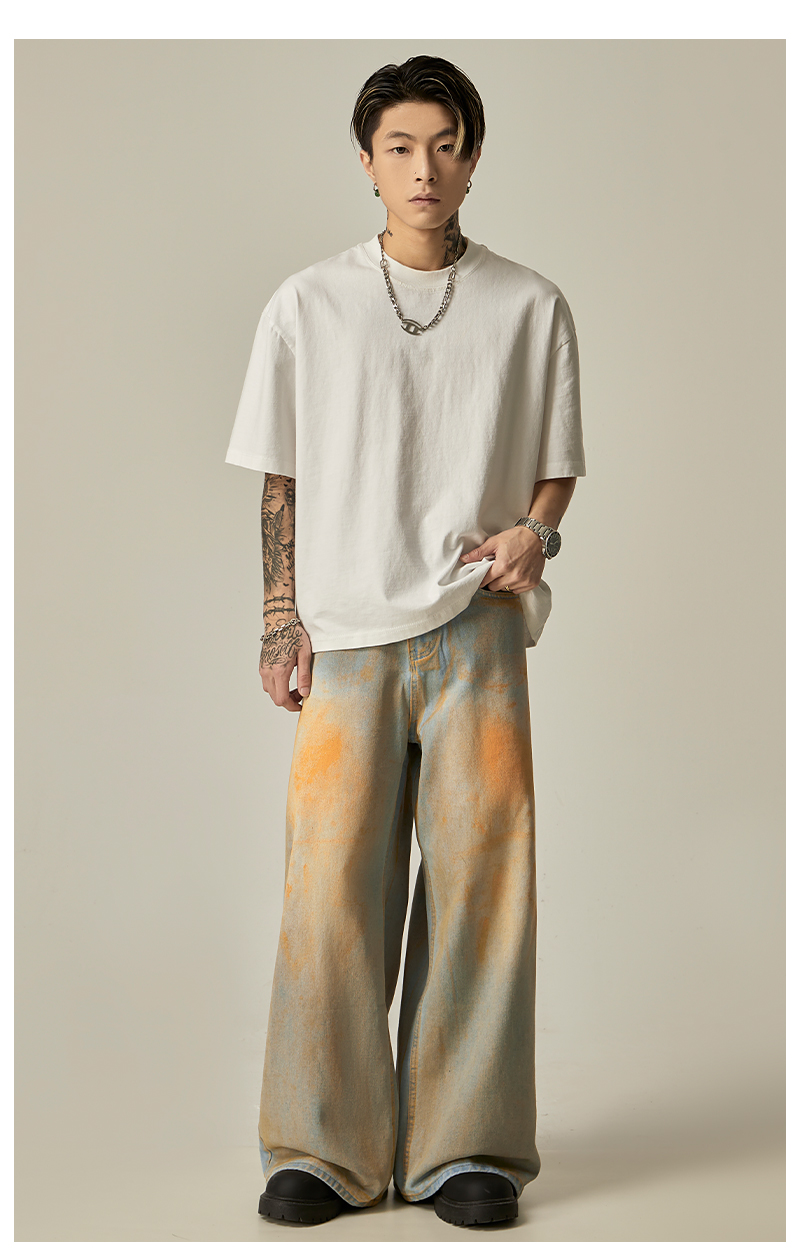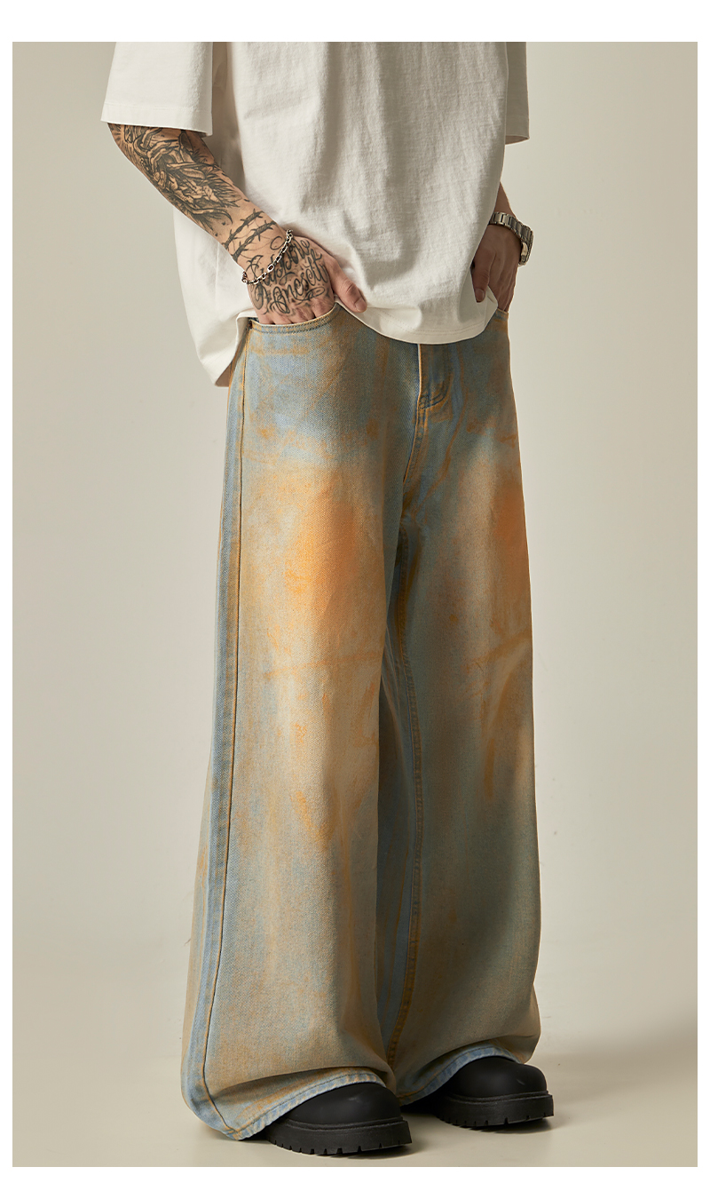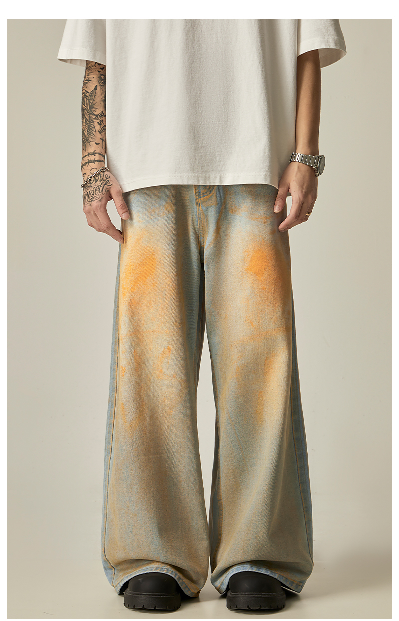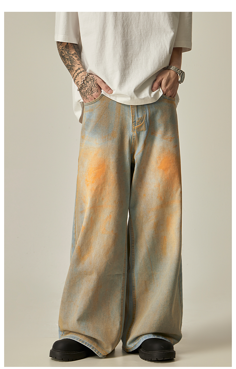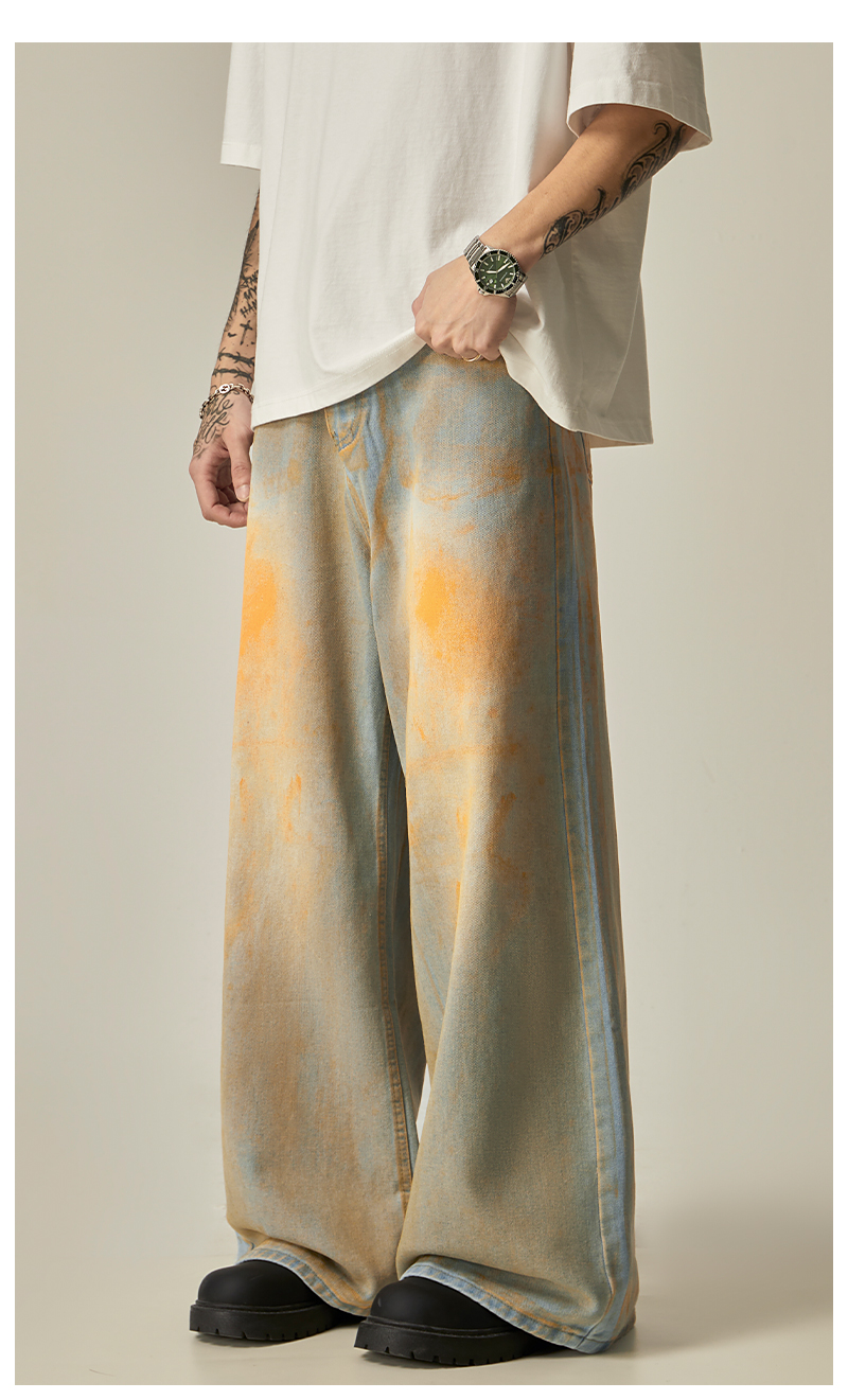 Splash Ink Wide-Leg Straight Denim Jeans WN7765