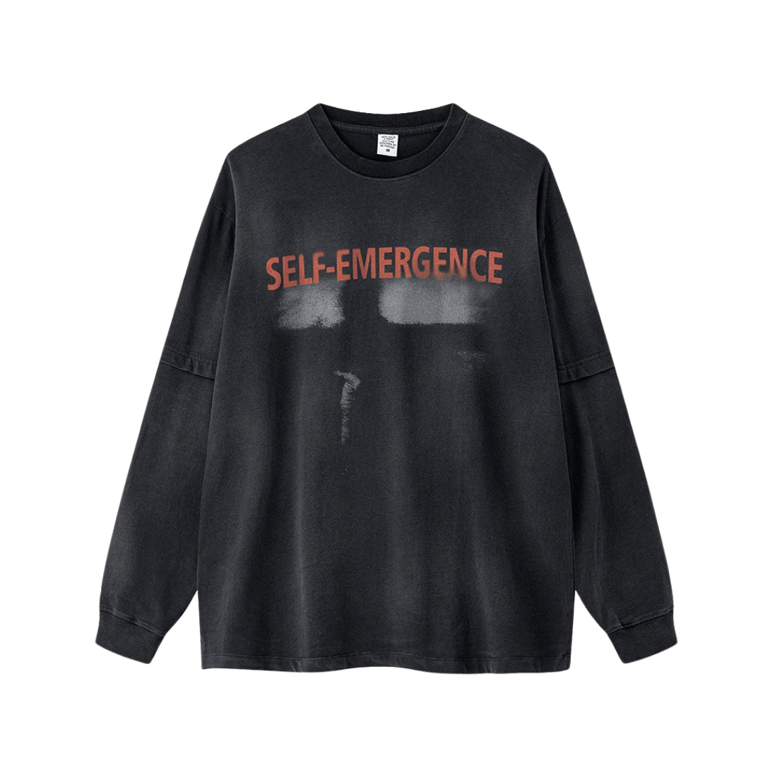Washed Fake Layered Print Long Sleeve T-Shirt WN7823