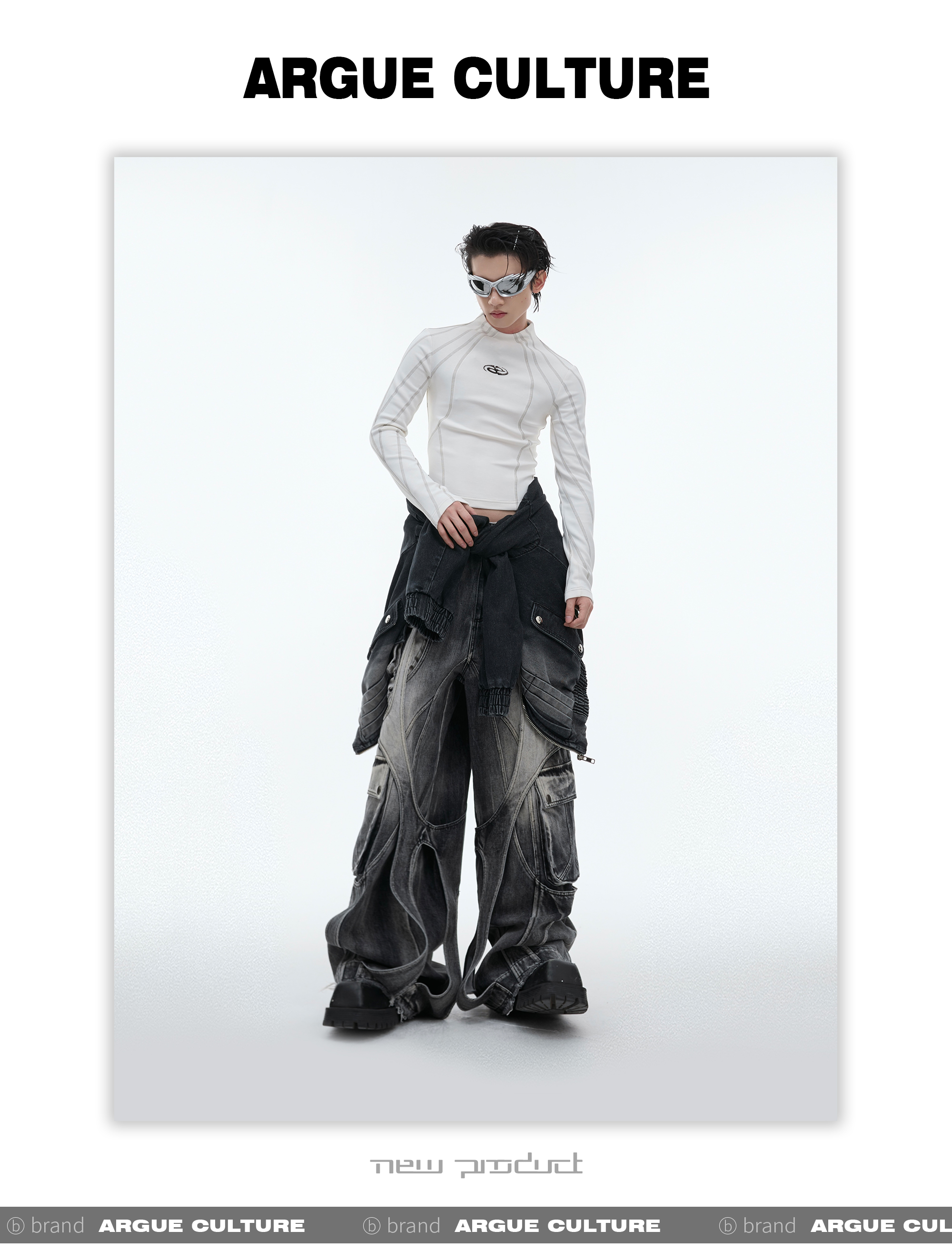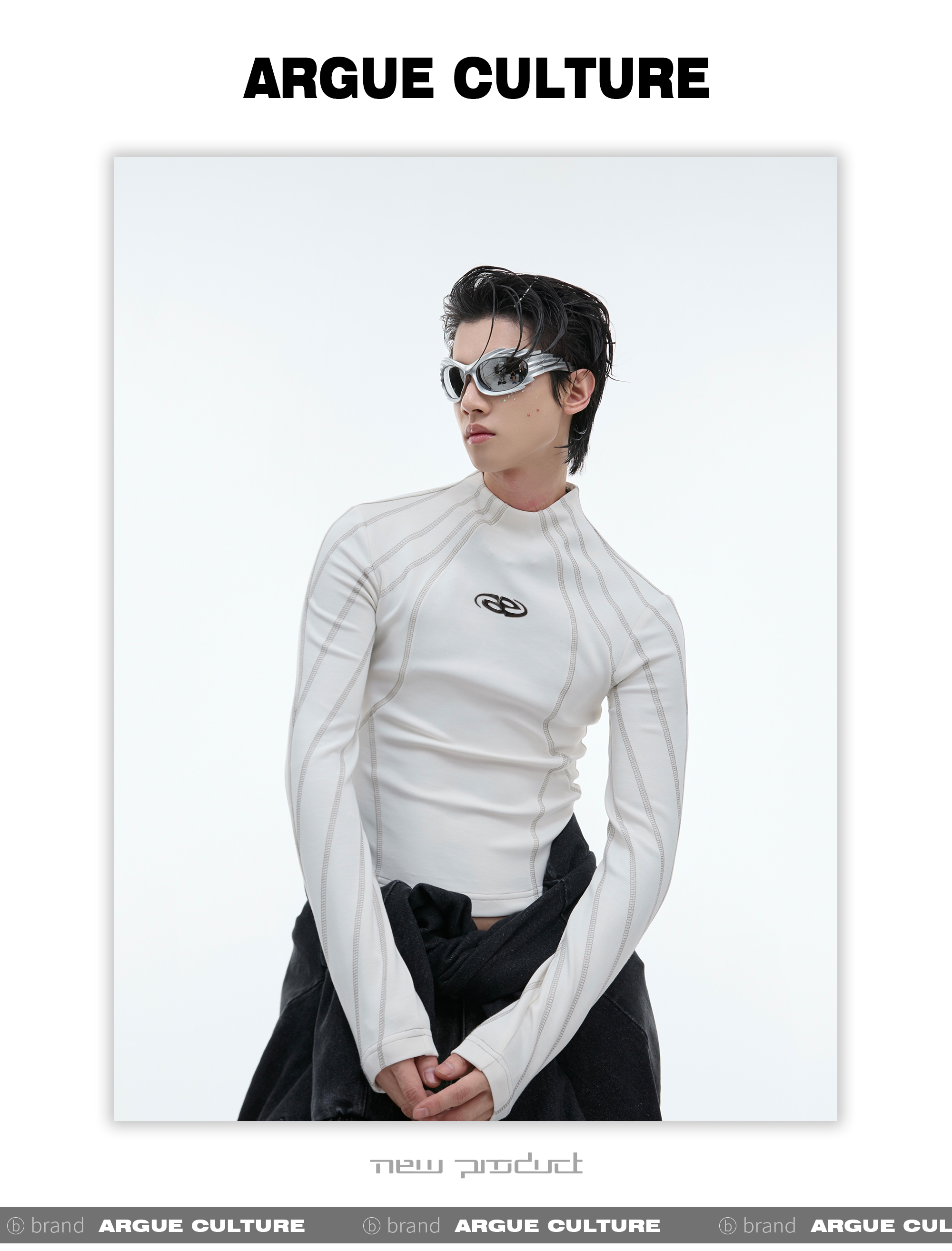 Stand Neck Metal Decoration Slim Fit Long Sleeve T-shirt WN8033