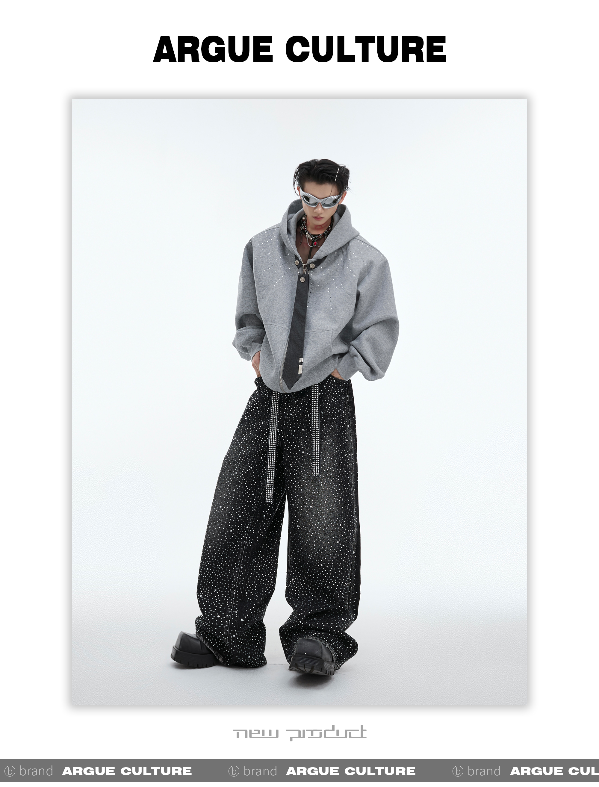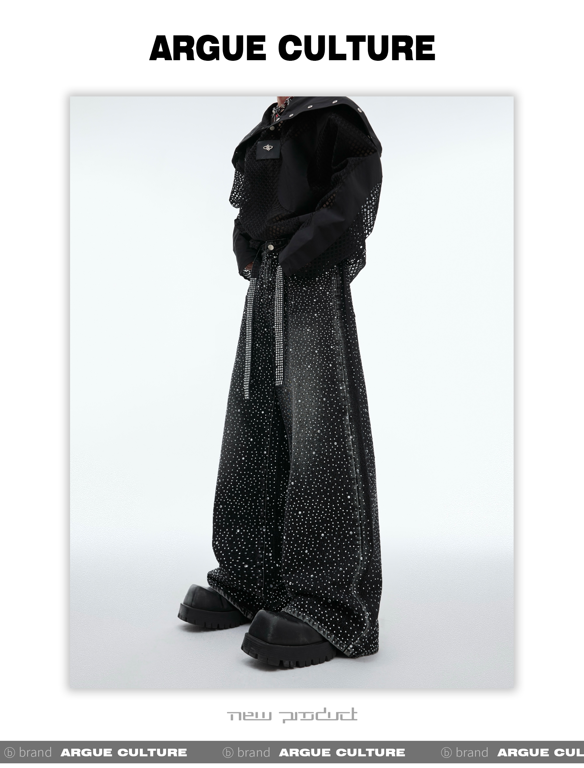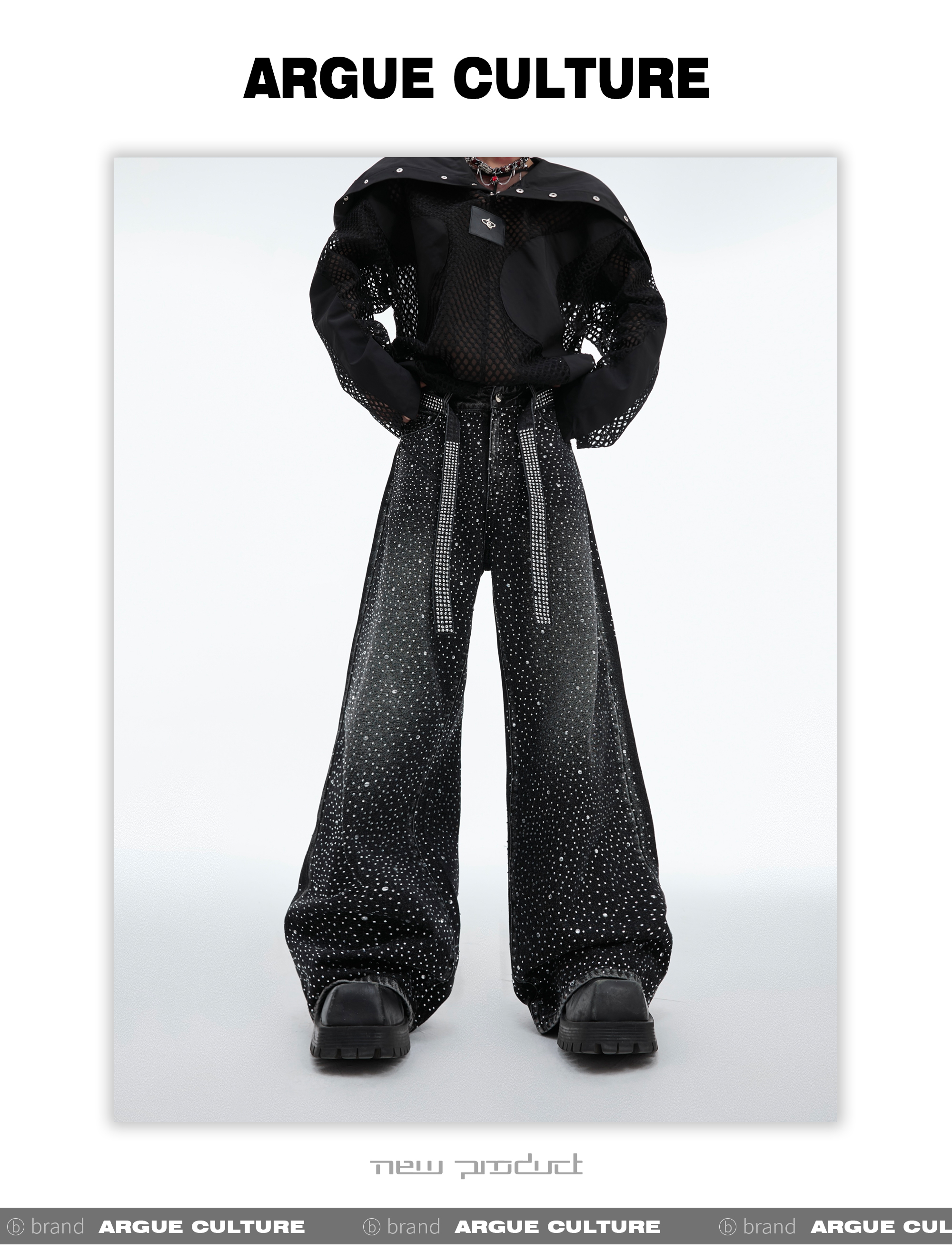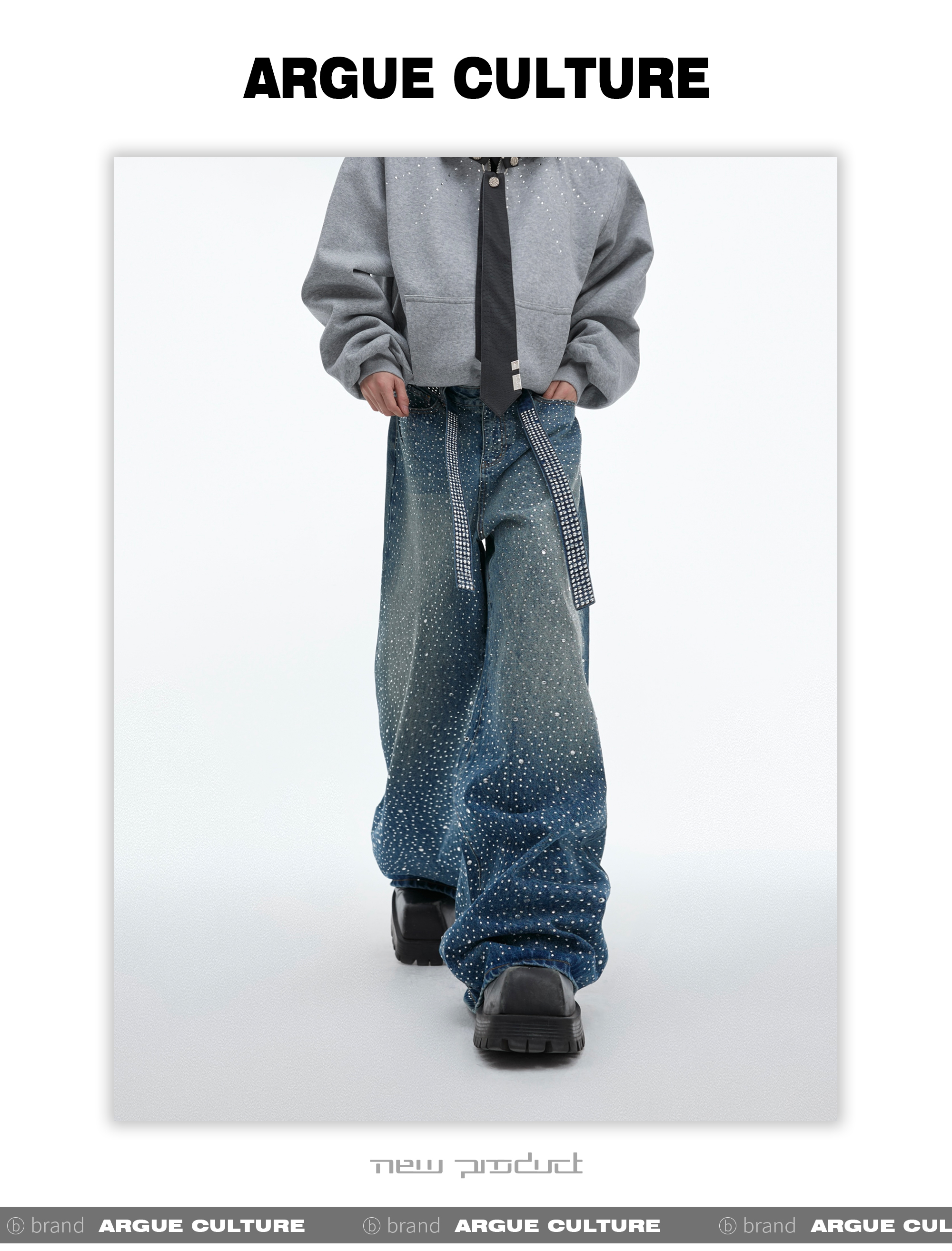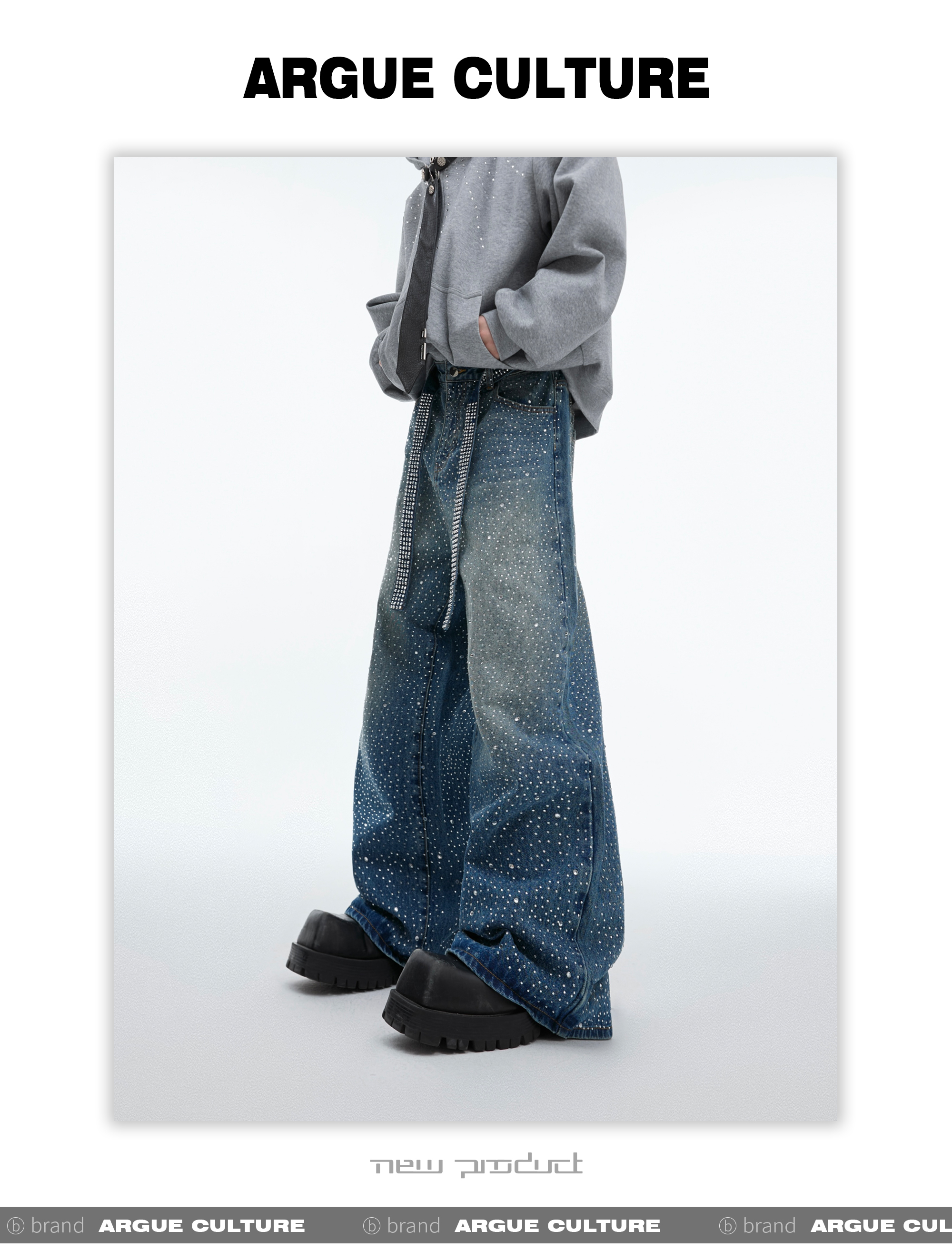 Rinestone Design Wide Leg Denim Jeans WN8037