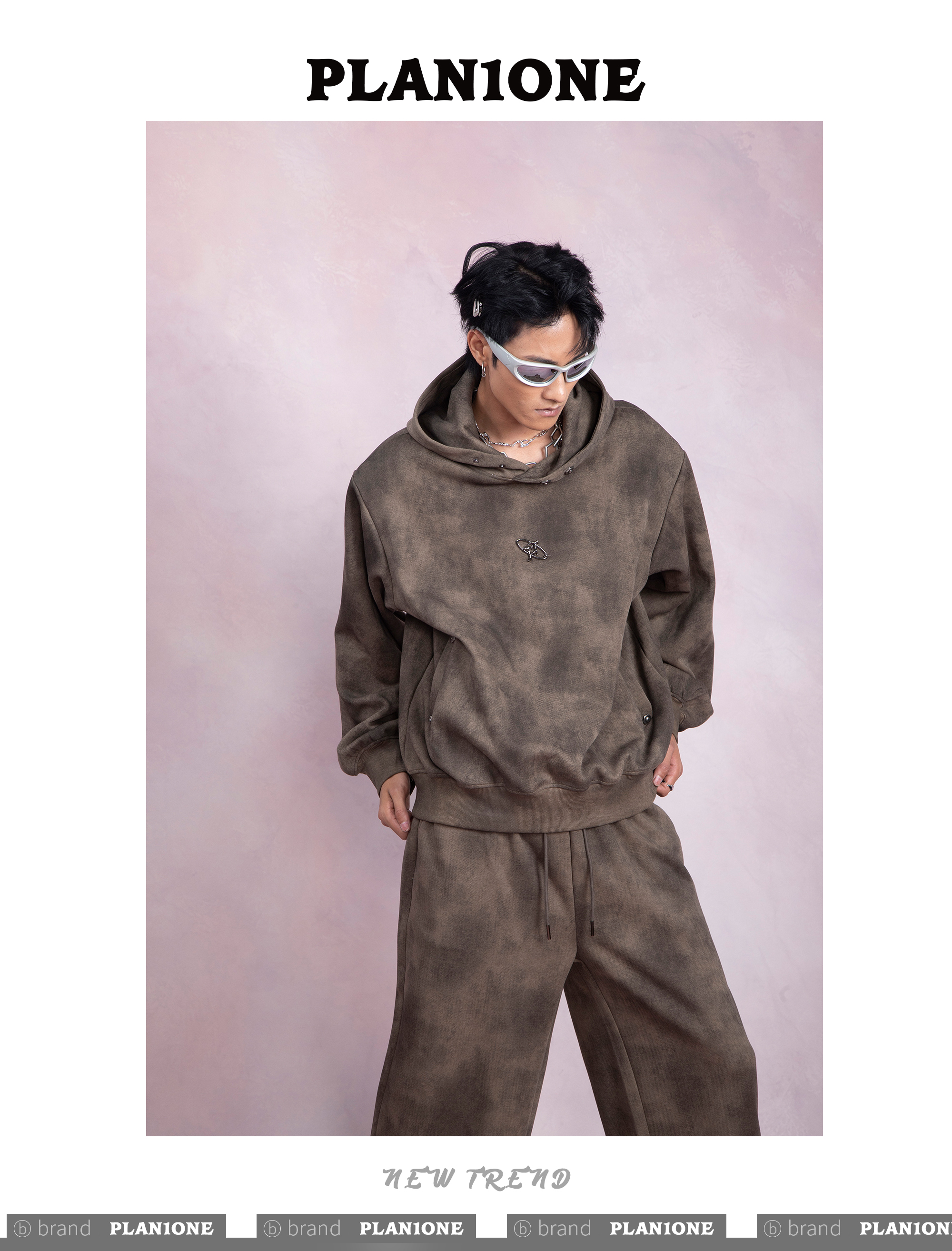Tie-Dye Pullover Hoodie & Wide-Leg Straight Sweatpants Setup WN9247