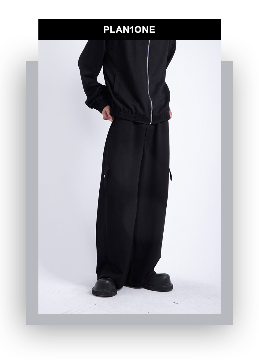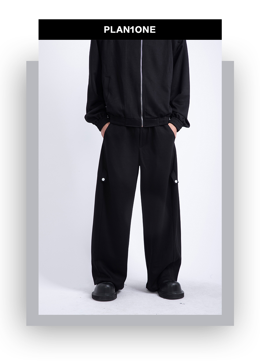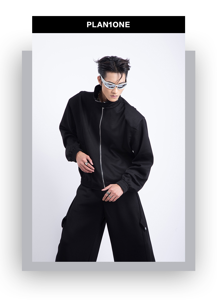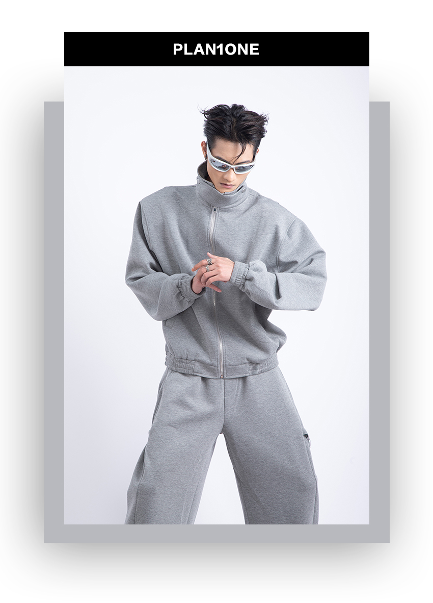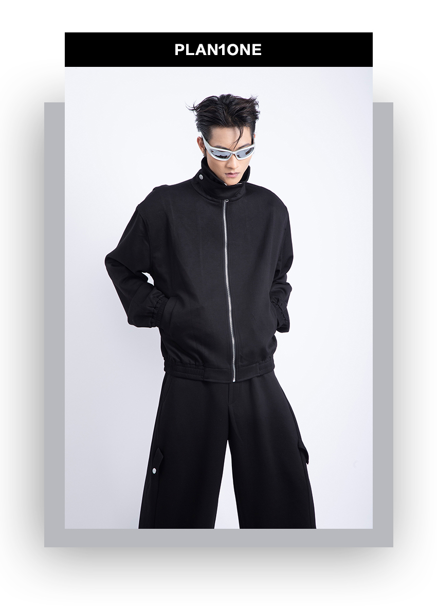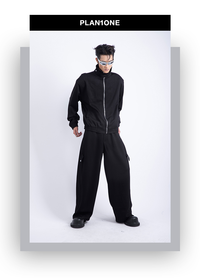 Stand Neck Shoulder Pad Zipper Jacket & Wide Leg Sweatpants Setup WN9259