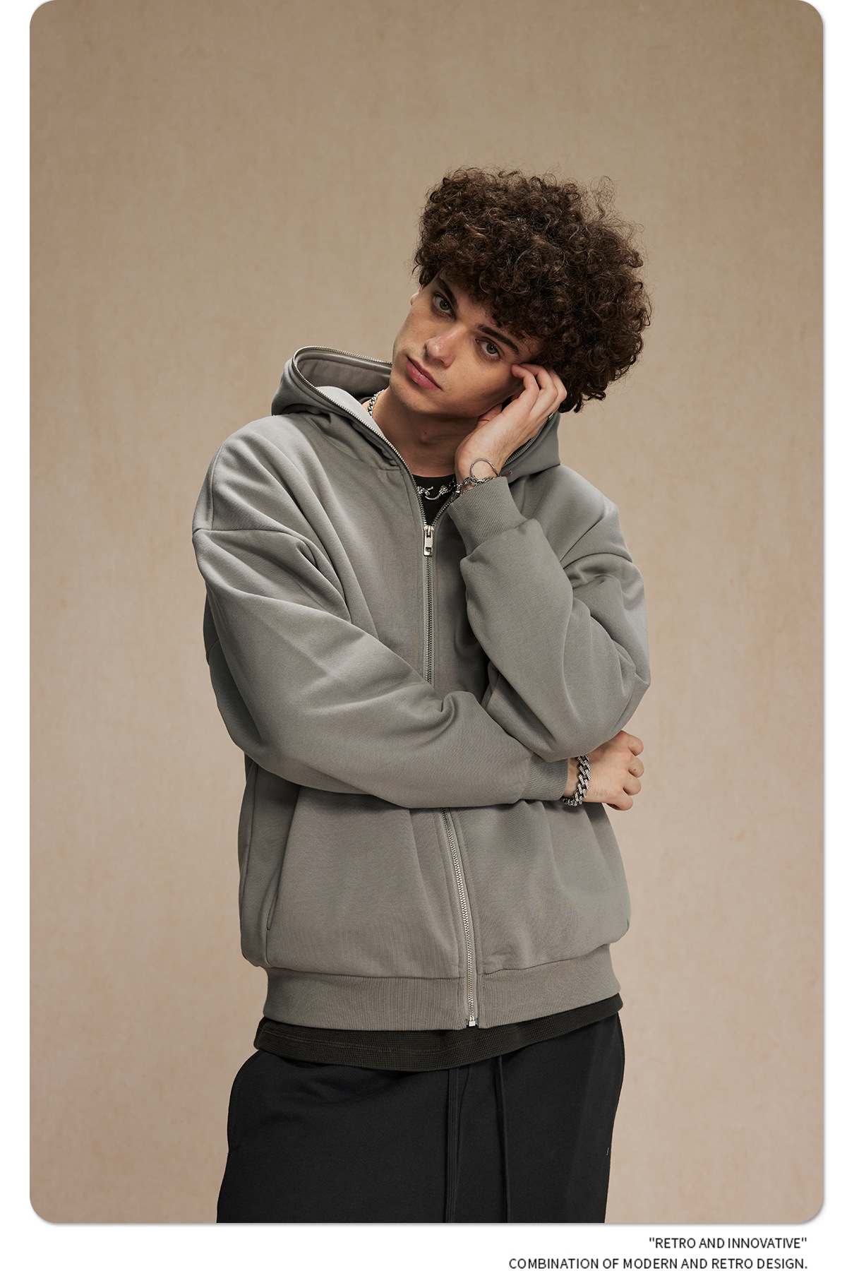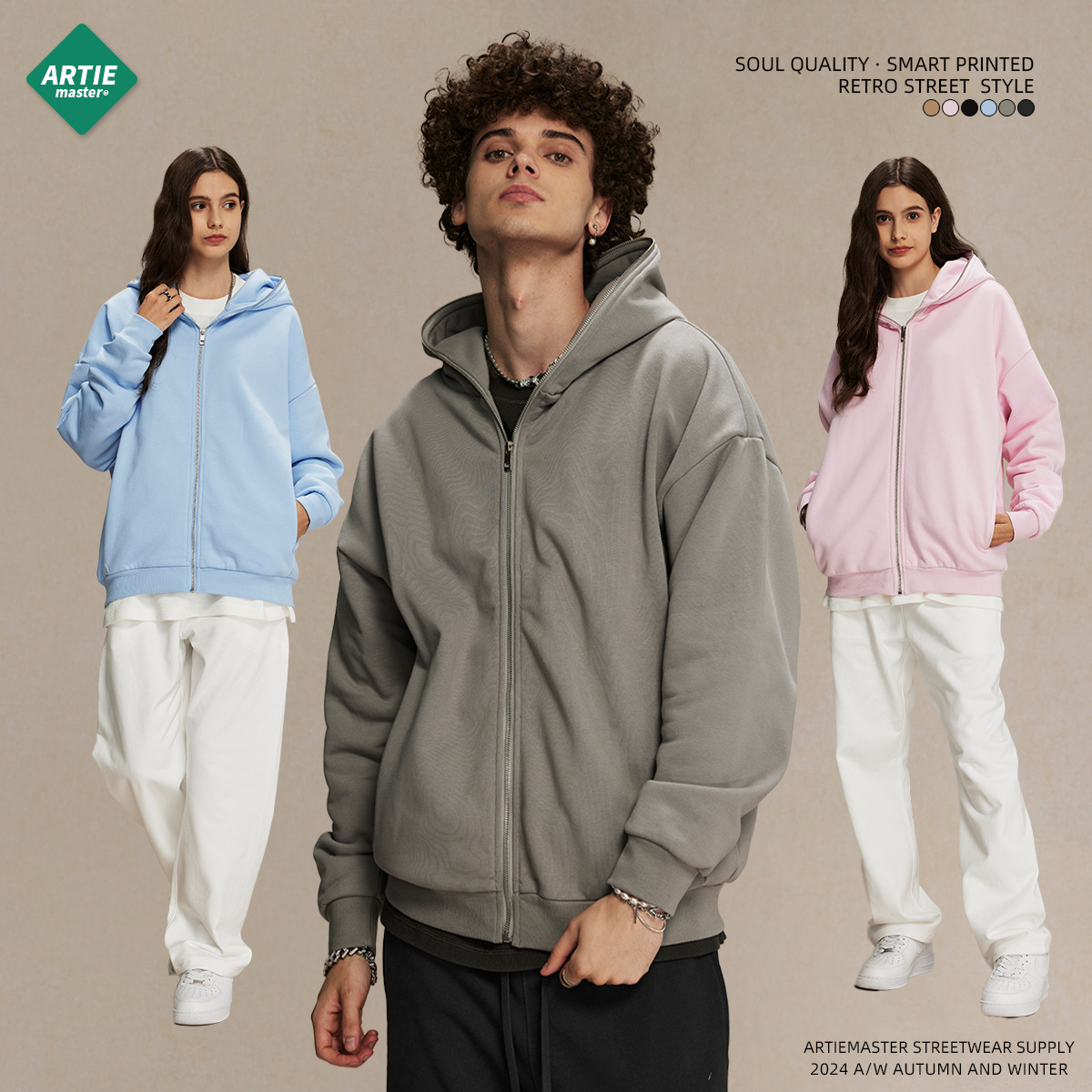Oversize Plain Zipper Hoodie WN9971