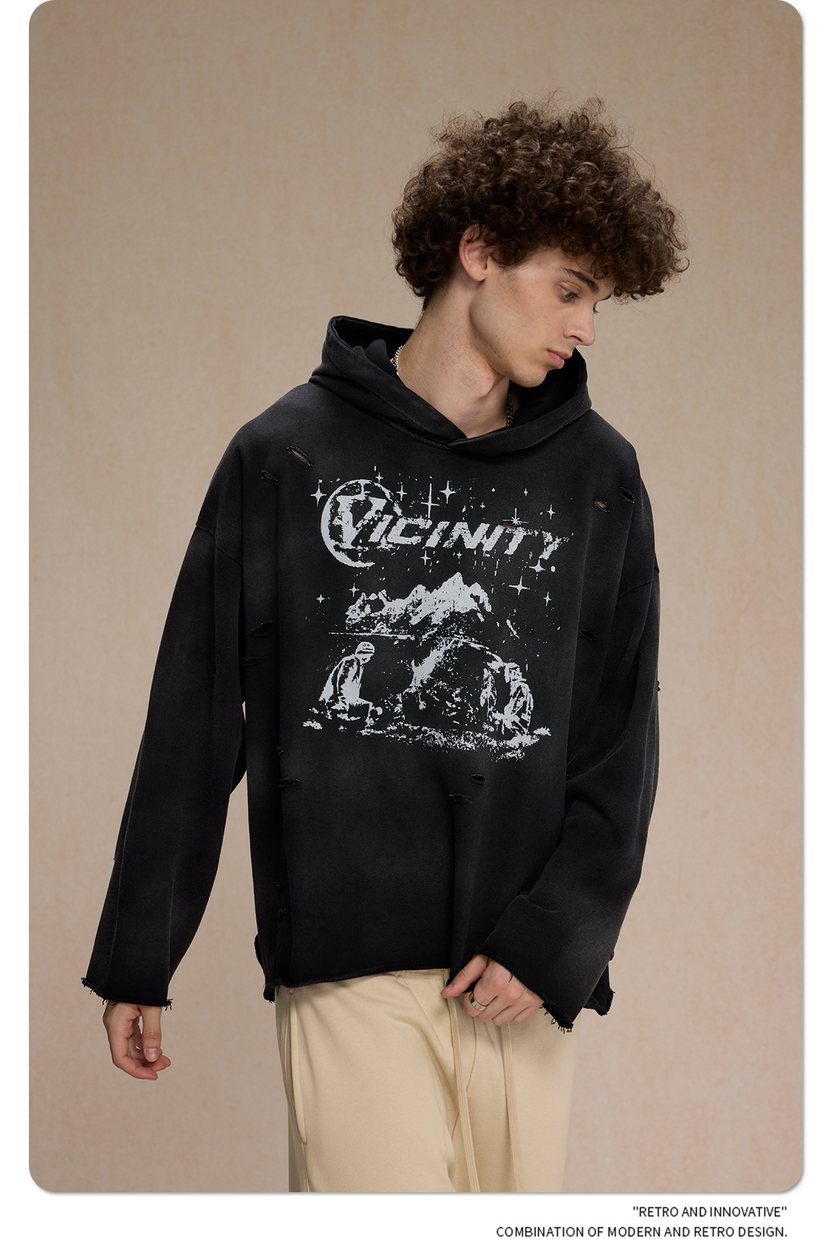 Spray Print Damage Cut0off Pullover Hoodie WN9991