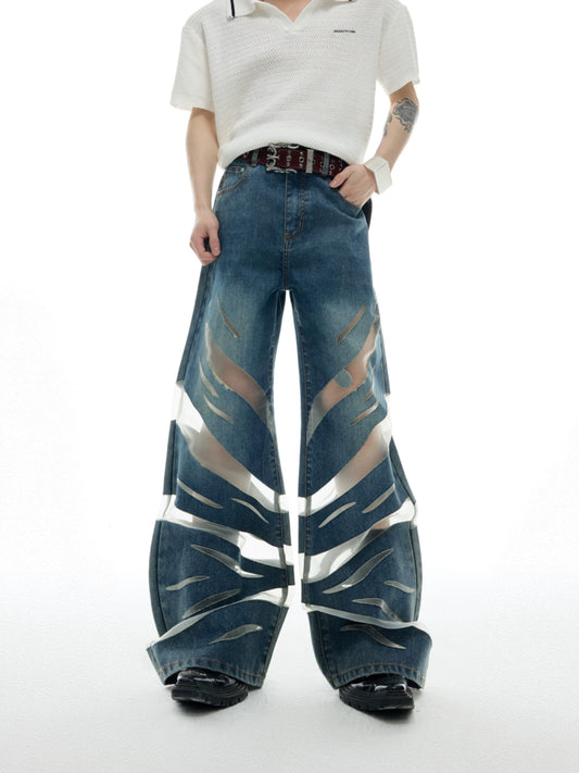 Armor Cross Hollow Out Wide Leg Denim Jeans WN14947