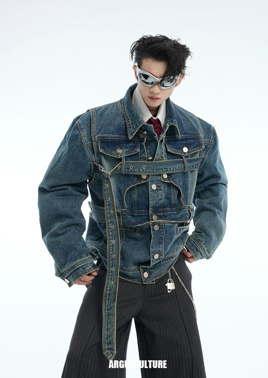 Heavyweight Washed Two-Piece Patchwork Denim Jacket WN14948