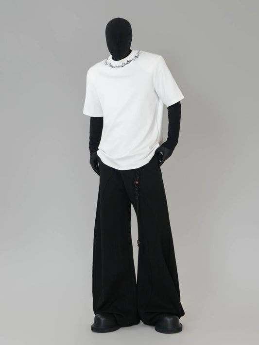 Heavyweight Standing-Neck Short Sleeve T-Shirt & Curved Wide Leg Trousers Setup WN17419