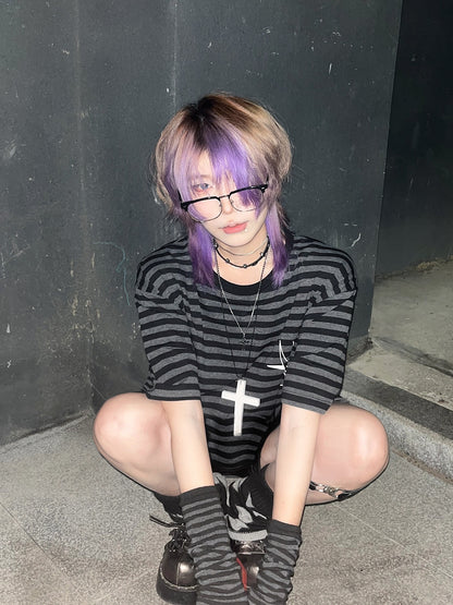 Stripe Tattoo Design Oversize Short Sleeve T-Shirt WN15605