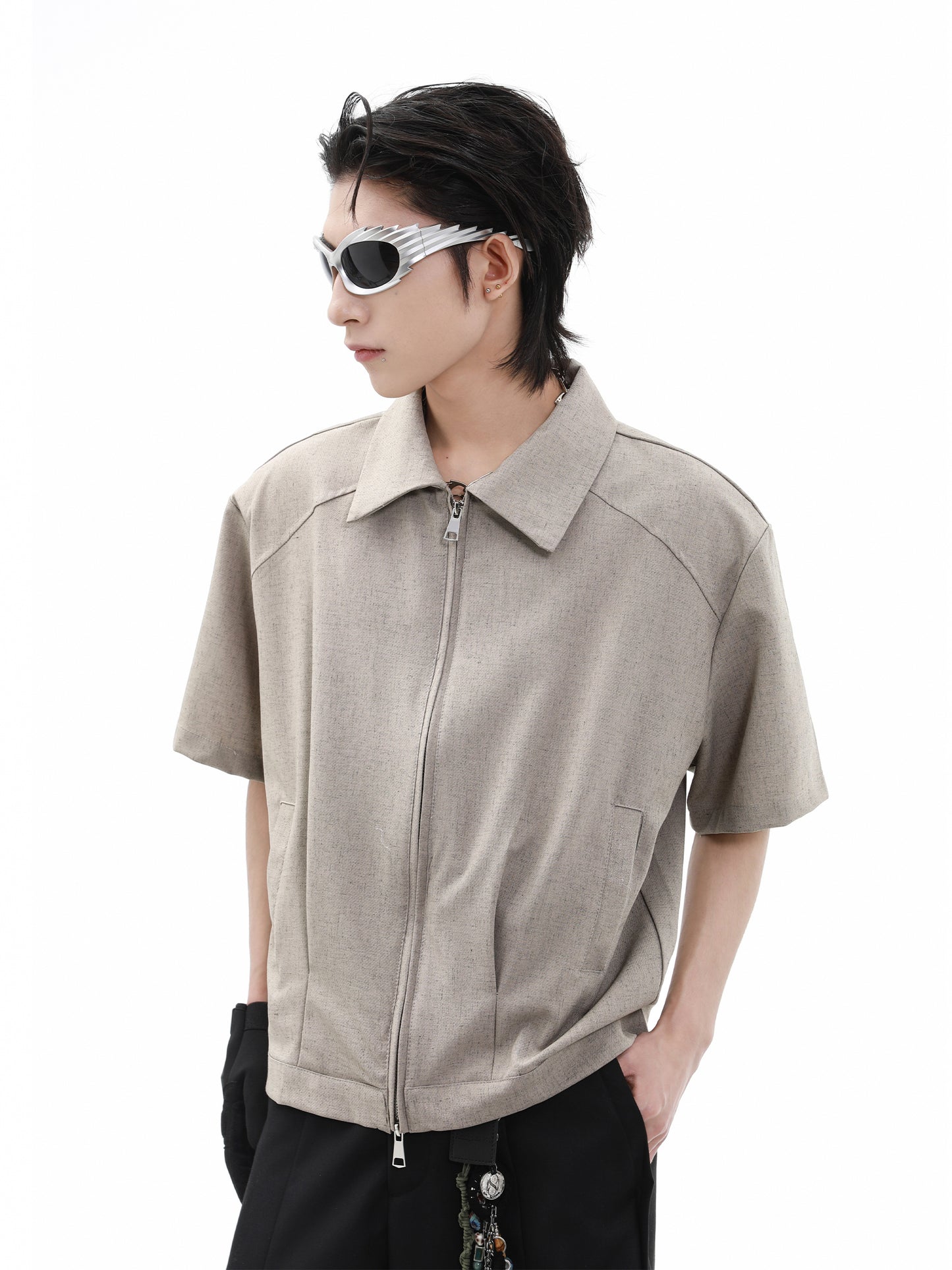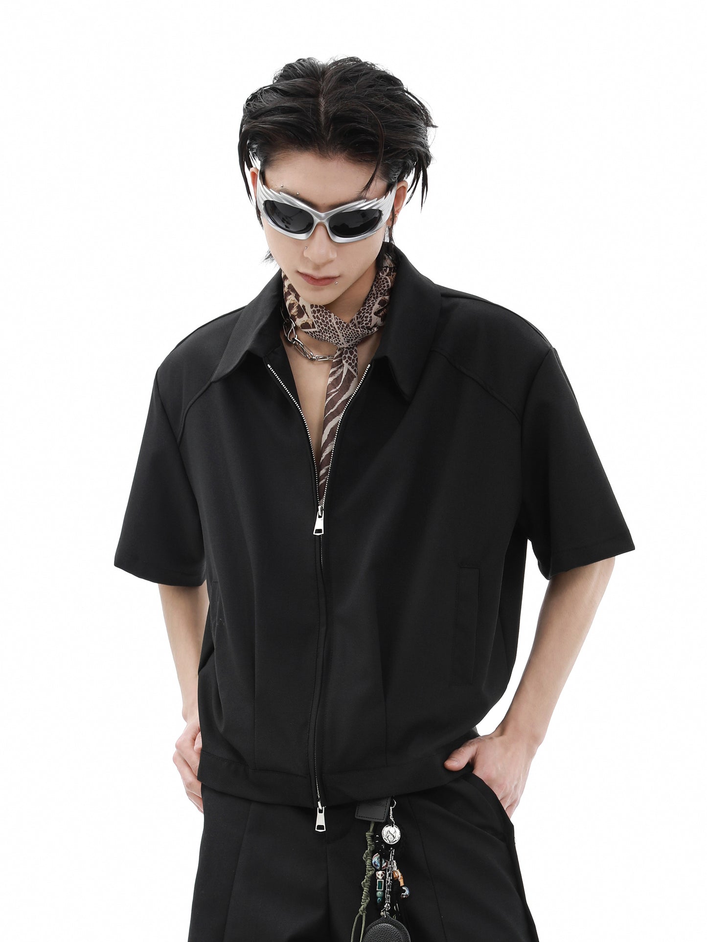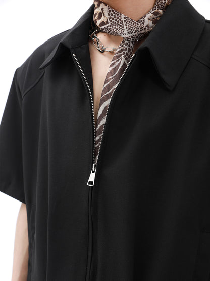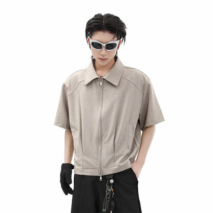 Double Zipper Short Sleeve Shirt Jacket WN15679