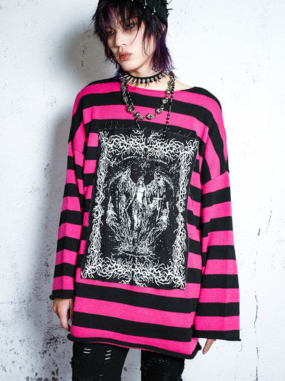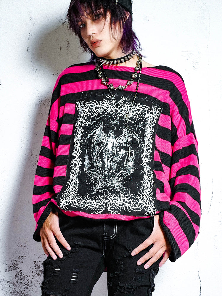 Damage Stripe Patch Oversize Knit Sweater WN15937