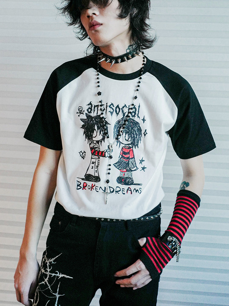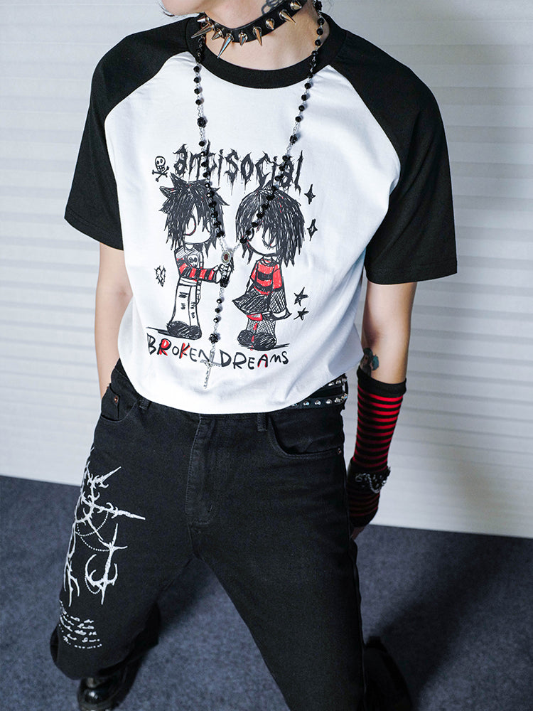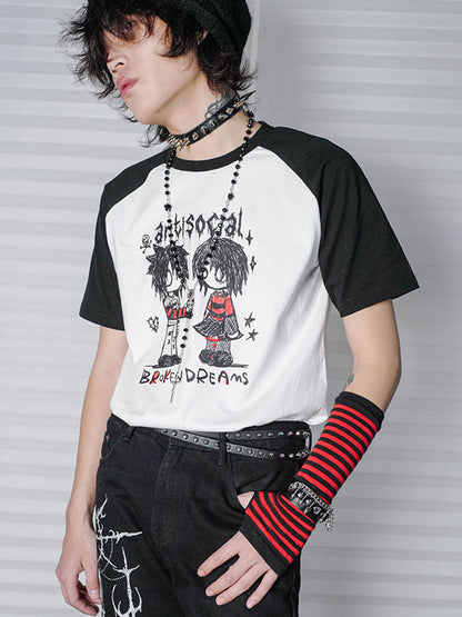 Hand-Drawn Graphic Design Raglan Short Sleeve T-Shirt WN16059