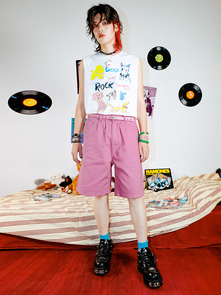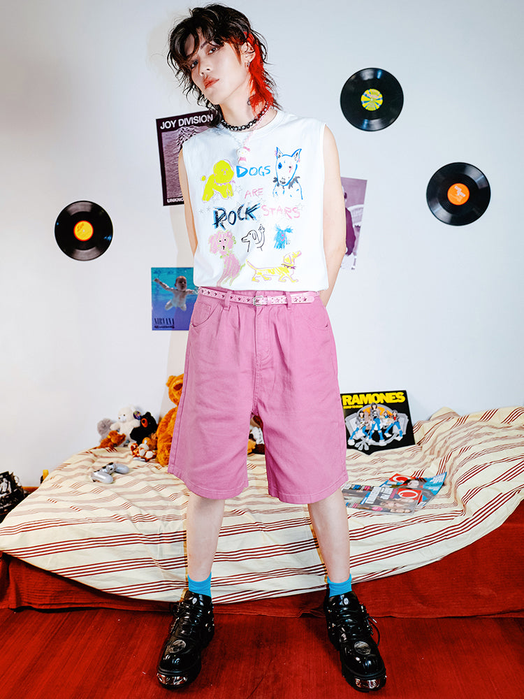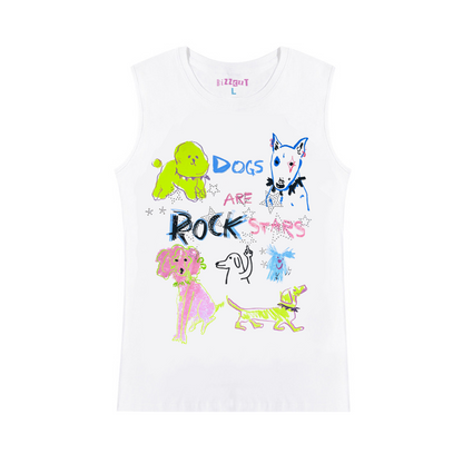 Hand-Drawn Design Rhinestone Detail Sleeveless T-Shirt WN16062