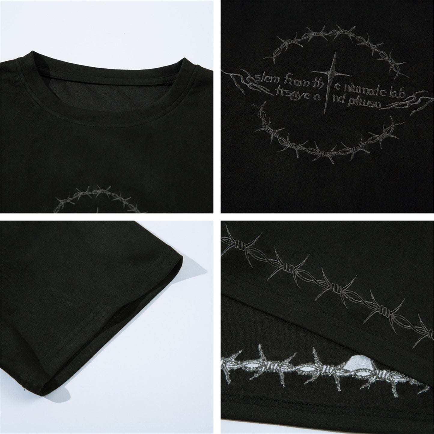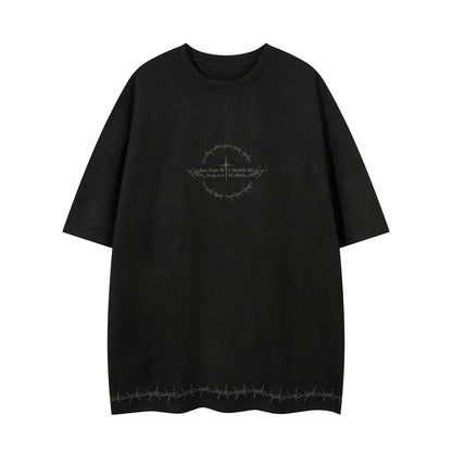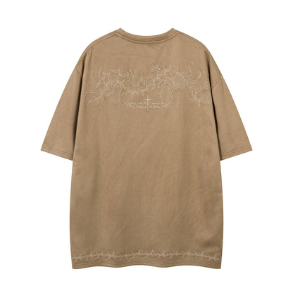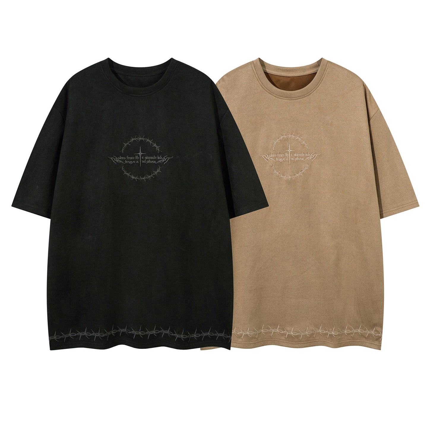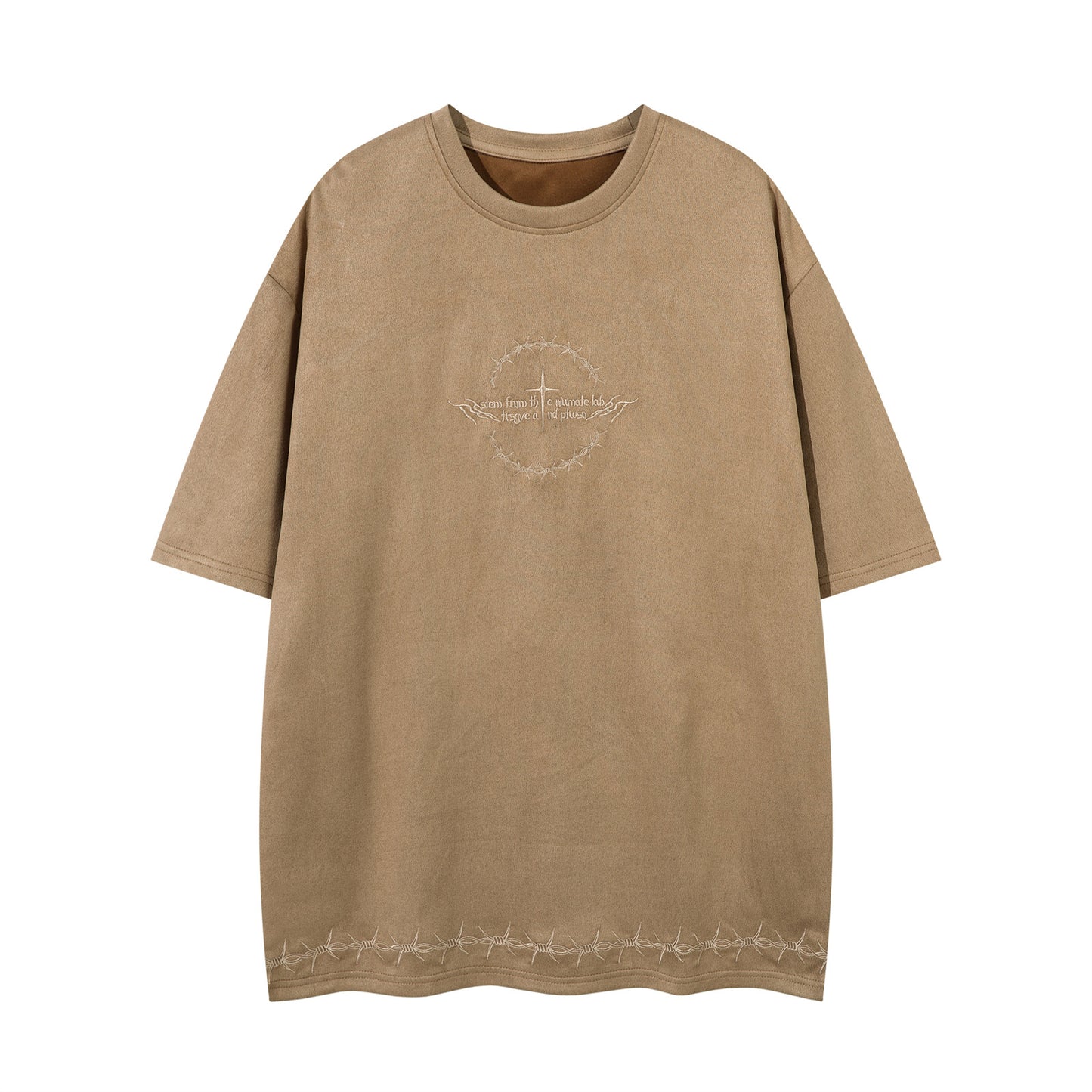 Graphic Embroidery Suede Oversize Short Sleeve T-Shirt WN16218