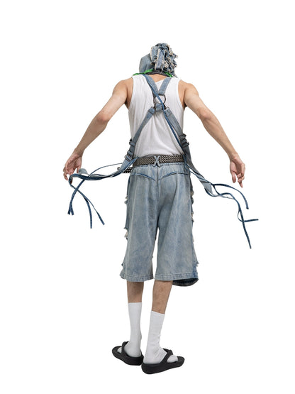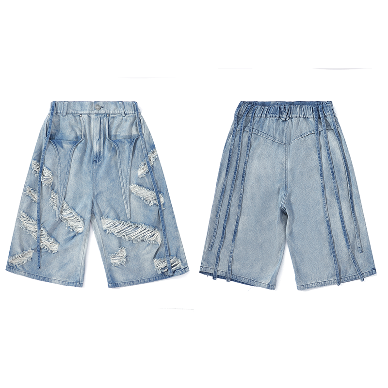 Washed Damage Wide-Leg Straight Denim Half Jeans WN17039