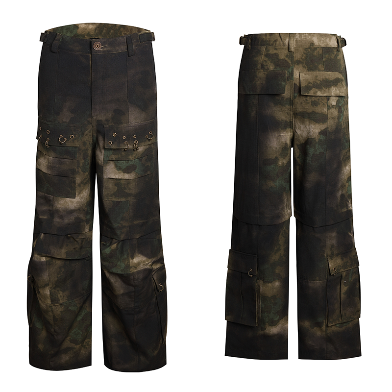 Washed Wide Leg Camouflage Cargo Pants WN17148