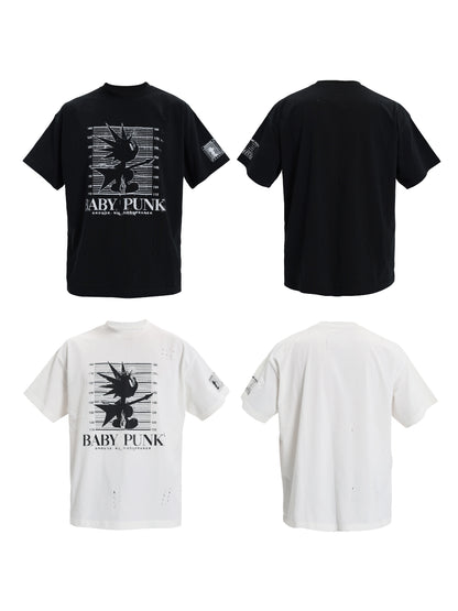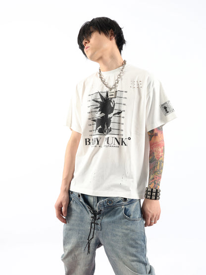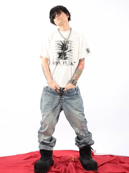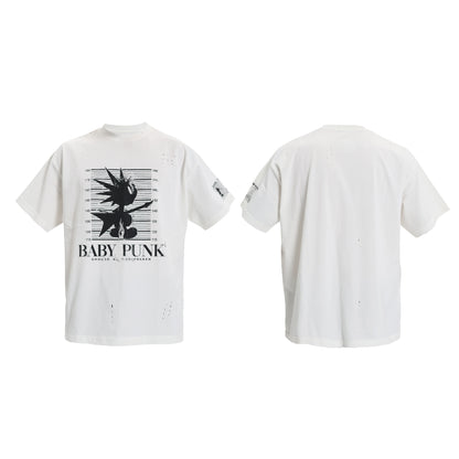 Graphic Design Washed Damage Short Sleeve T-Shirt WN17217