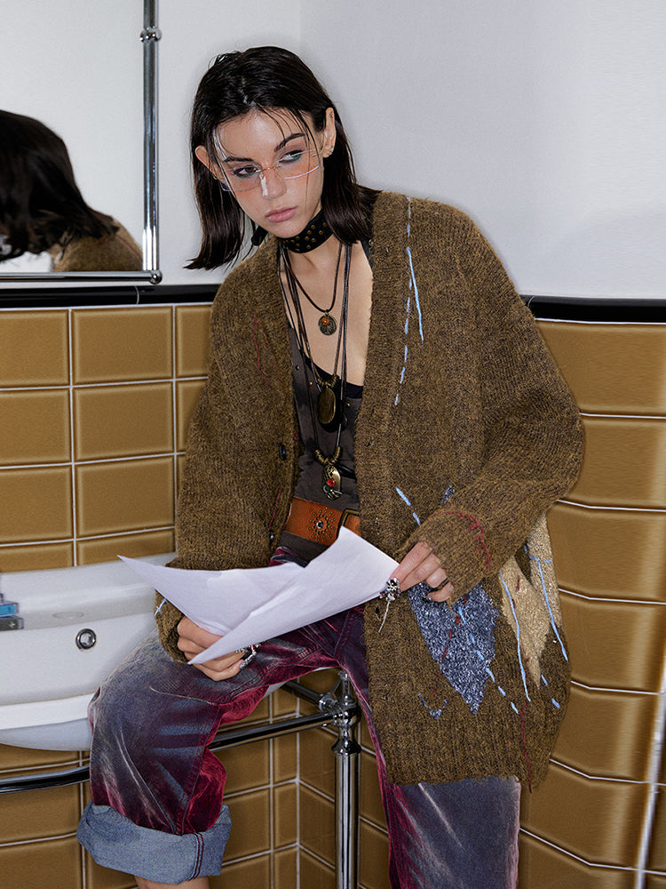 Color Block Argyle Tassel Knit Cardigan WN17795