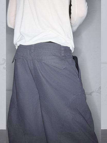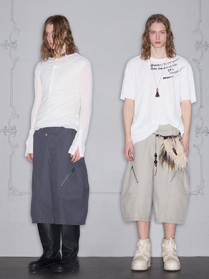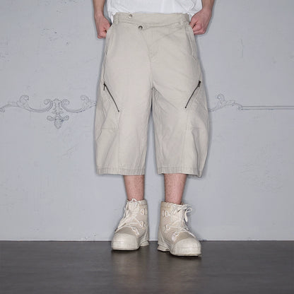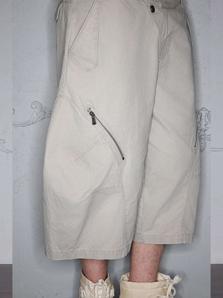 Asymmetrical Functional Deconstructed Curved Hem Cargo Half Pants WN18001