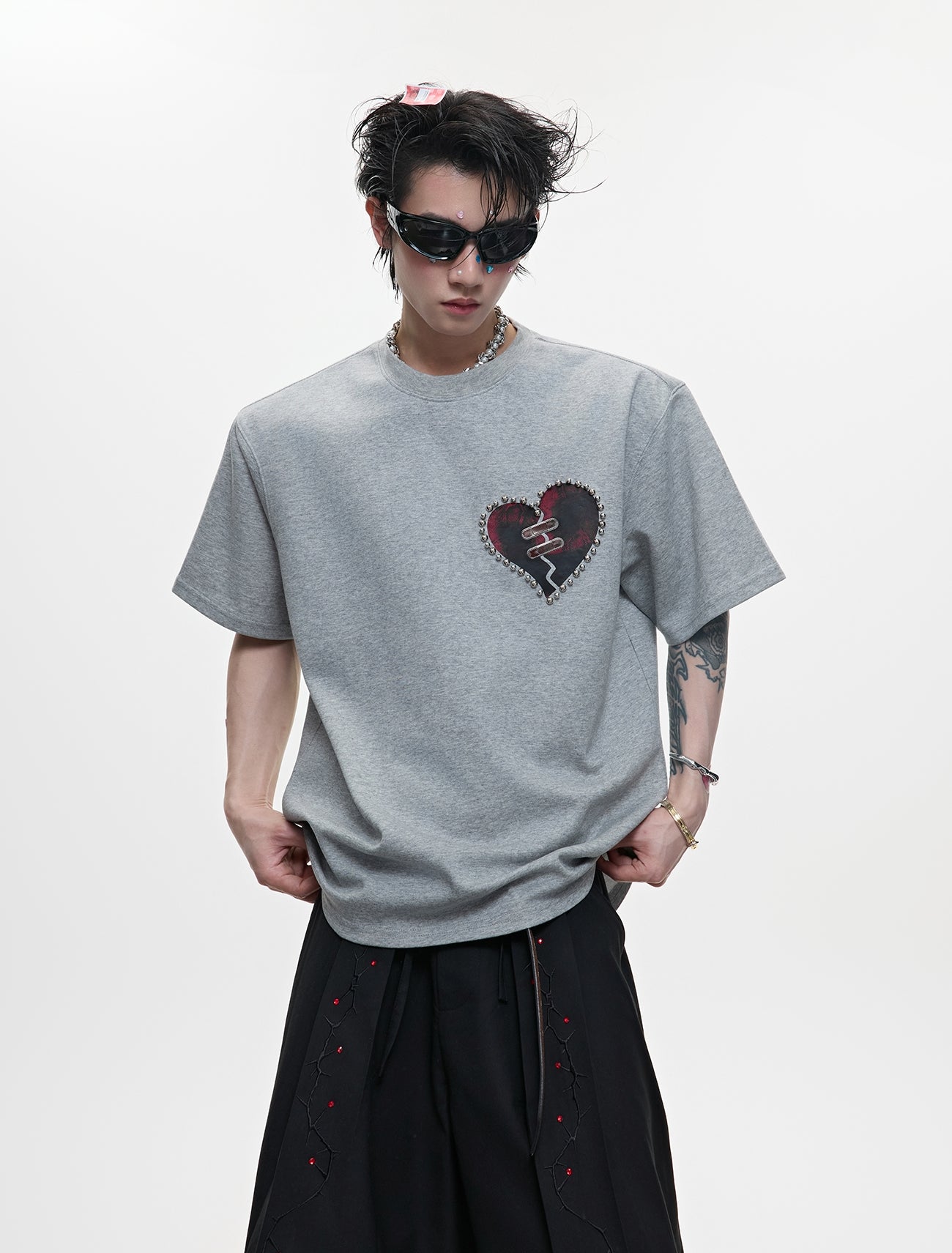 Metal Bead Heart Crack Short Sleeve T-Shirt WN18378