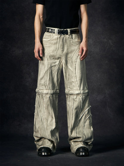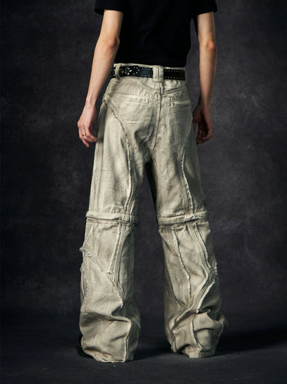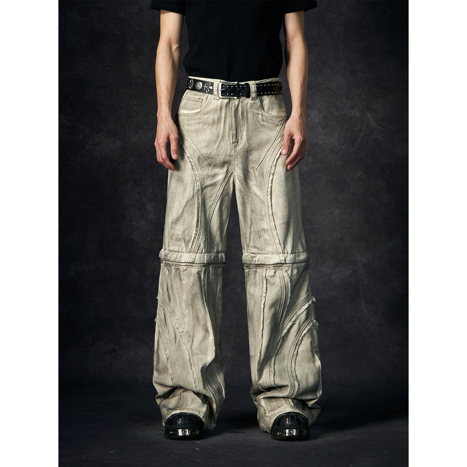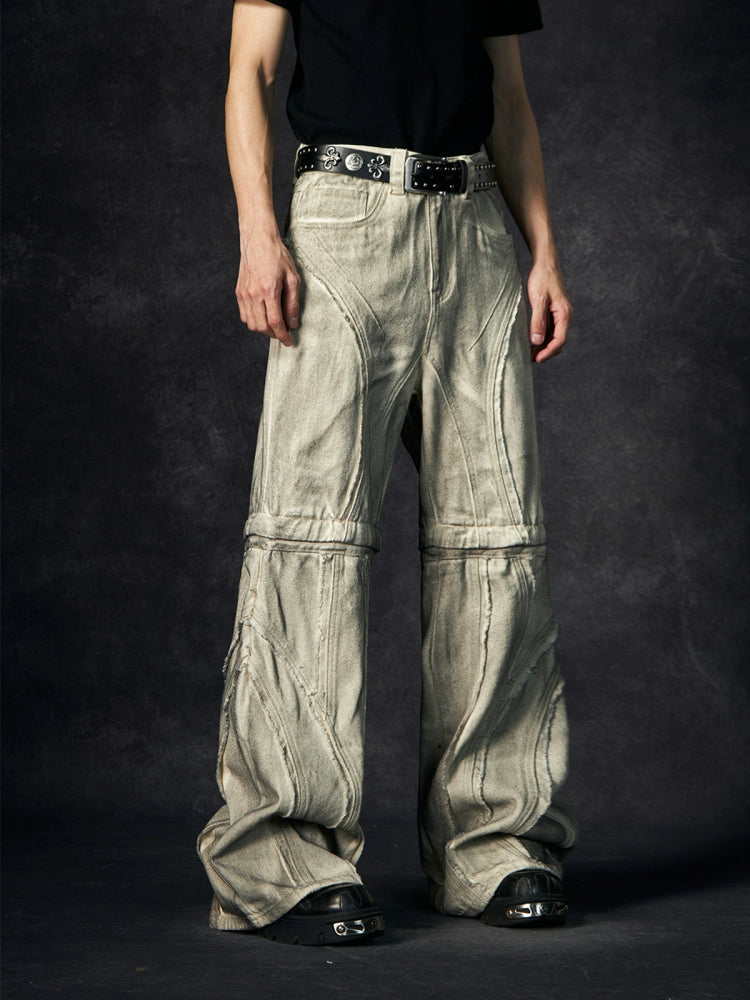 Dyed Raw Hem Detachable Wide Leg Straight Denim Jeans WN18468