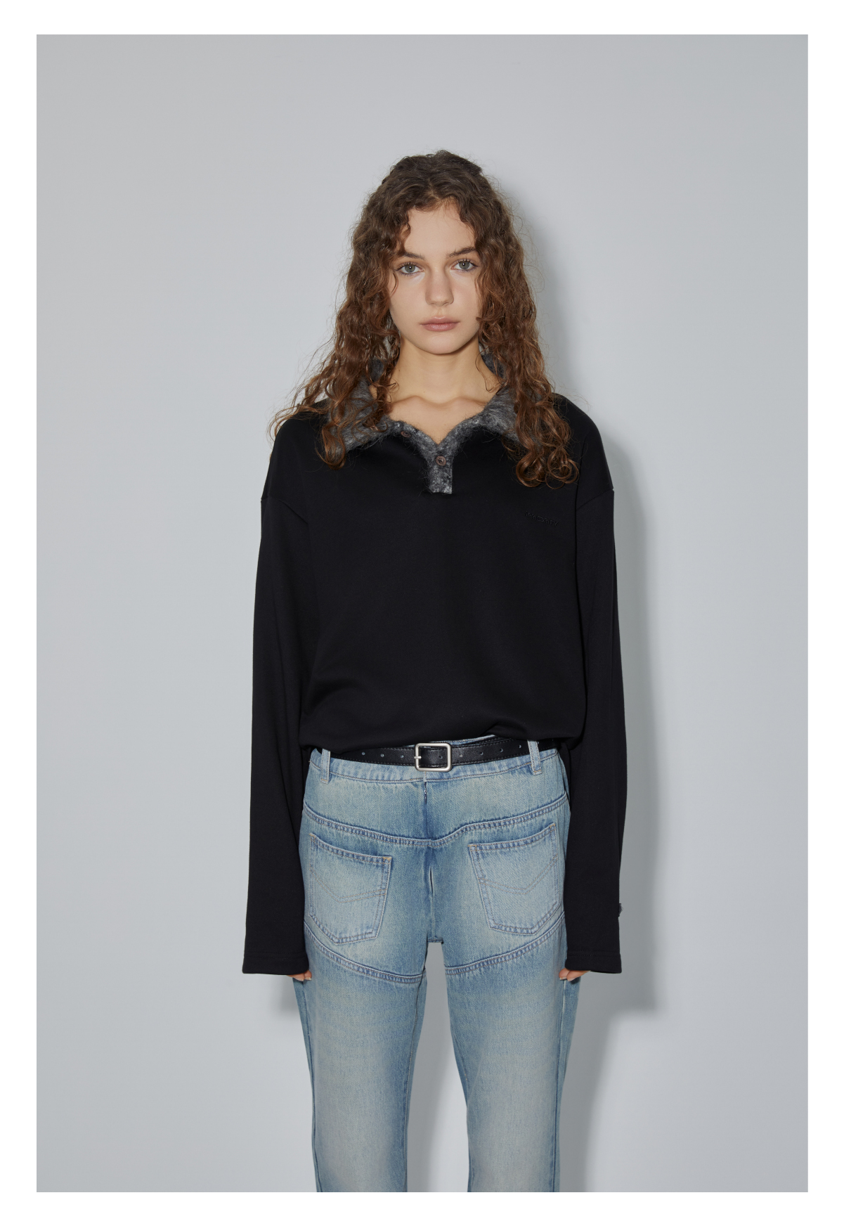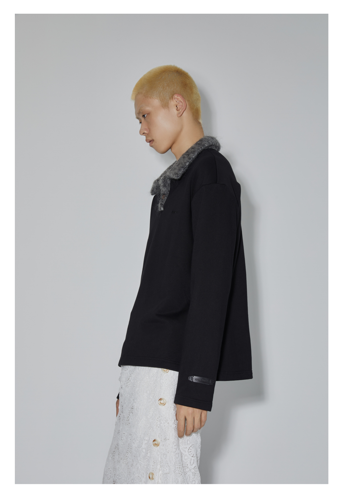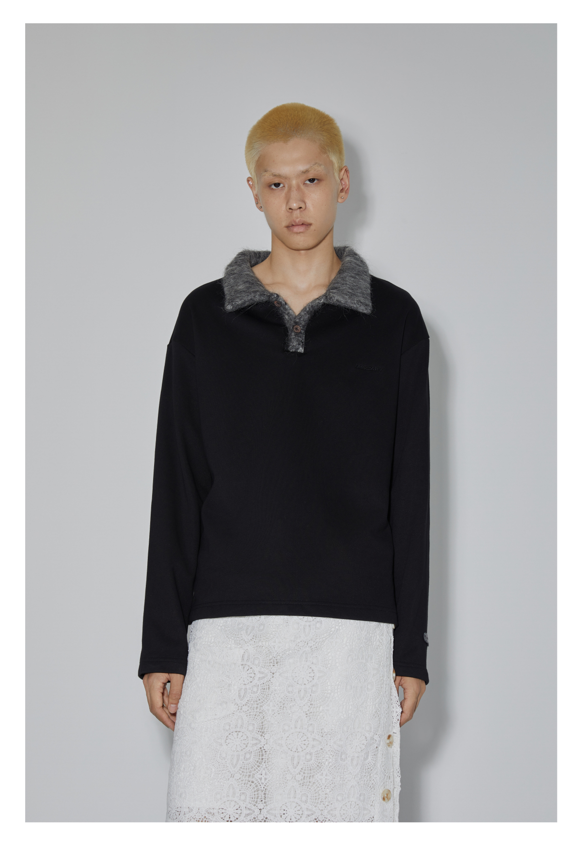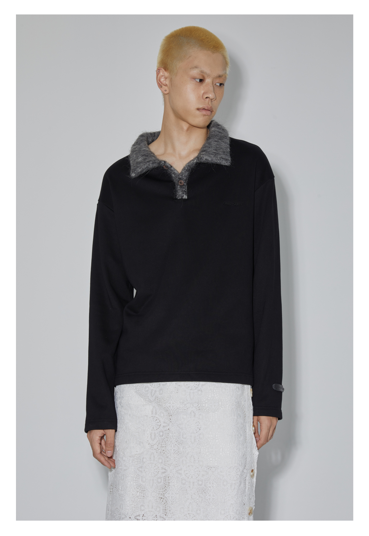 Wool-Effect Collar Polo Design Long Sleeve T-Shirt WN18907