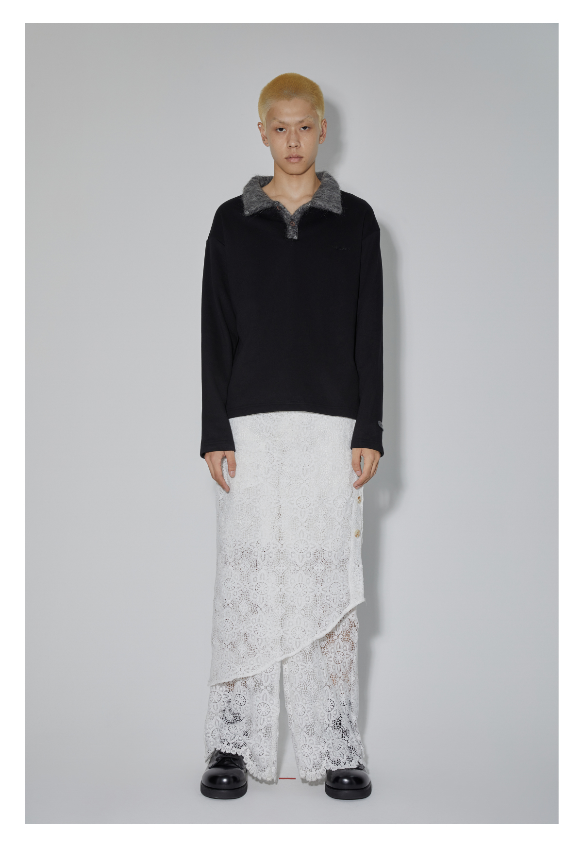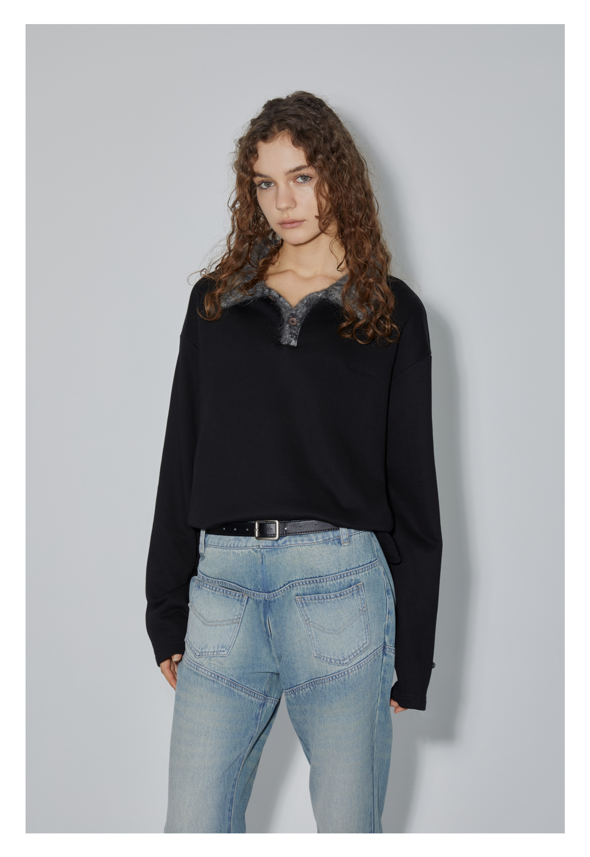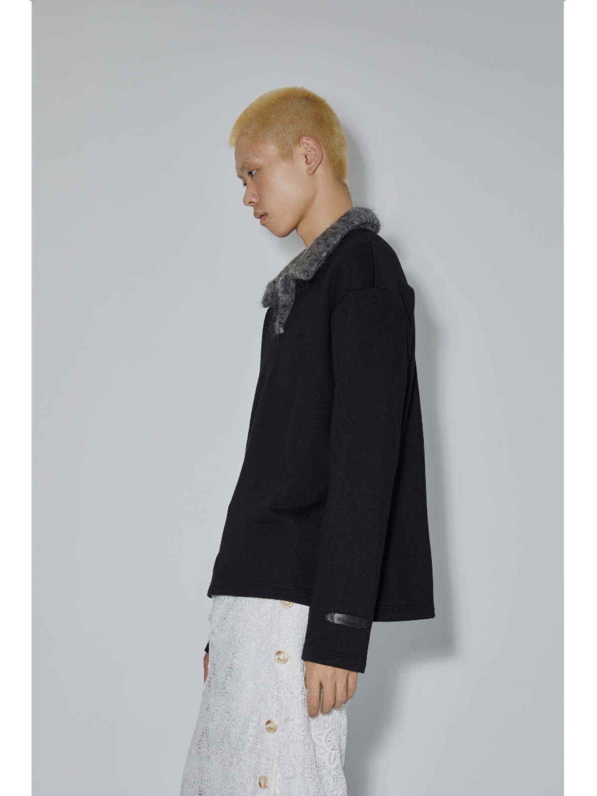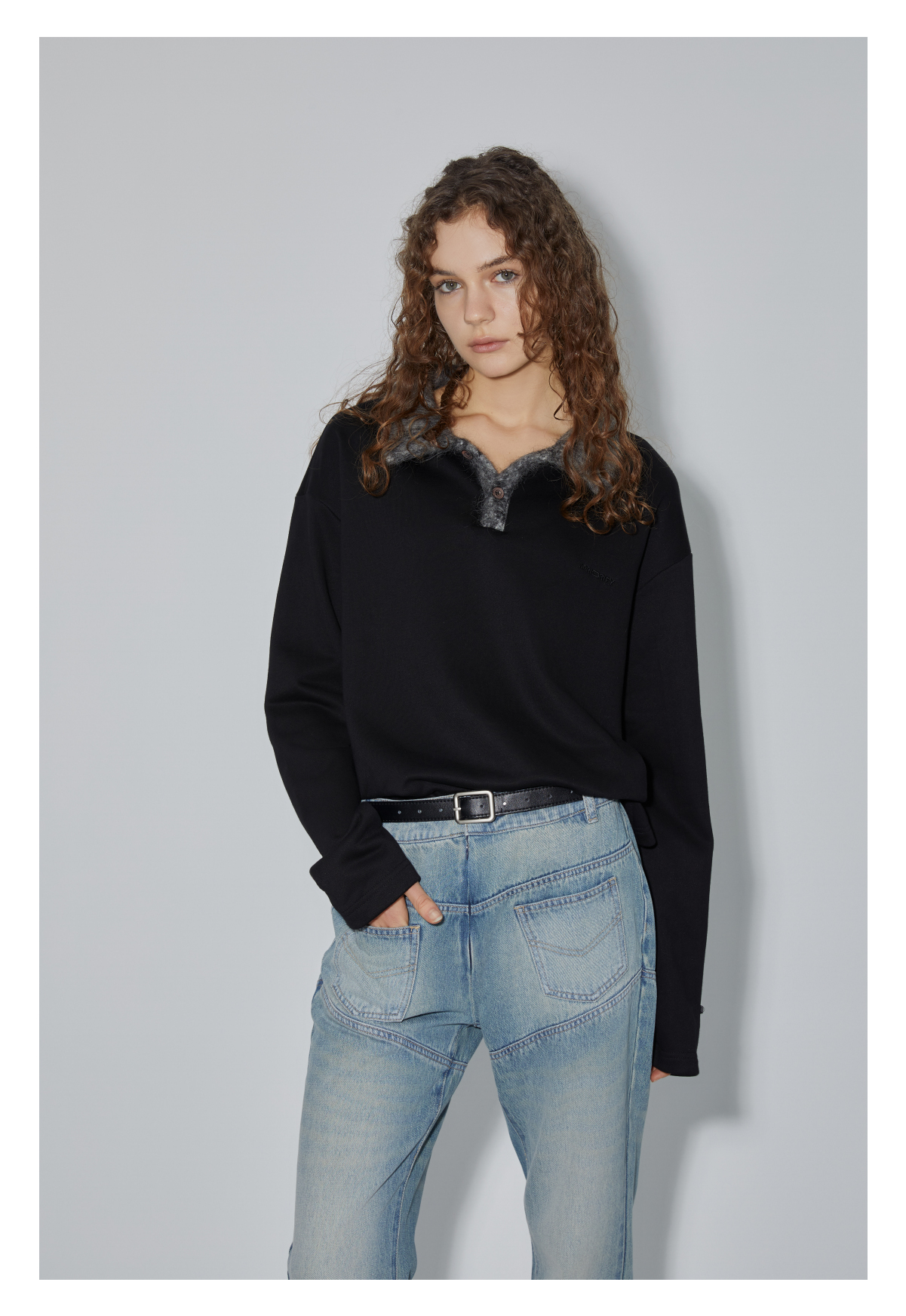 Wool-Effect Collar Polo Design Long Sleeve T-Shirt WN18907