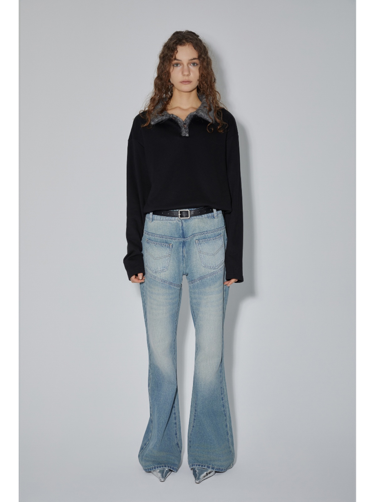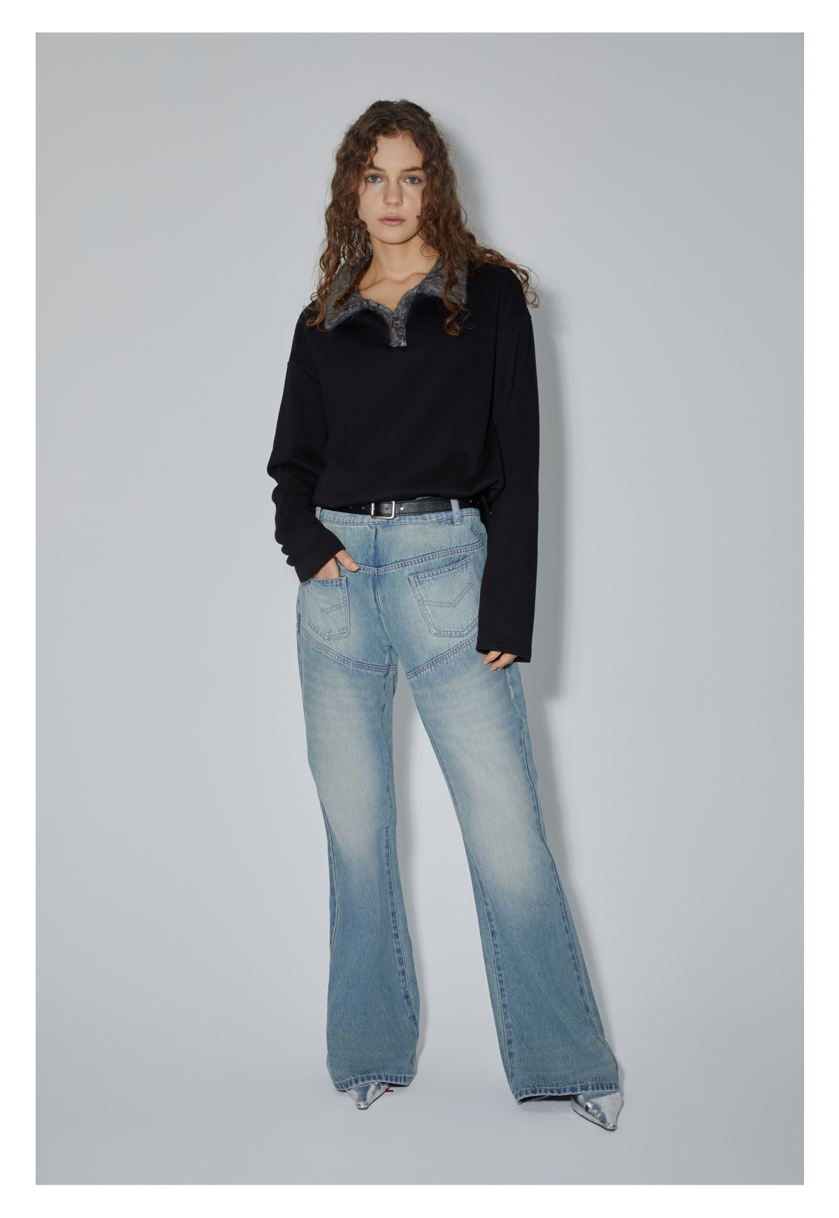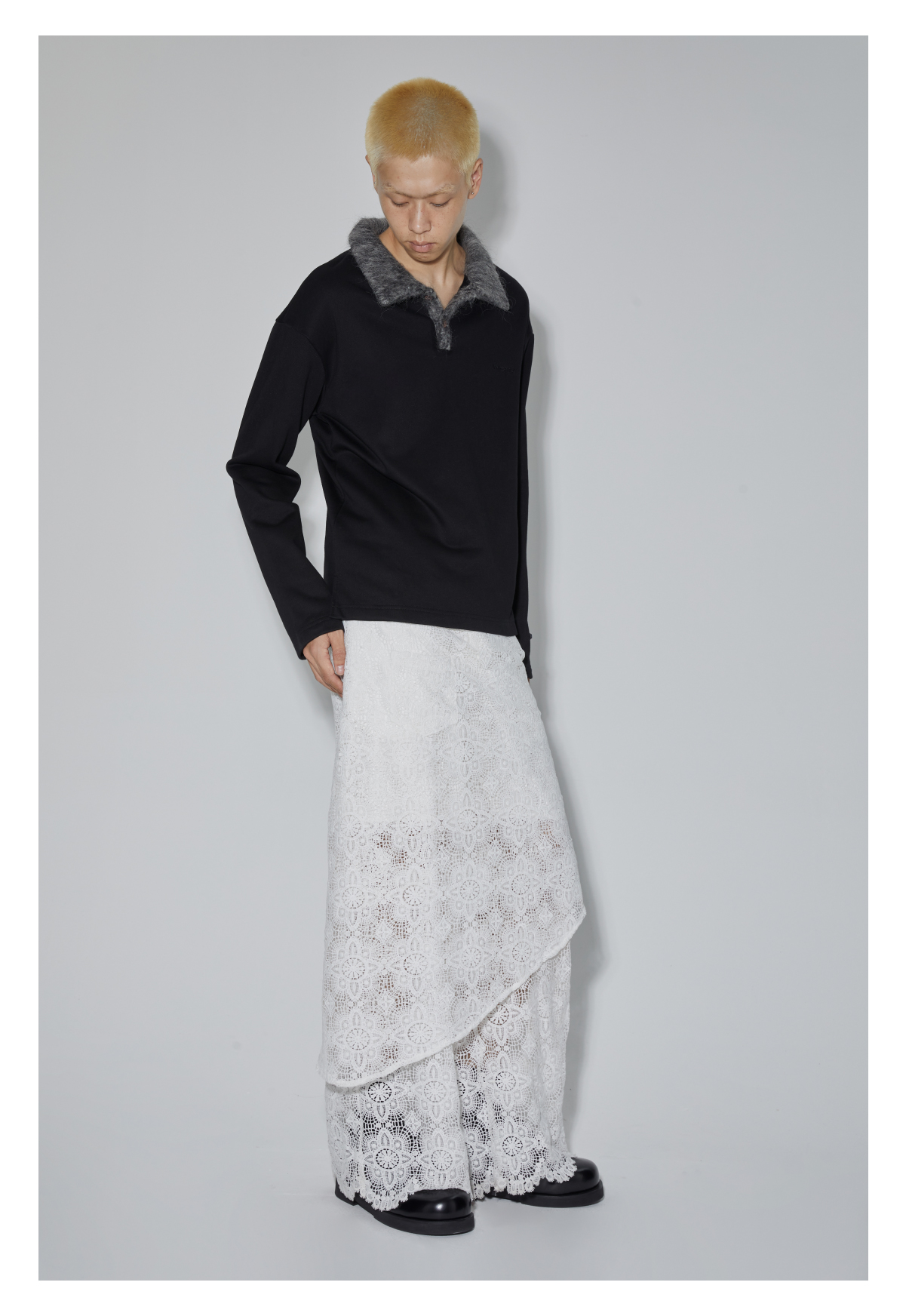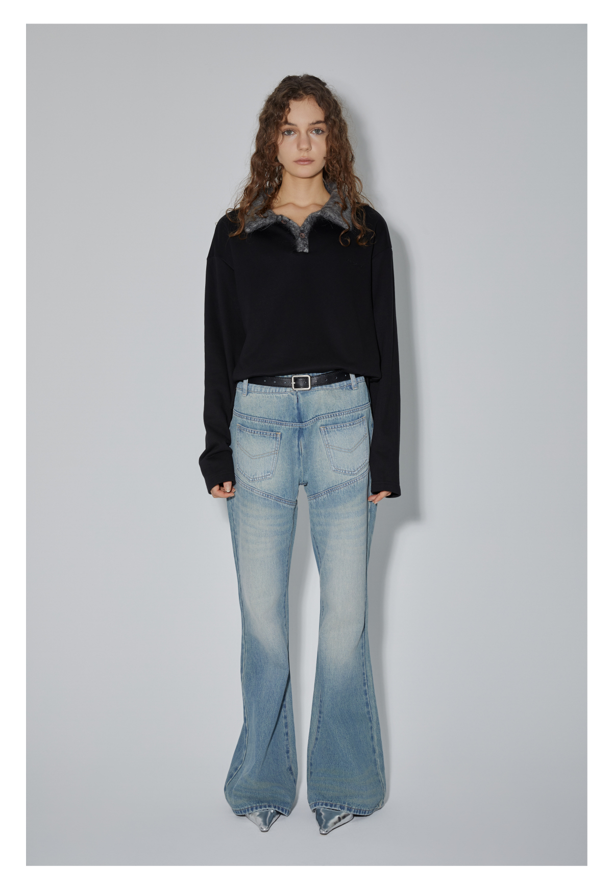 Wool-Effect Collar Polo Design Long Sleeve T-Shirt WN18907