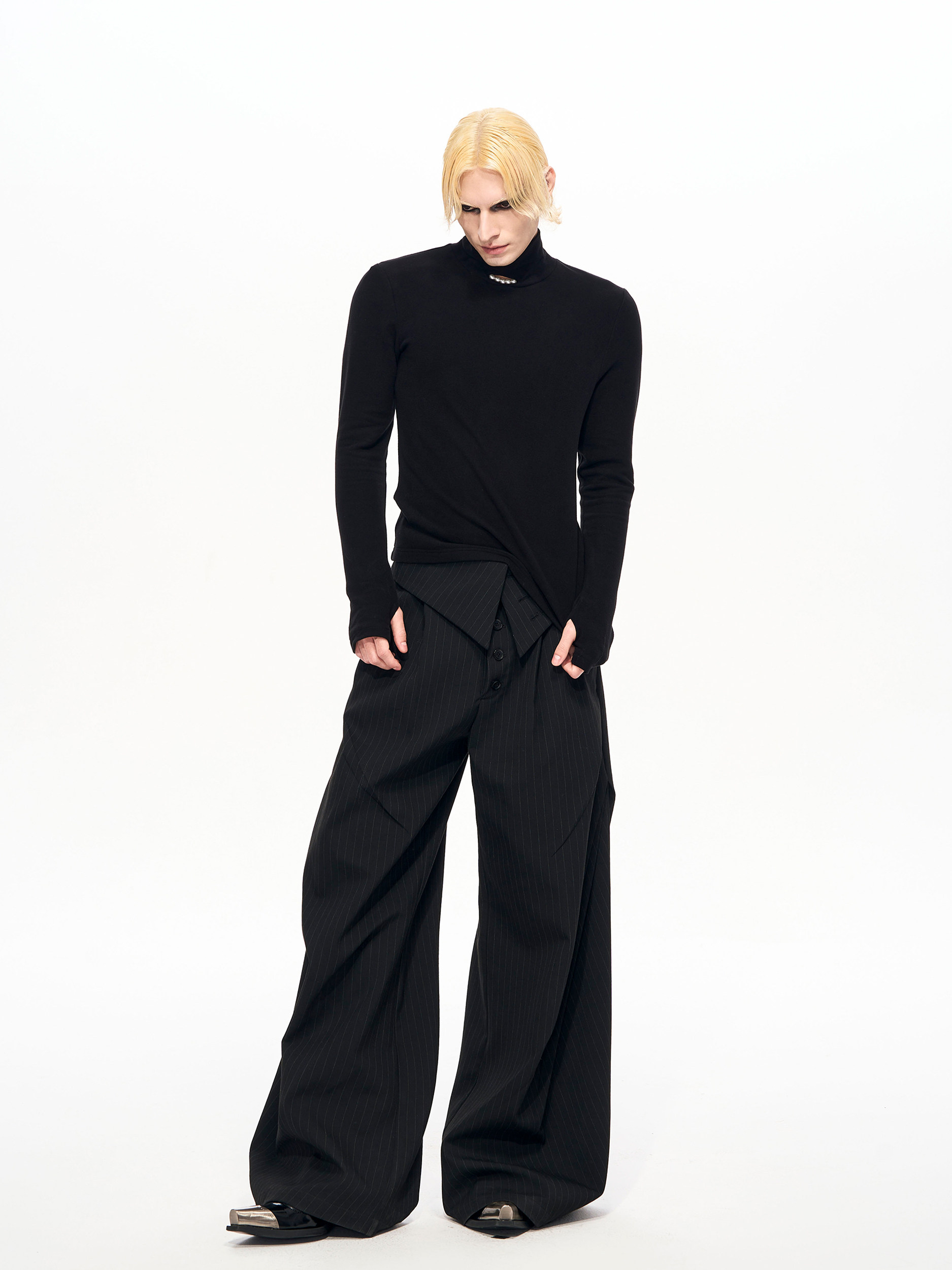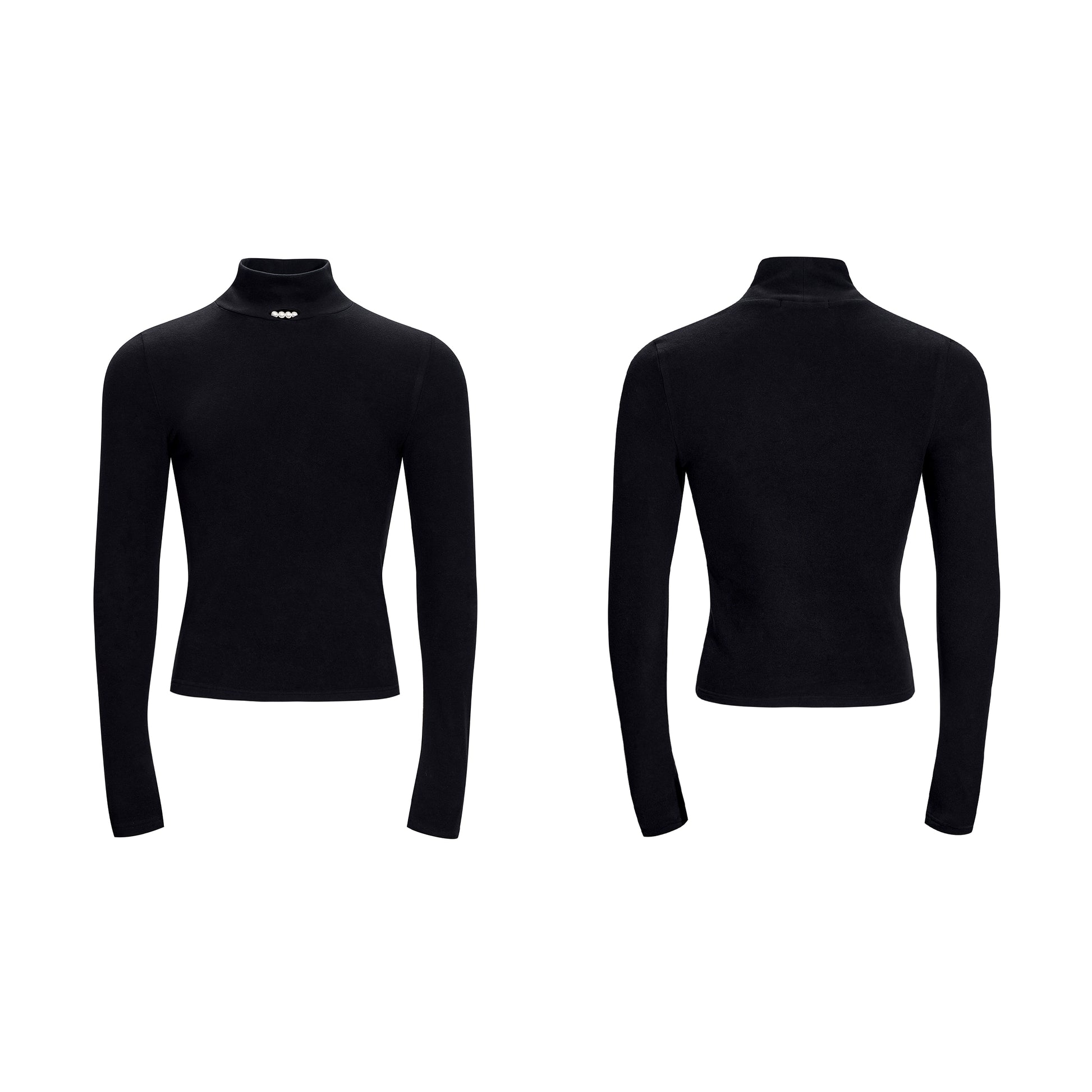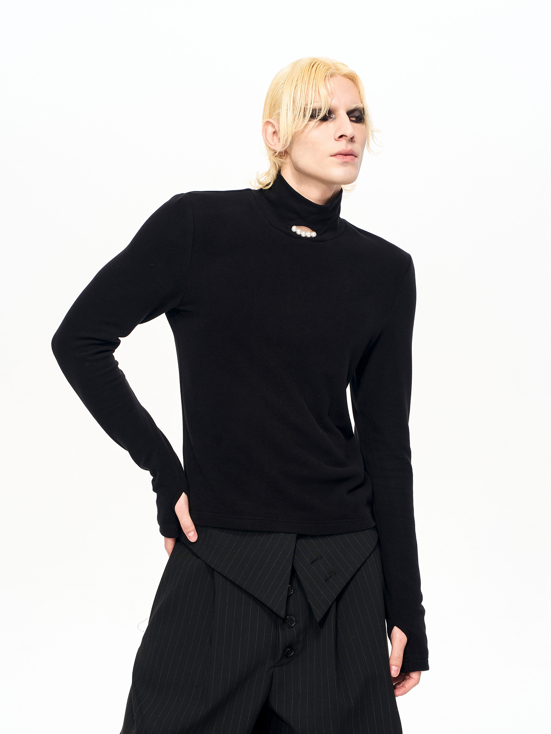 High-Neck Pearl Detail Long Sleeve T-Shirt WN22122