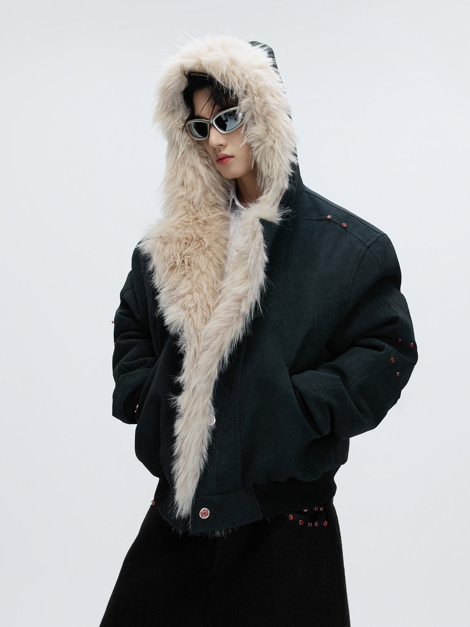 Reversible Hooded Fake Fur Collar Heavyweight Puffer Jacket WN22621