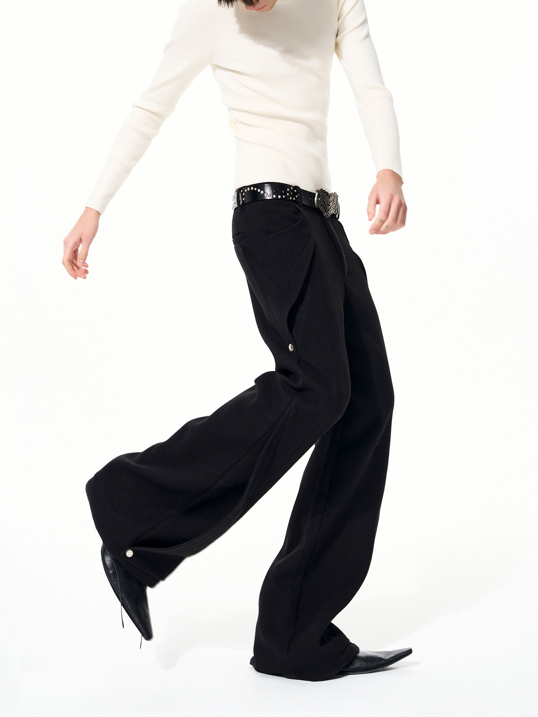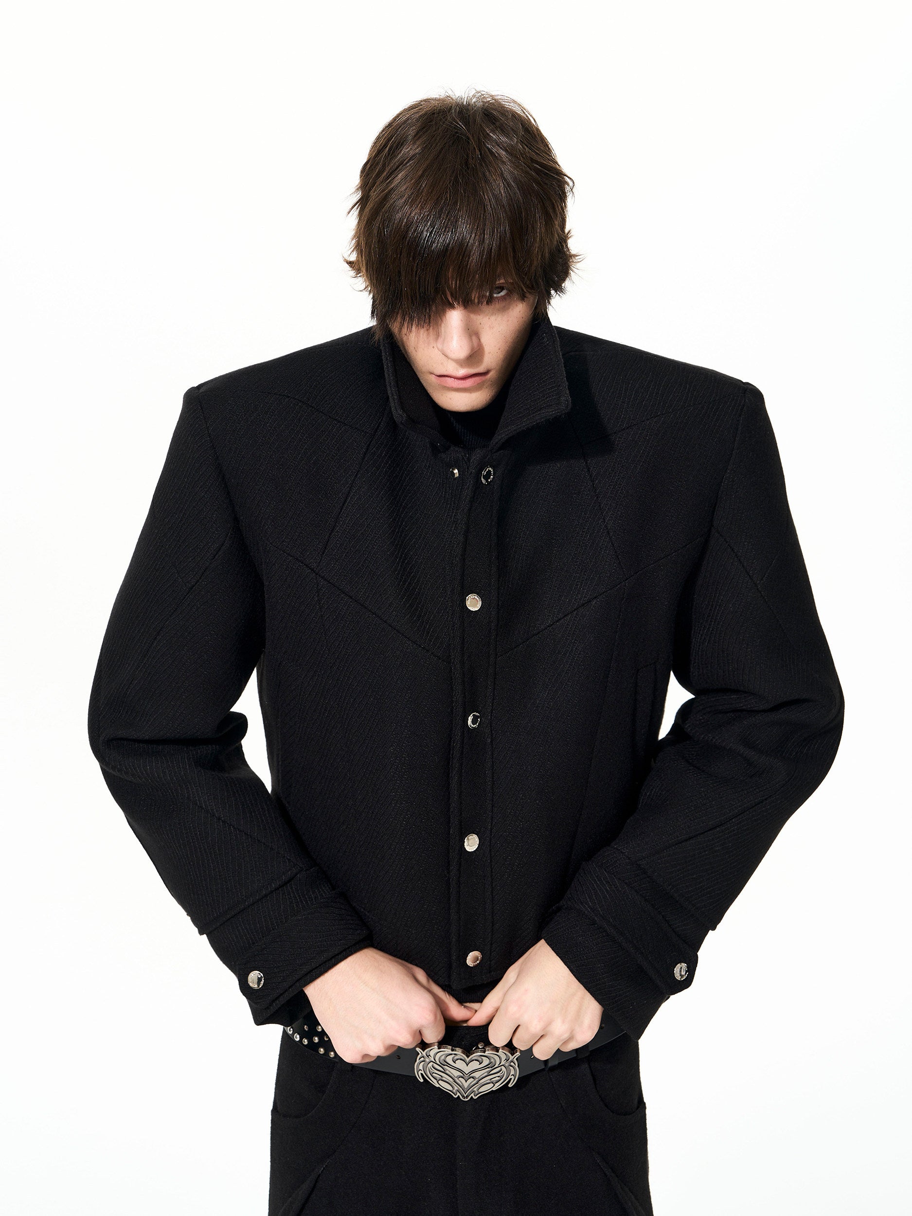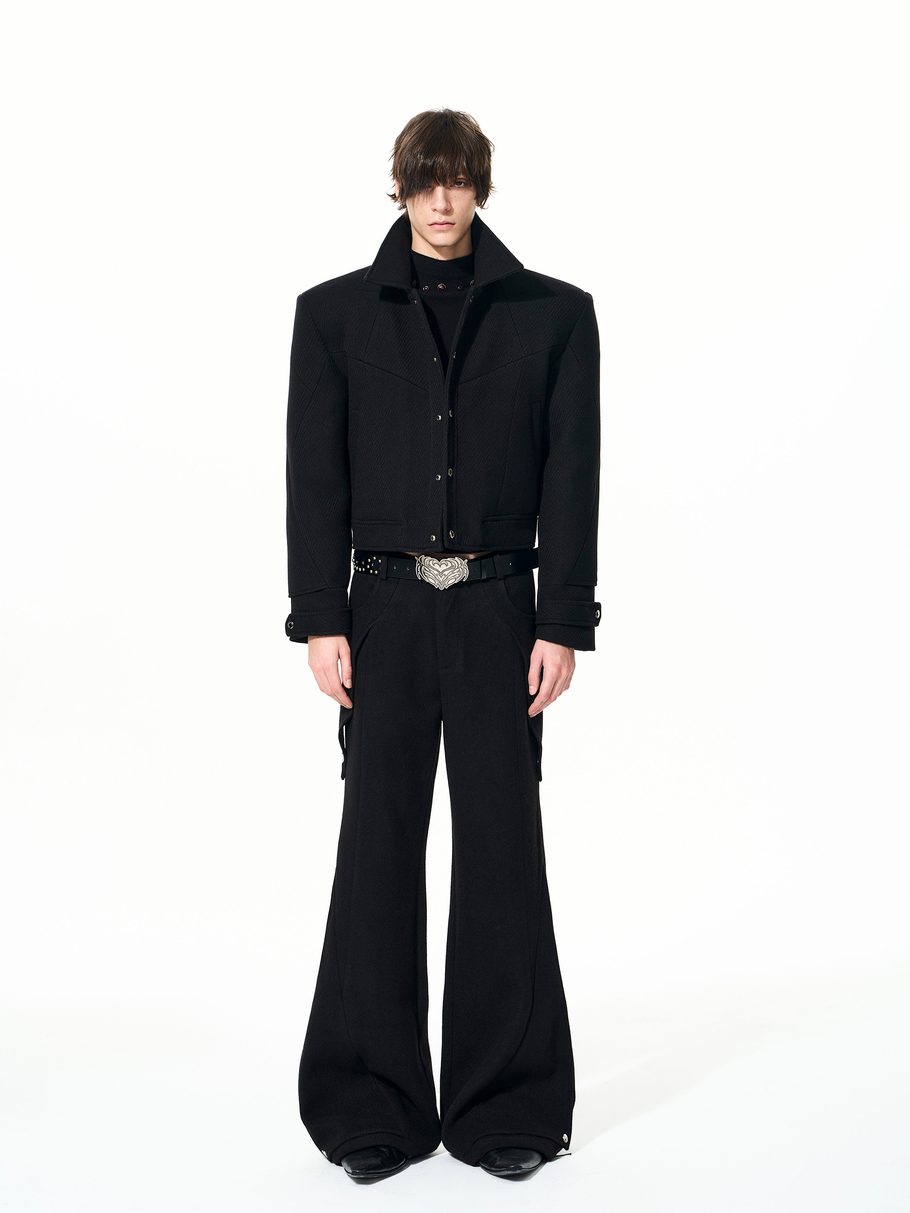 Deconstruct Lapel Tweed Short Jacket & Tweed Flare Trousers Setup WN22684